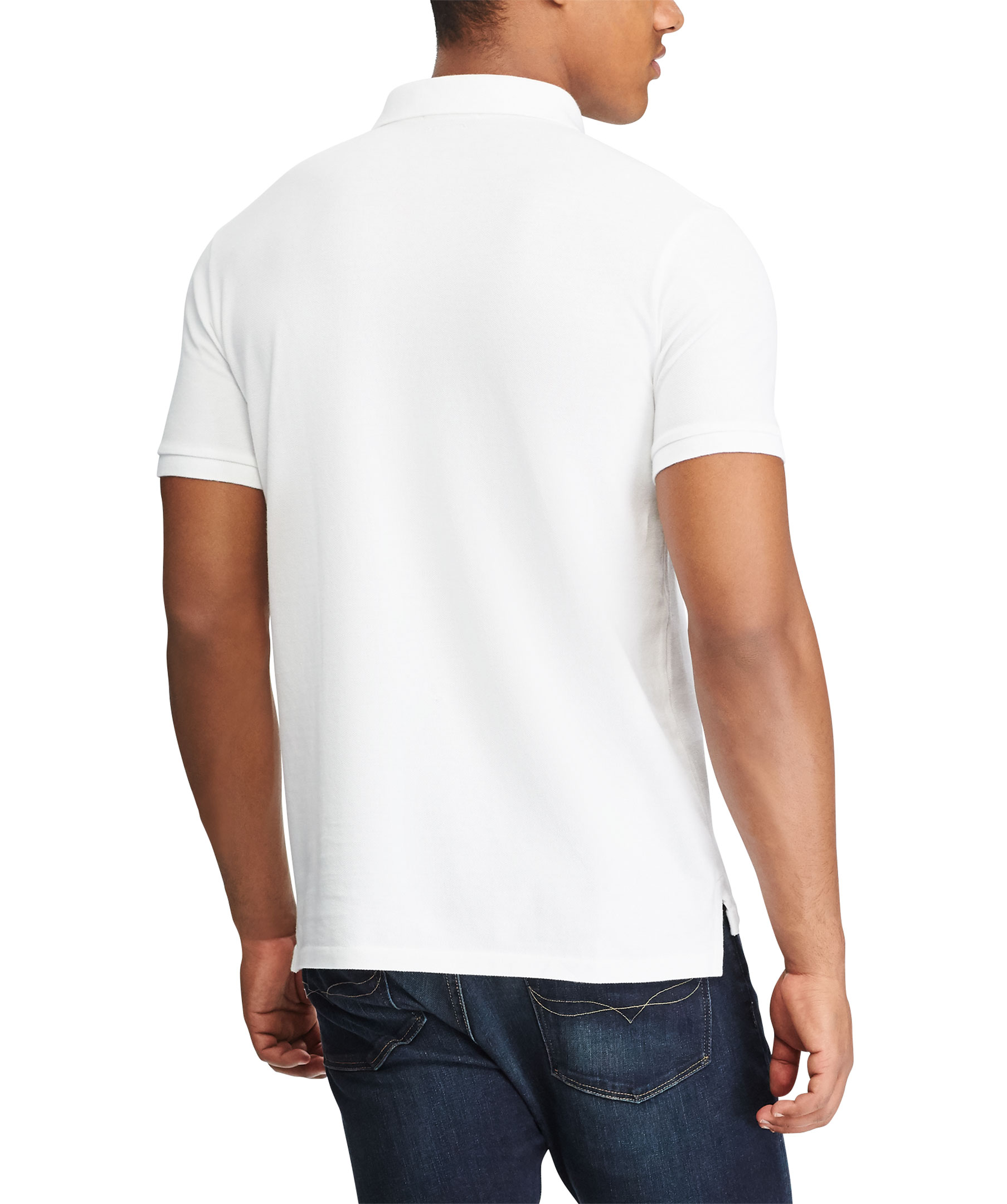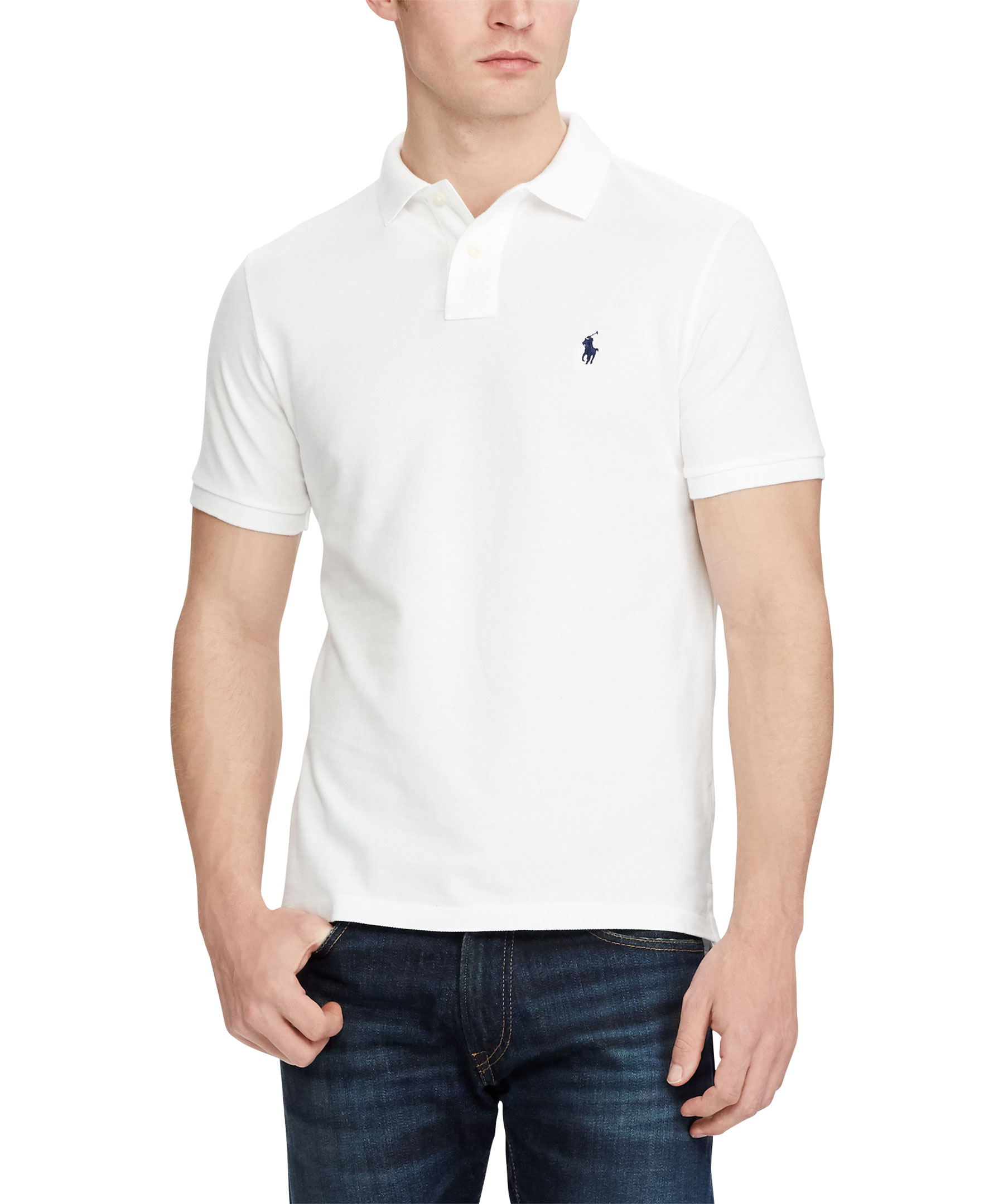 Vit pikétröja från Polo Ralph Lauren. Mörkblå, broderad logotyp på bröstet. Klassisk krage och knappslå med två ljusa knappar. Custom slim fit modell. Gjord i 100% bomull.