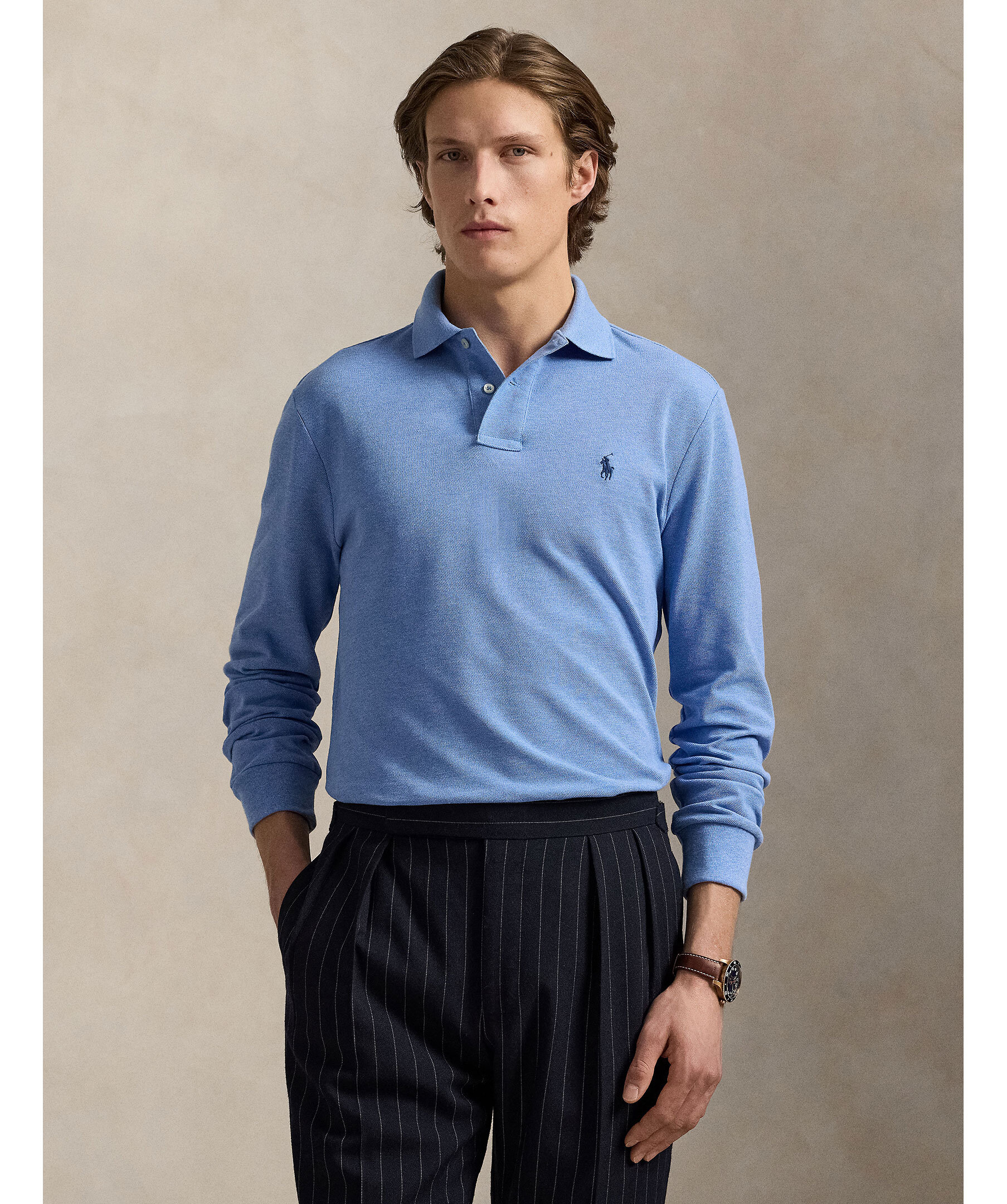 Långärmad pikétröja i klassisk design från Polo Ralph Lauren. Tillverkad i mjuk och ventilerande bomullsmesh. Modellen har en anpassad slim fit-passform som är smalare vid bröst och midja jämfört med klassiska modeller. Utrustad med polokrage, tvåknappsslå, korta ärmar och ribbade ärmslut. Tröjan har en något längre baksida med sidslitsar för bättre rörlighet. Broderad signatur-Pony på vänster bröst.