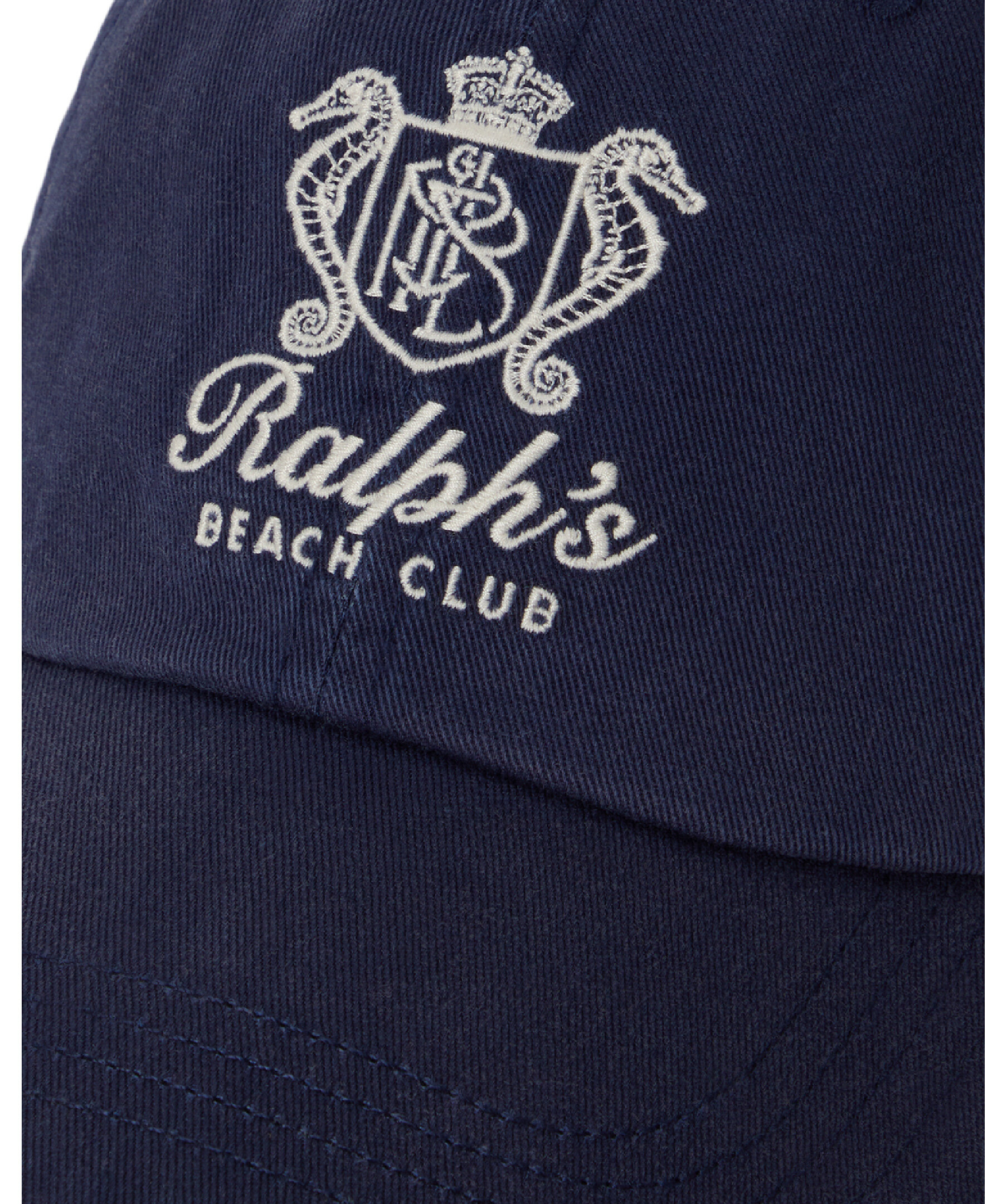 Denna twillkeps är en del av säsongens kollektion inspirerad av det kristallklara vattnet och de livfulla solnedgångarna i Karibien. Kepsen är broderad med ett "Ralph's Beach Club"-emblem med sjöhästar. Den är specialtvättad för ett solblekt utseende.