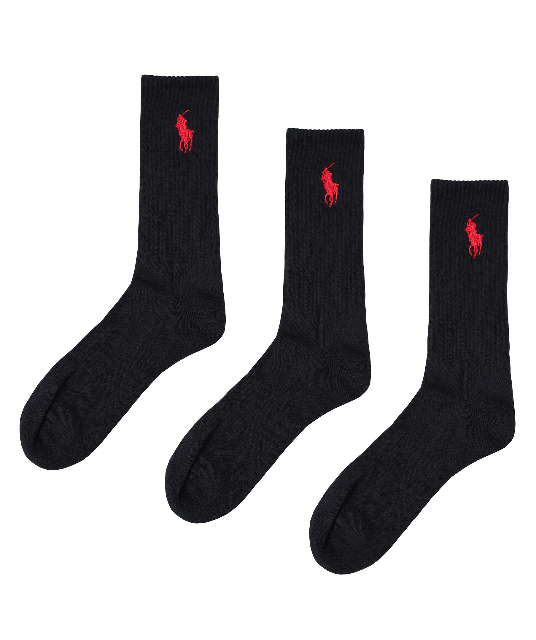 Svarta ribbstickad 3-pack strumpor från Polo Ralph Lauren. Broderad logotyp i rött.