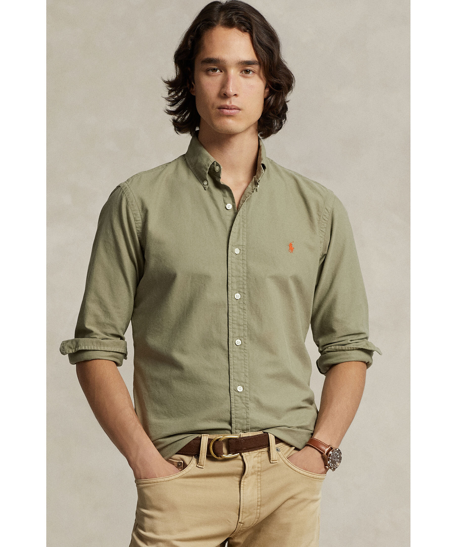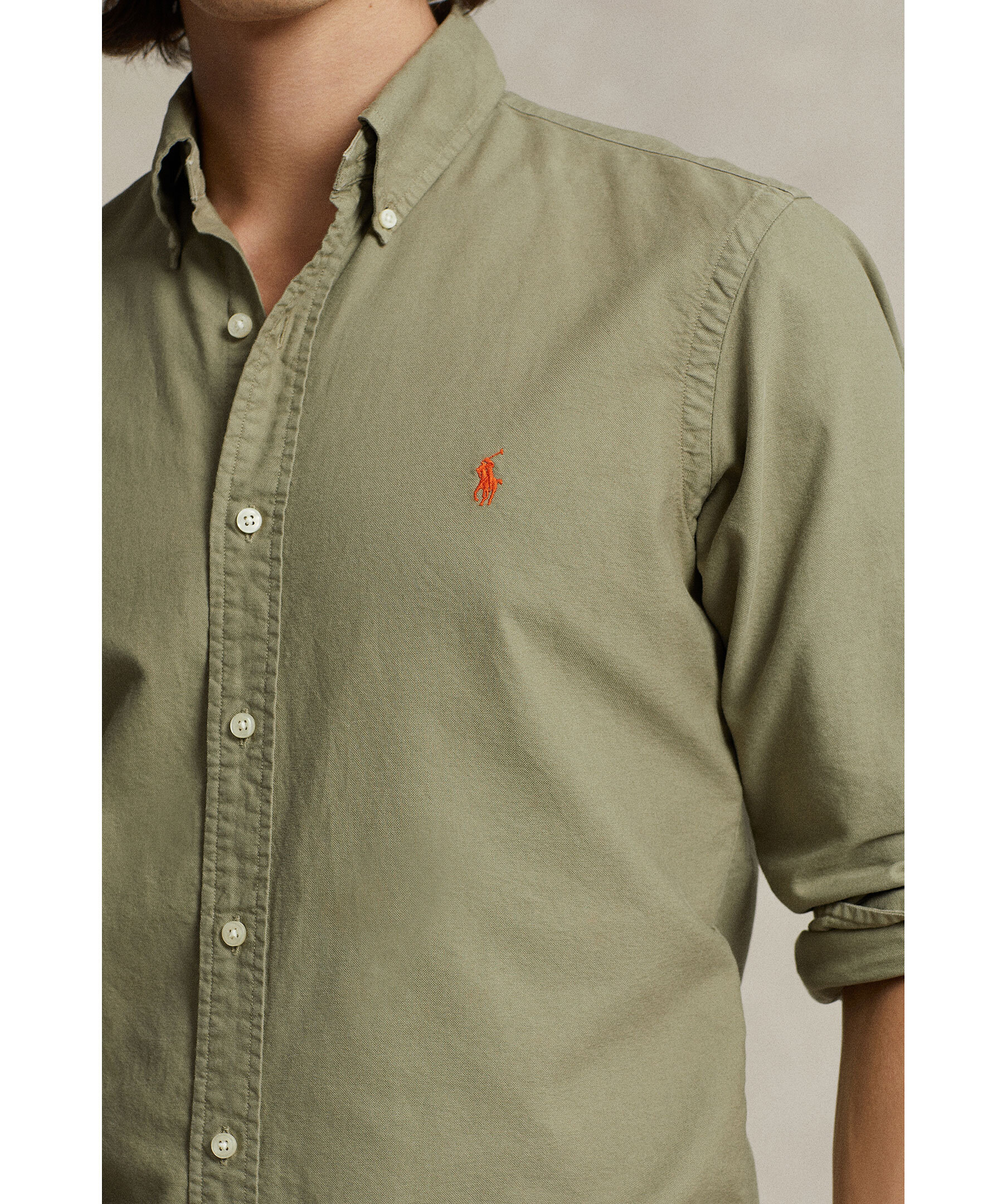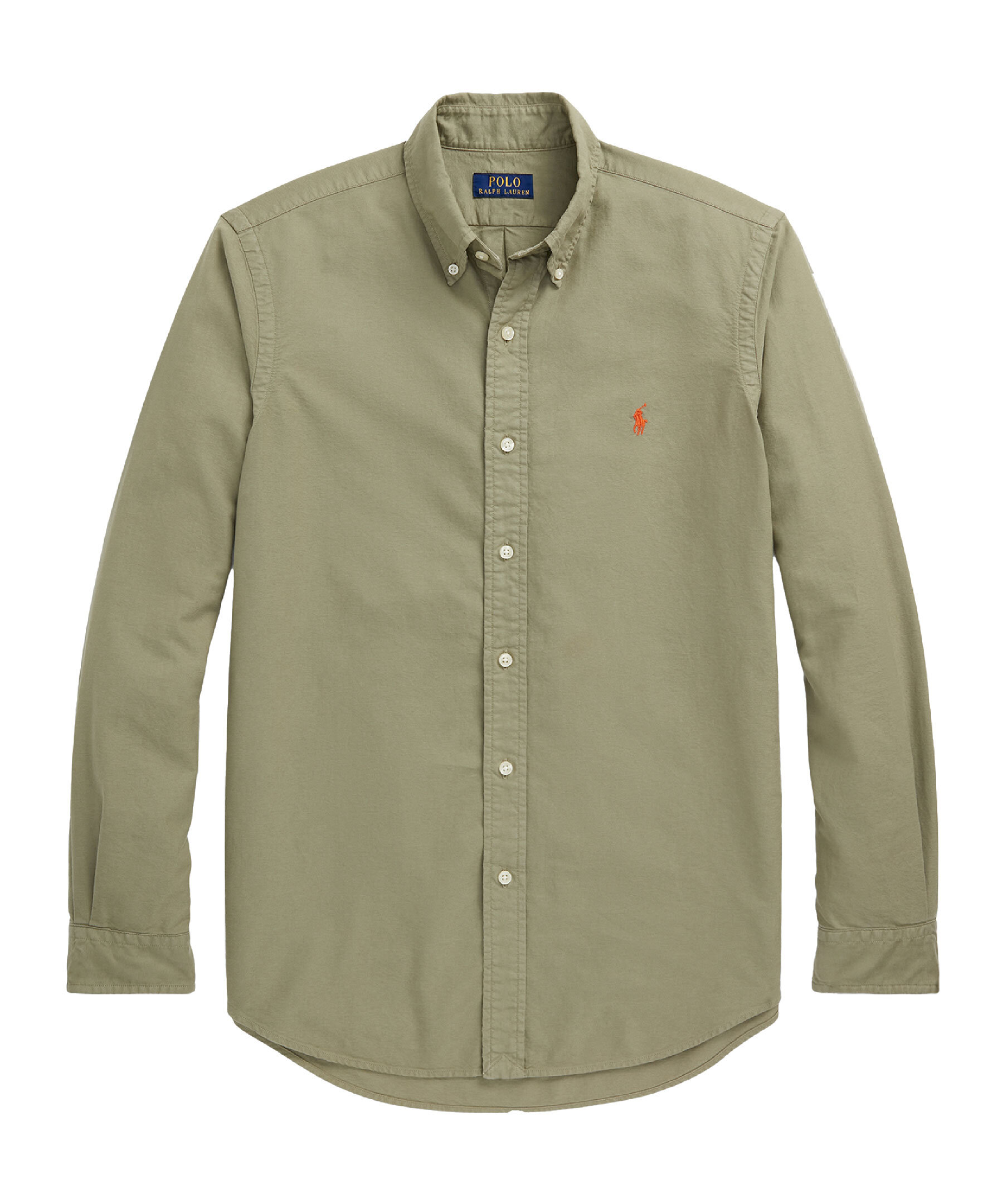 Olivgrön skjorta från Polo Ralph Lauren. Skjortan har broderad logga på bröstet och button down krage med vita knappar. Tillverkad i 100% bomull.