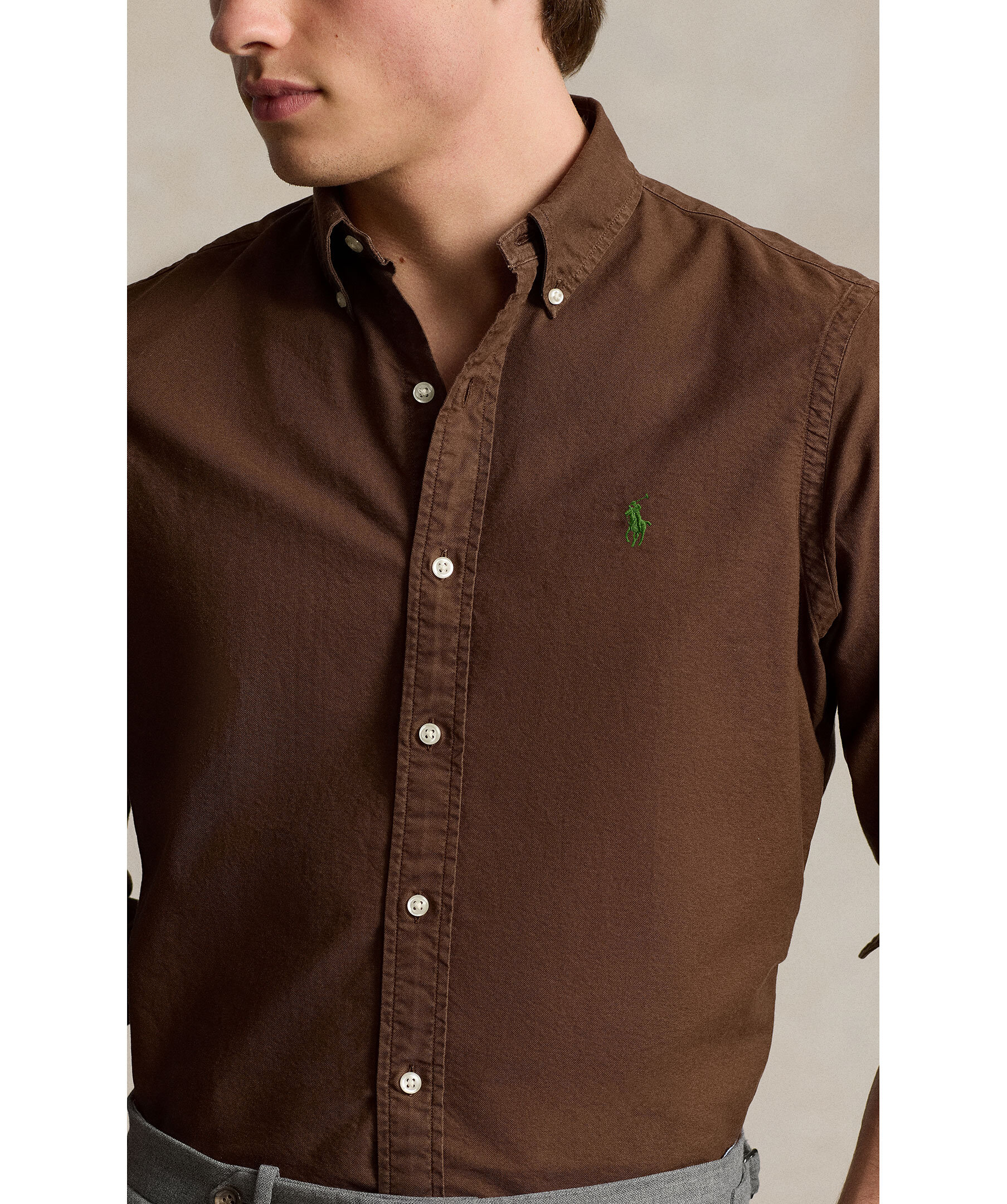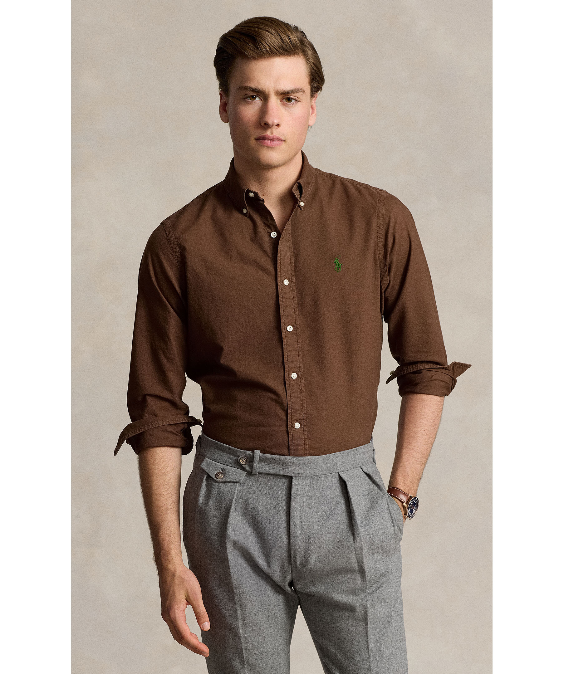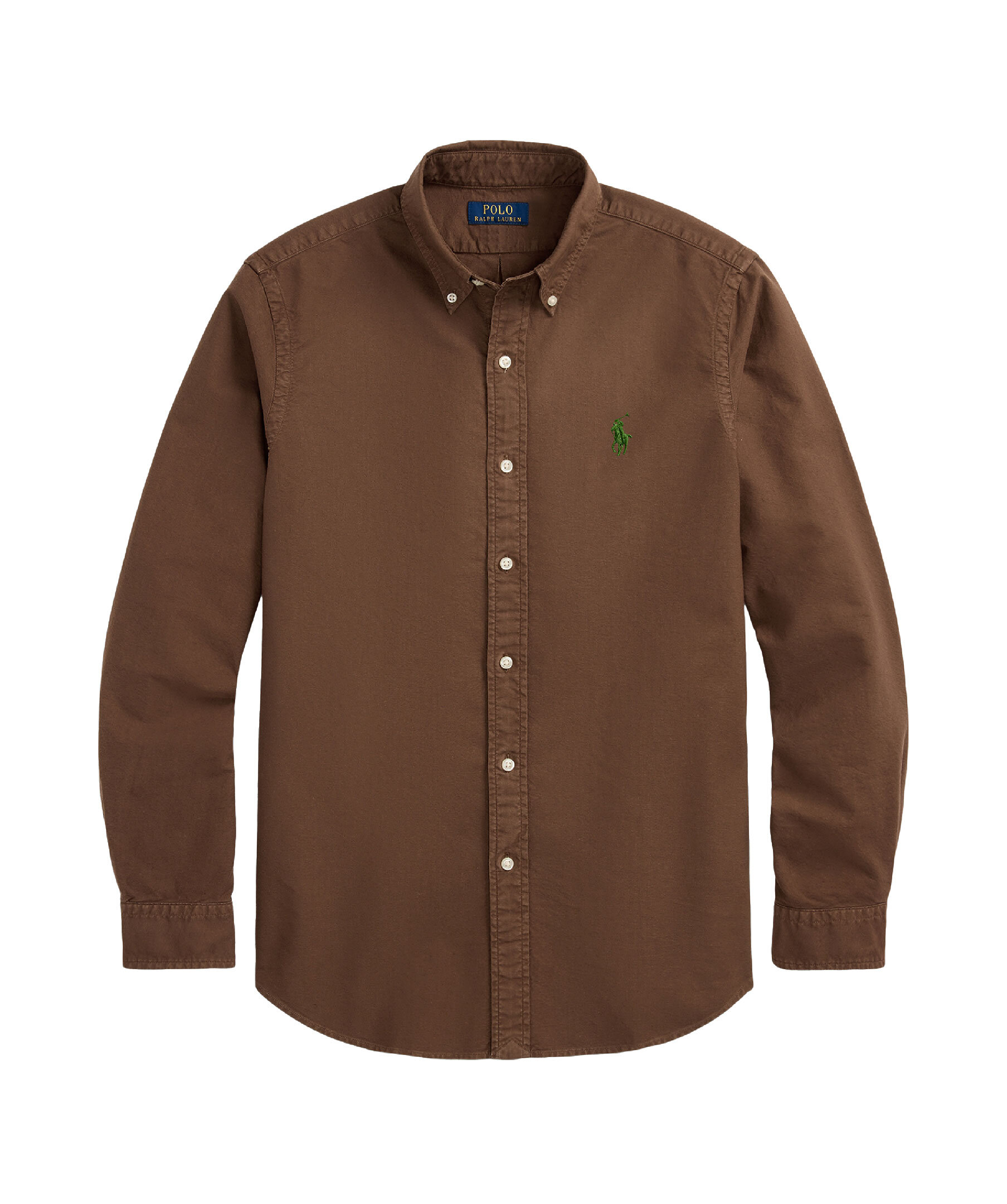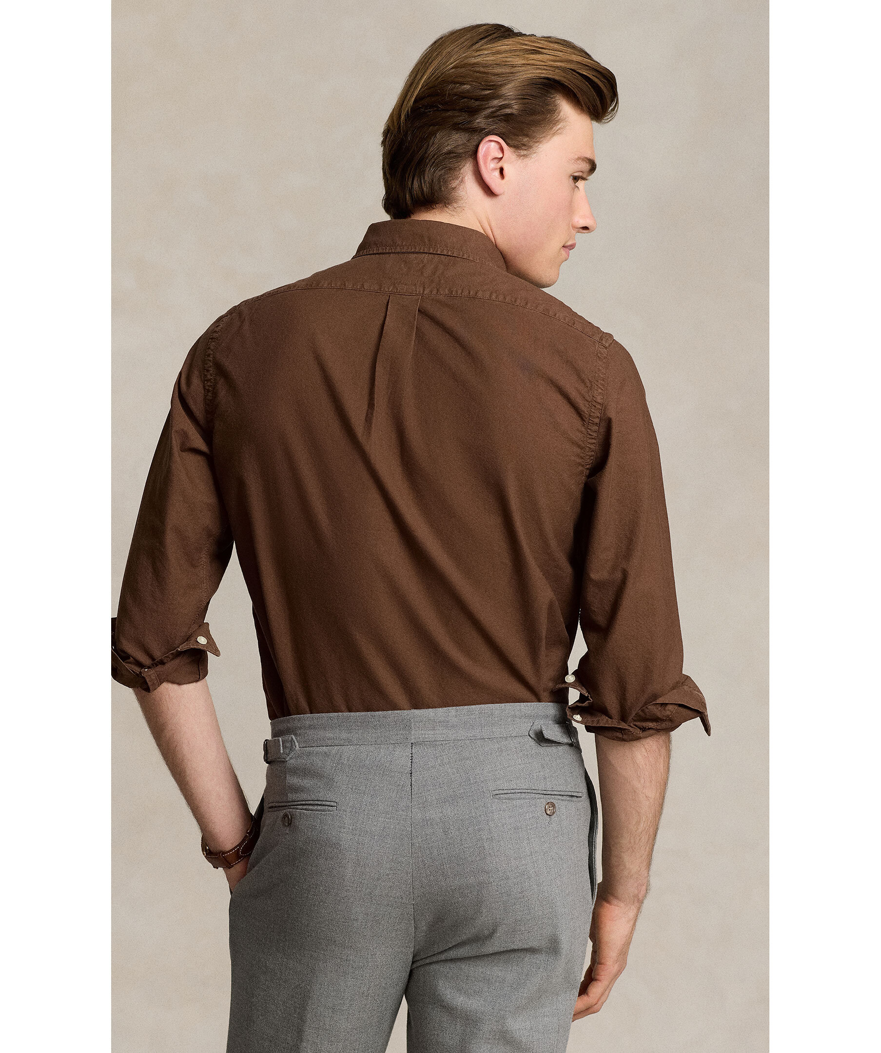 Brun skjorta från Polo Ralph Lauren. Denna skjorta är en slim fit-version av Polo's ikoniska oxfordskjorta. Färgad och tvättad för en avslappnad och använd look. Modellen är 185 cm och har på sig strl M.
