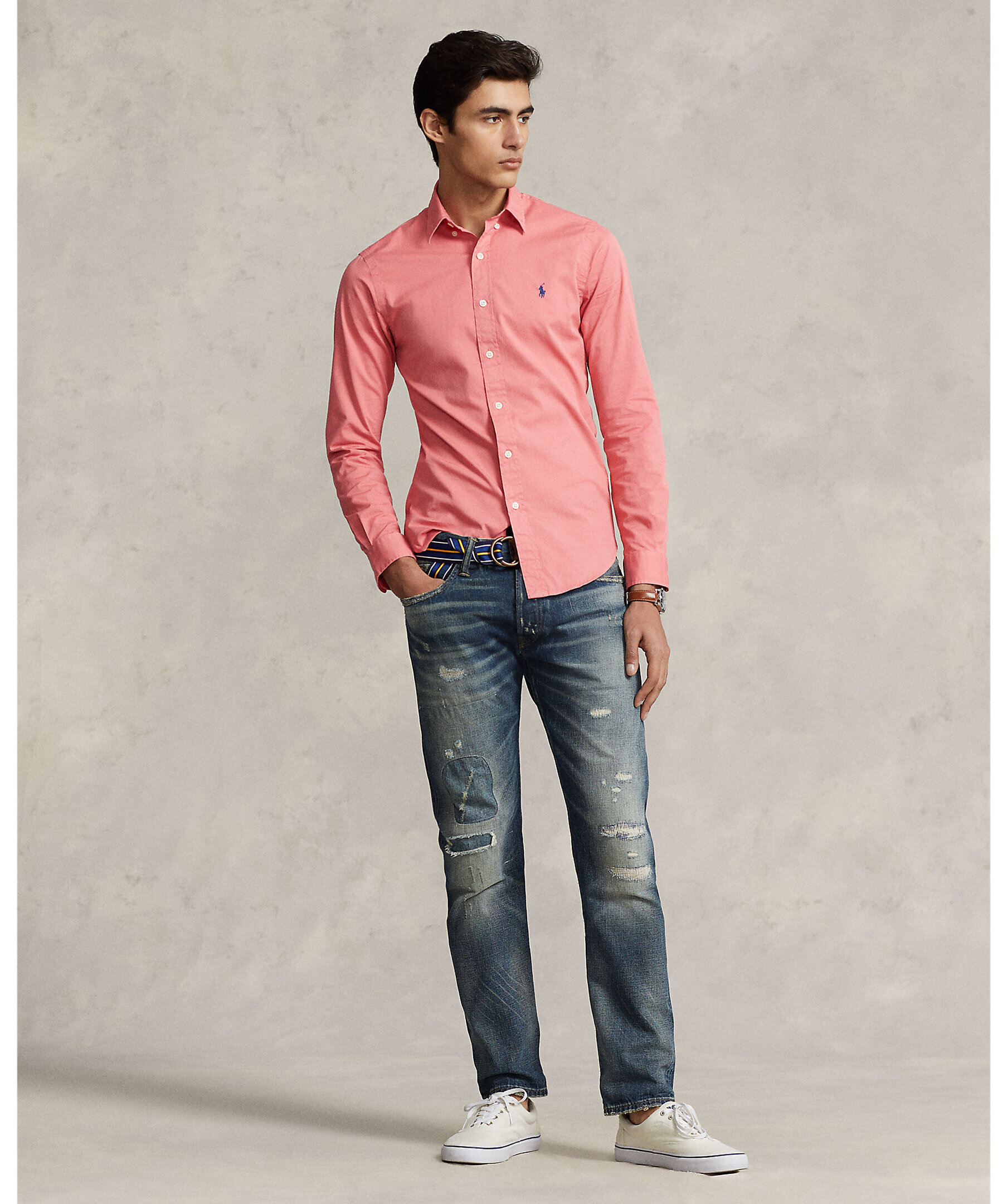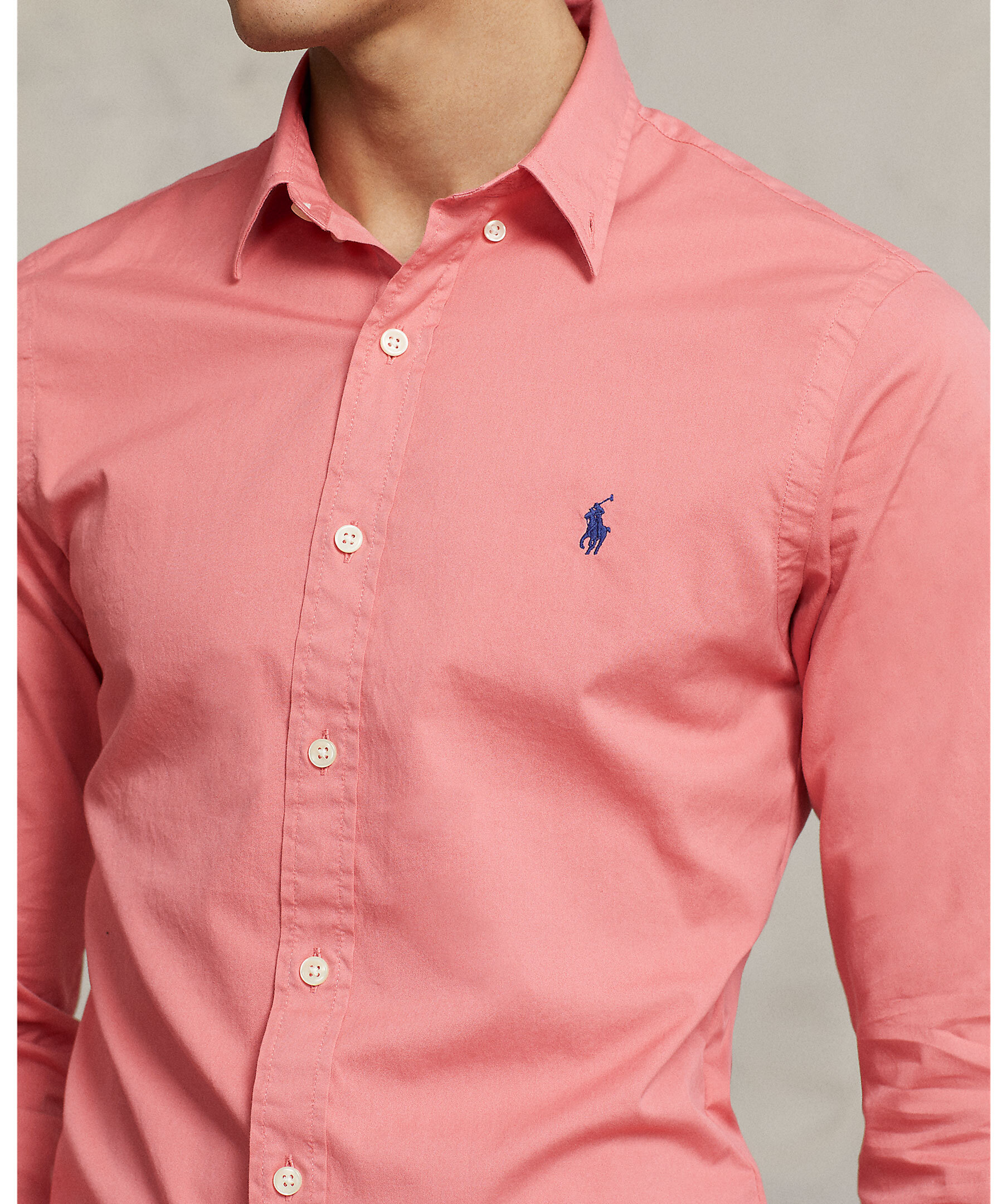 Flamingofärgad, klassisk skjorta i slim fit modell från Polo Ralph Lauren. Tillverkad i 100% bomull. Button-down krage, liten broderad logotyp på vänster sida av bröstet.