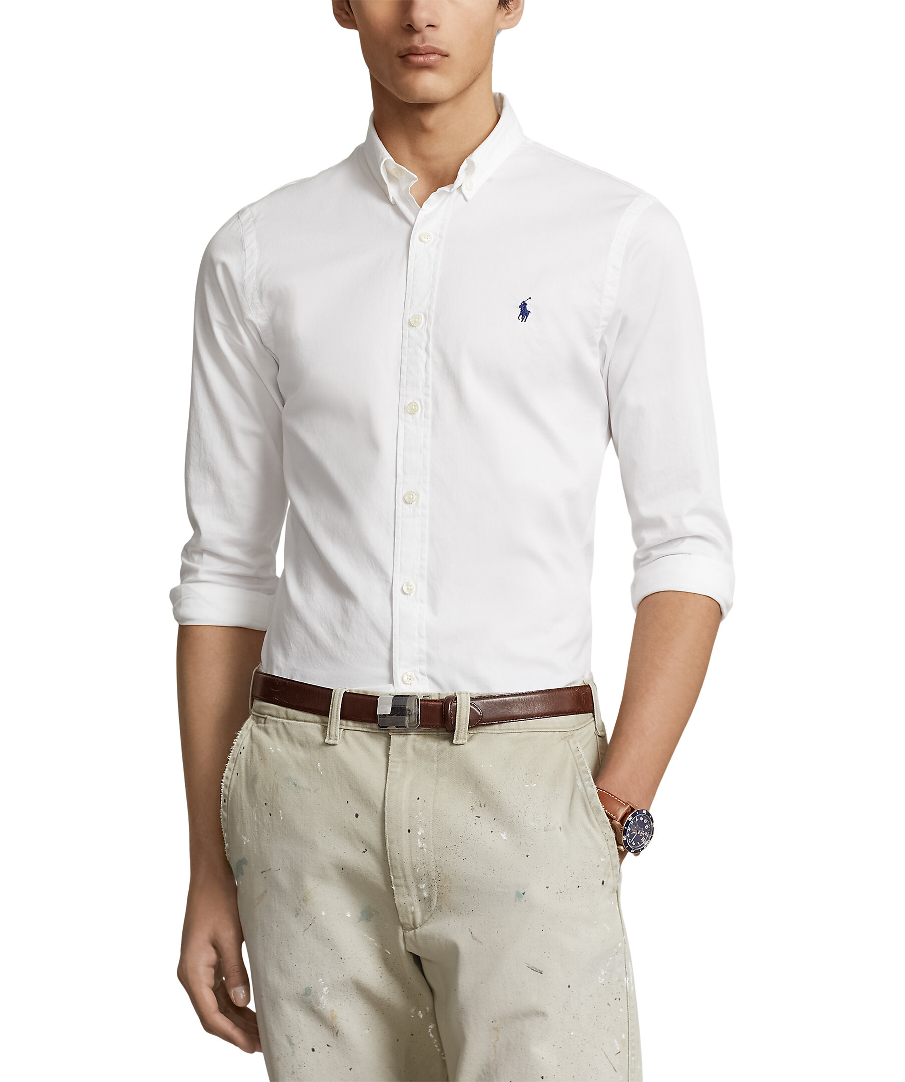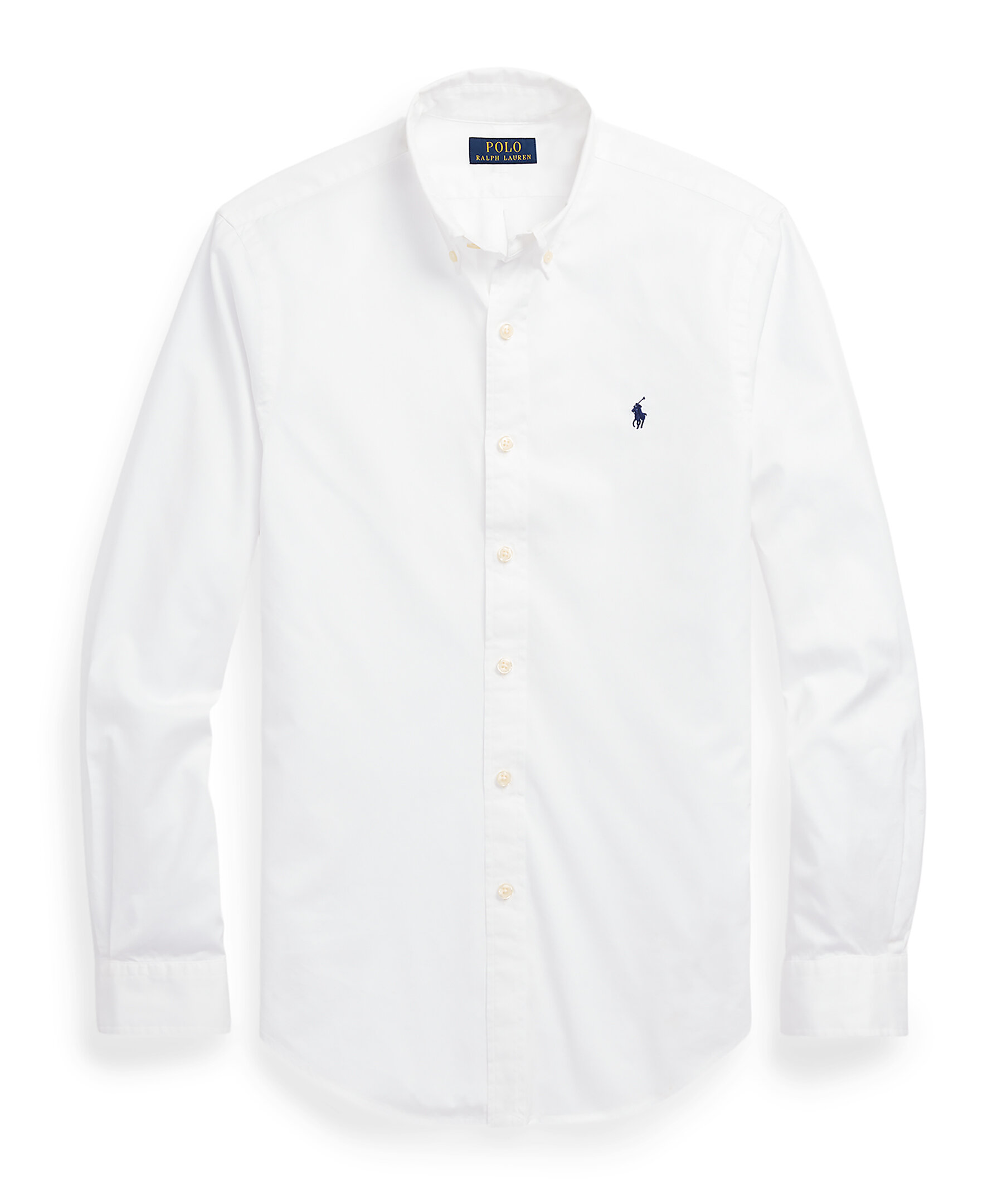 Vit, klassisk skjorta i slim fit modell från Polo Ralph Lauren. Tillverkad i 100% bomull. Button-down krage, liten broderad logotyp på vänster sida av bröstet.