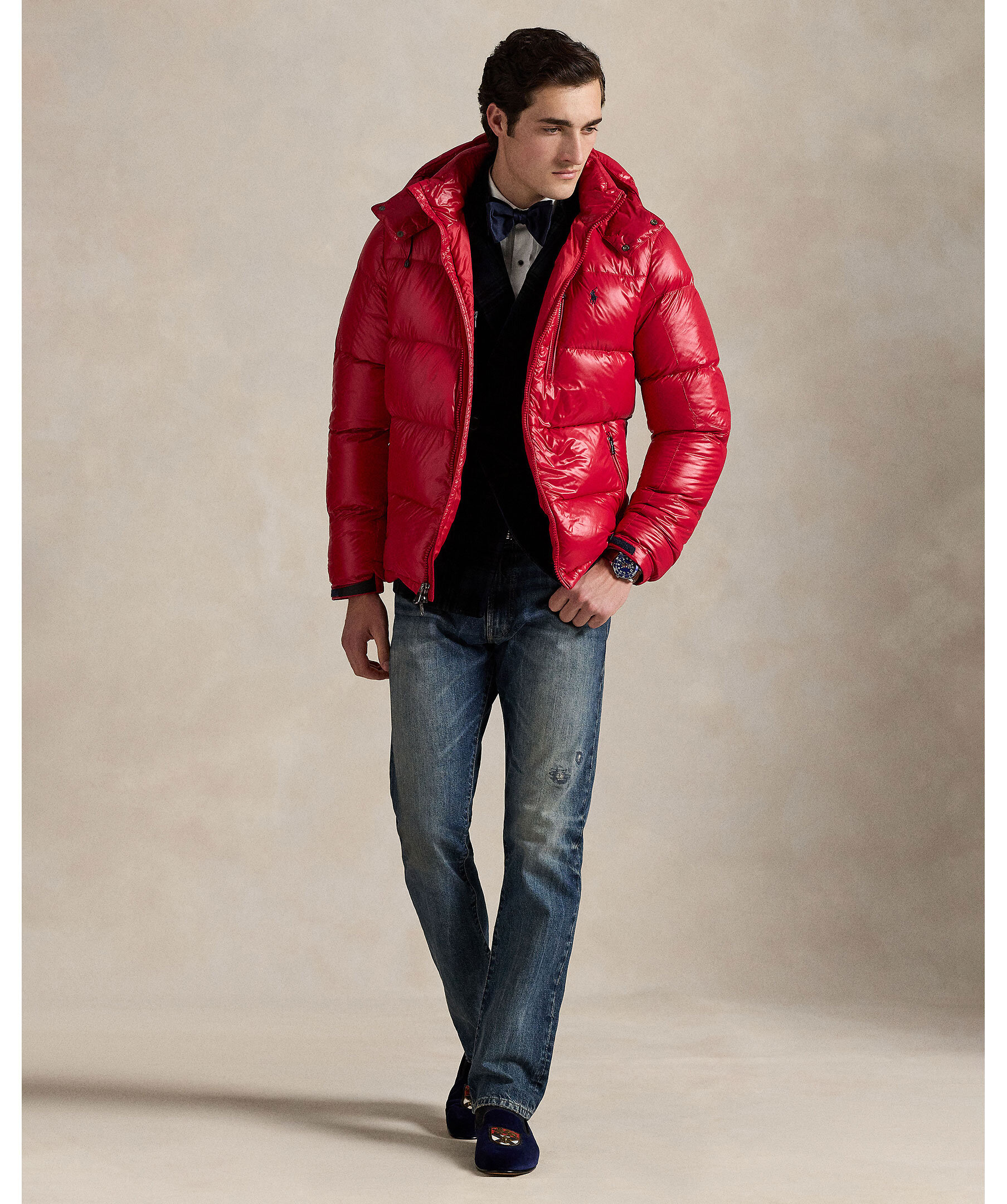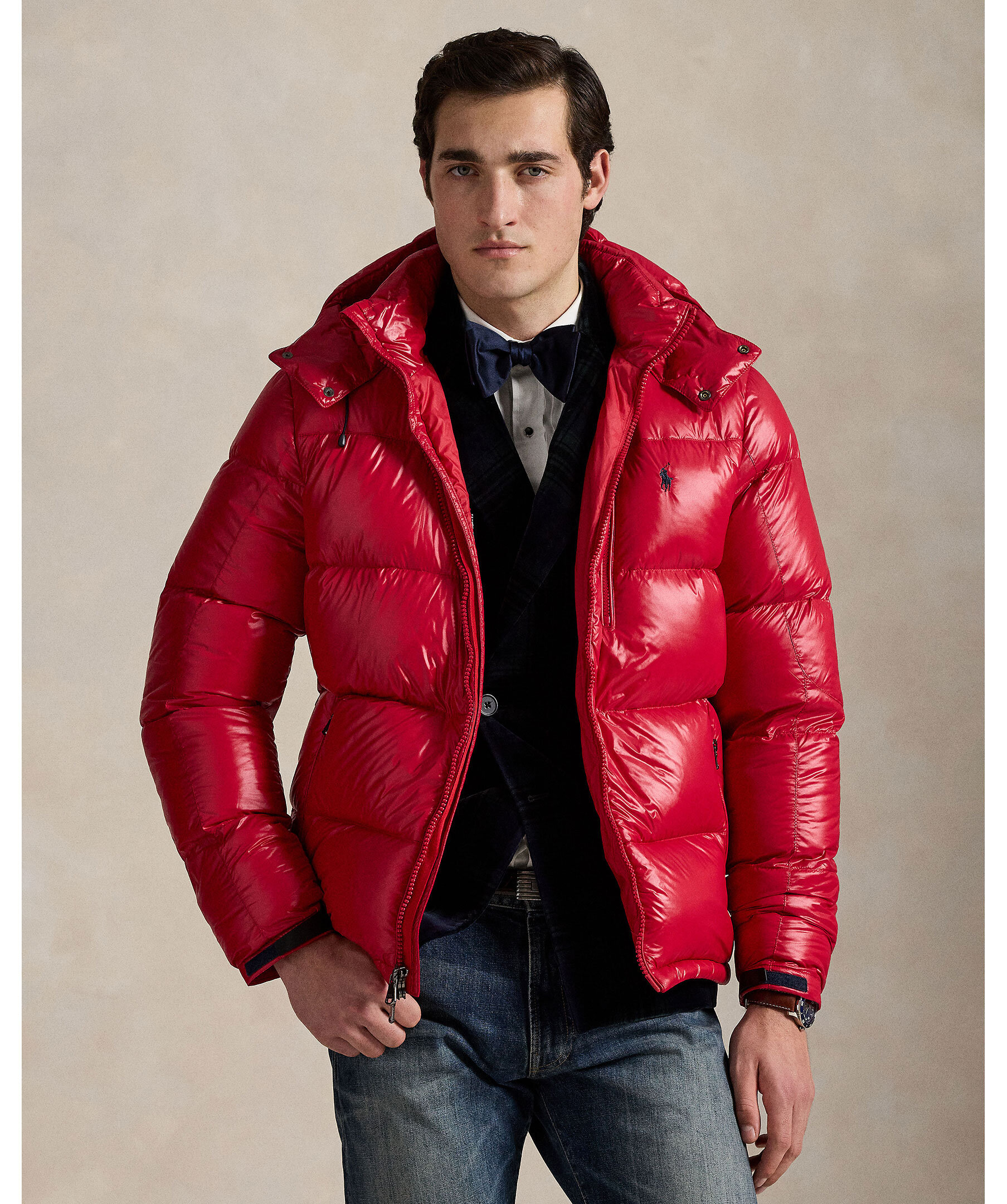 Gorham Jacket är en röd, glansig dunjacka från Polo Ralph Lauren. Gjord i vattenavvisande ripstop-tyg med glansig finish. Jackan är fodrad med högkvalitativa dun med 650-fill-power för optimal värme och har en avtagbar huva för flexibilitet. Två sidfickor och en bröstficka som stängs med dragkedja. Broderad polohäst på bröstet.