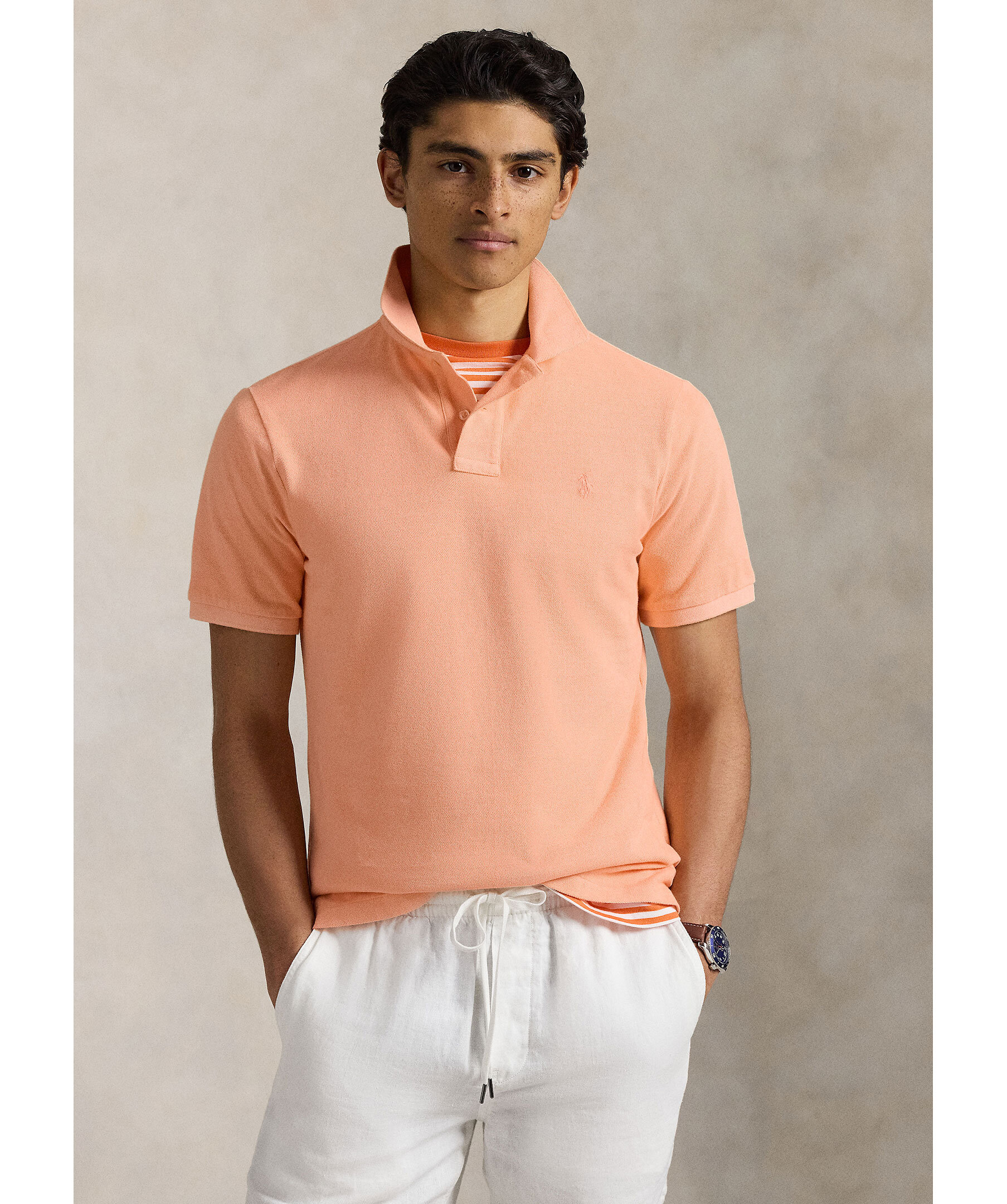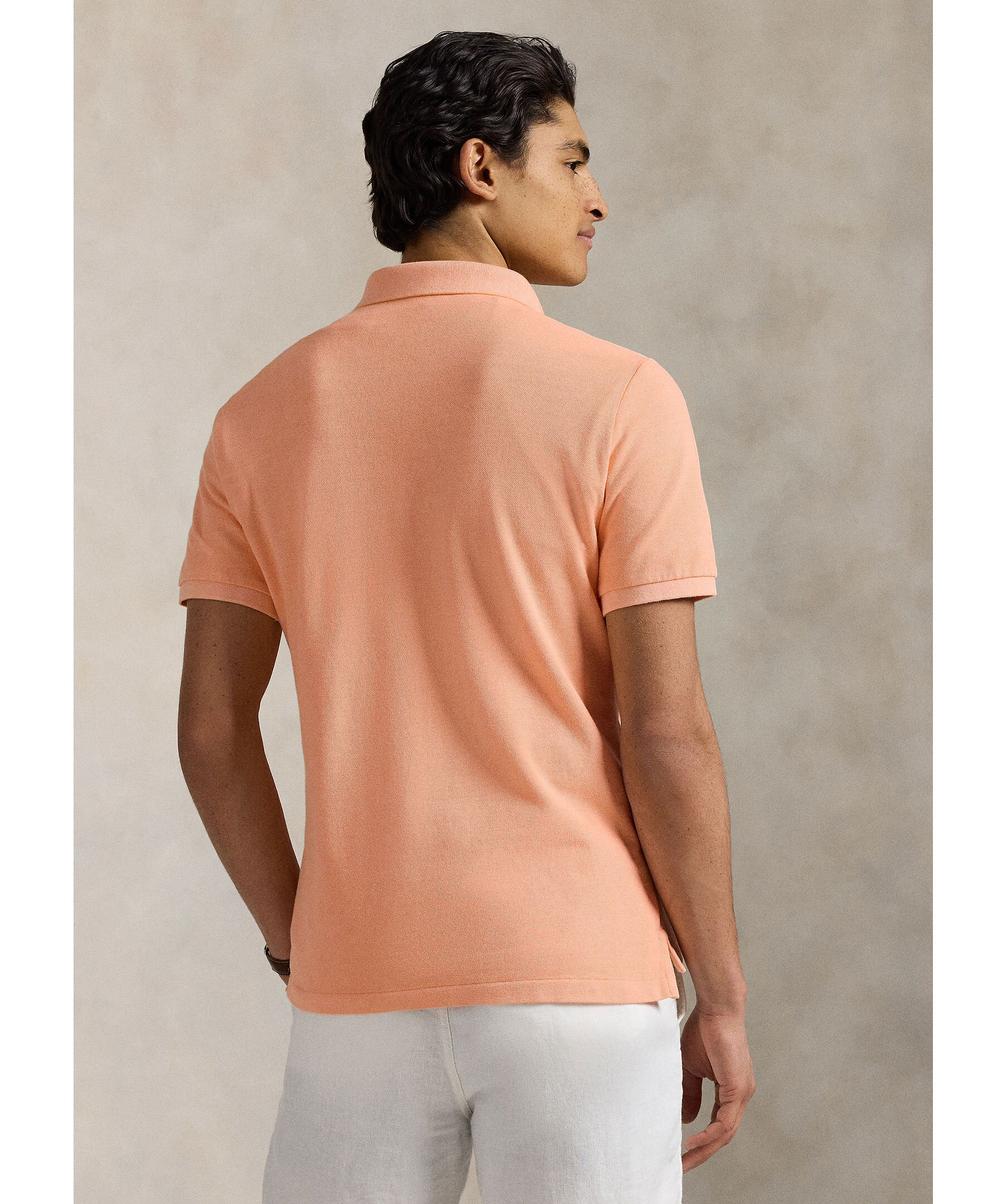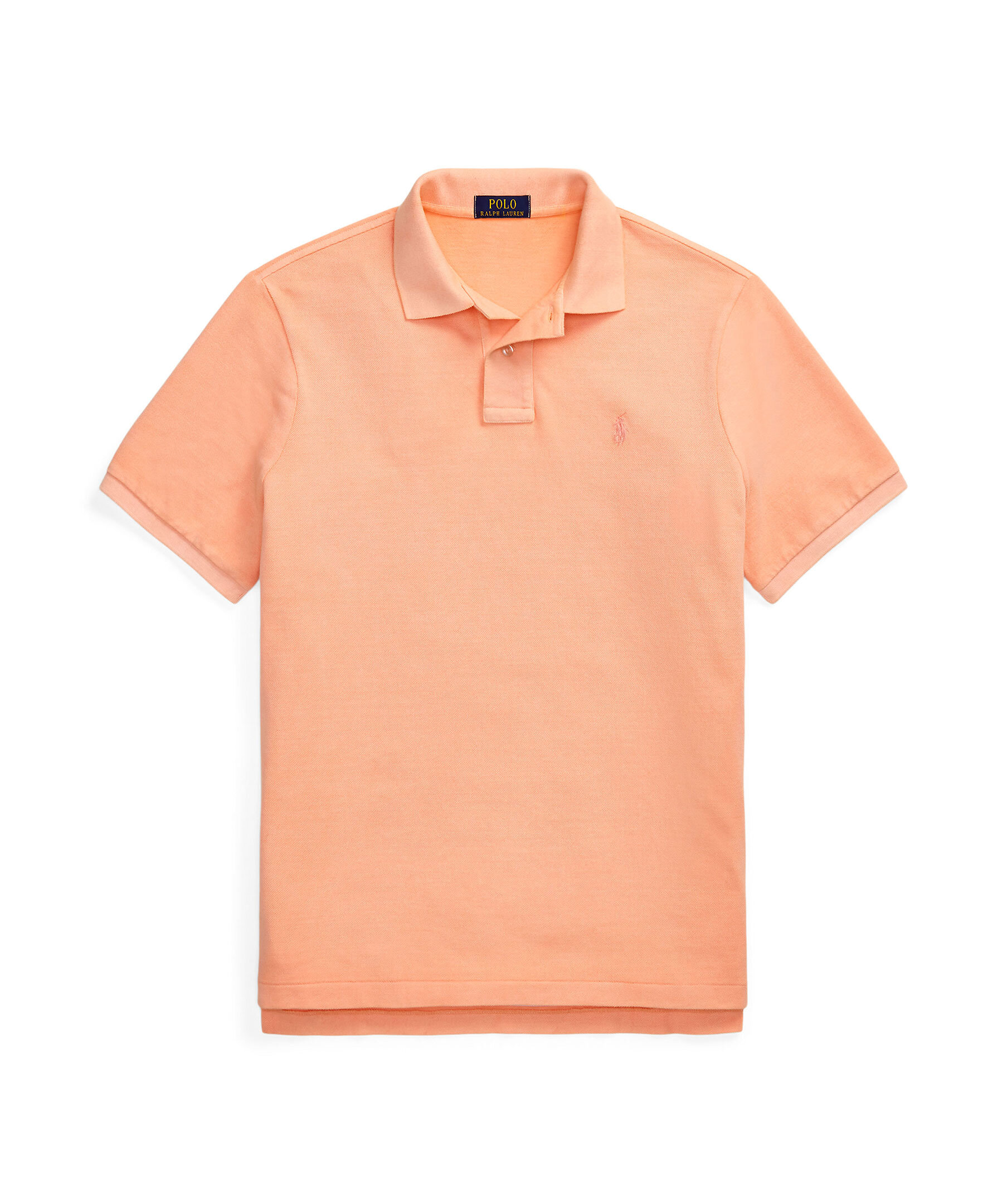 Orange piké från Polo Ralph Lauren. Pikén är plaggfärgad och har ribbstickad krage samt broderad logotyp på bröstet. Tillverkad i bomull.