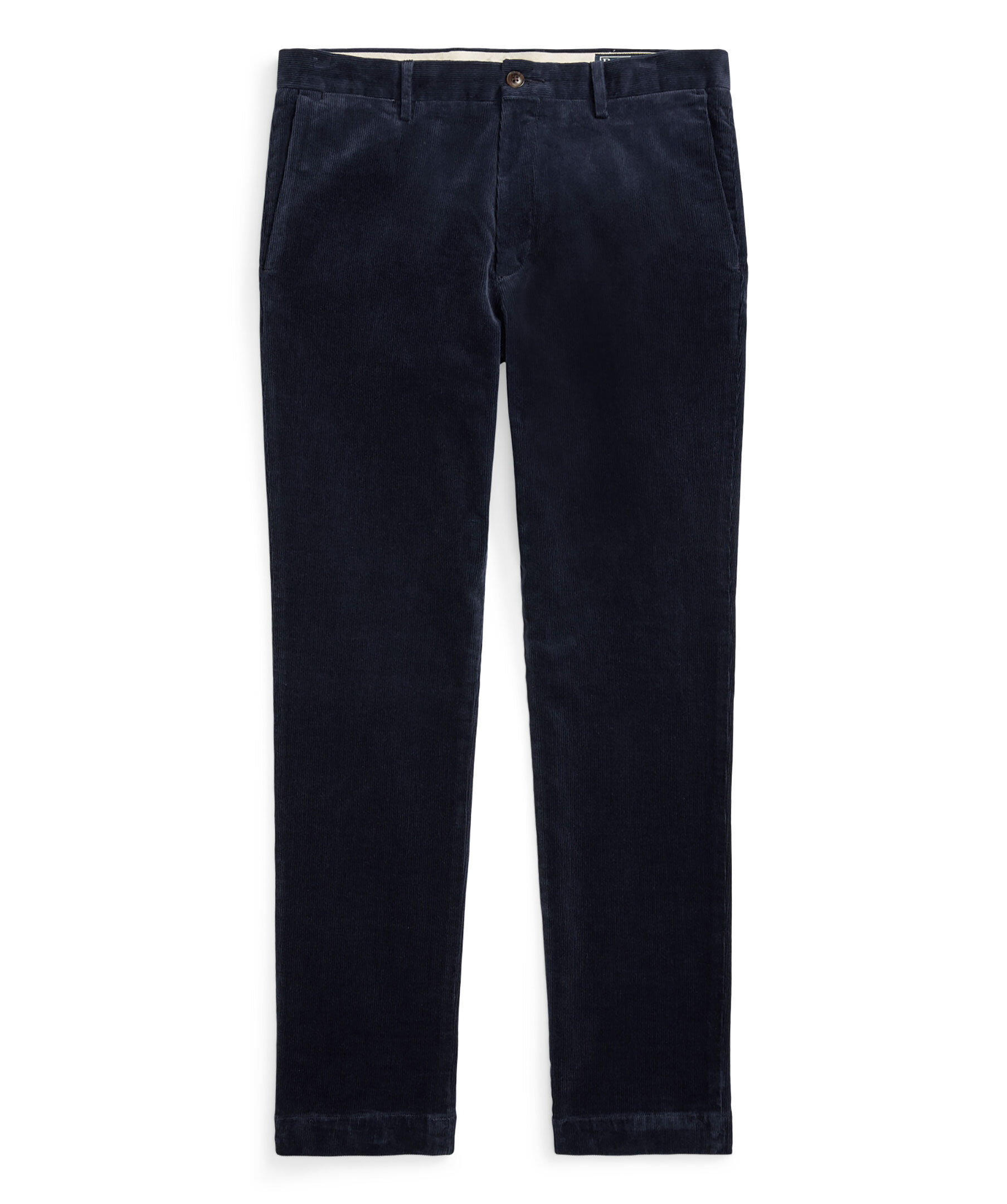 Midnattsblå manchesterbyxor från Polo Ralph Lauren. Byxorna har en mellanhög midja, raka och smala ben samt hällor för bälte. Dold gylf med dragkedja samt hake, hälla och knapp. Snedställda fickor i sidorna och raka fickor med knapp bak.