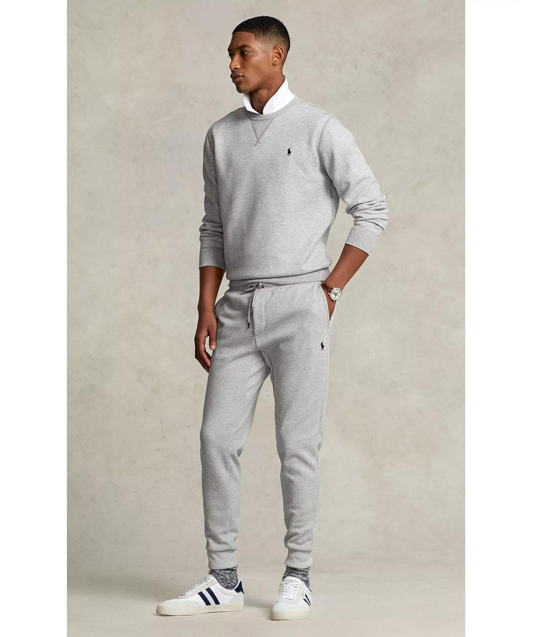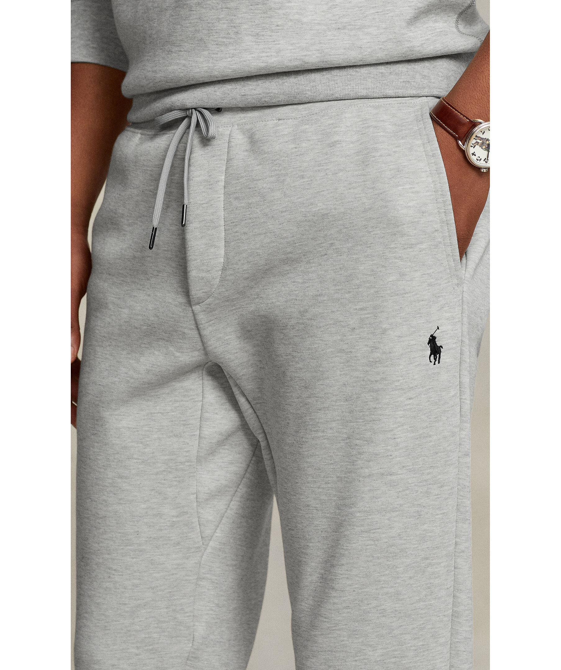 Ljusgrå, melerade mjukisbyxor från Polo Ralph Lauren. Dragsko i midjan. Broderad logotyp på vänster lår. Ribbstickad mudd vid benslut. Tillverkad i Bomulls blandning.
