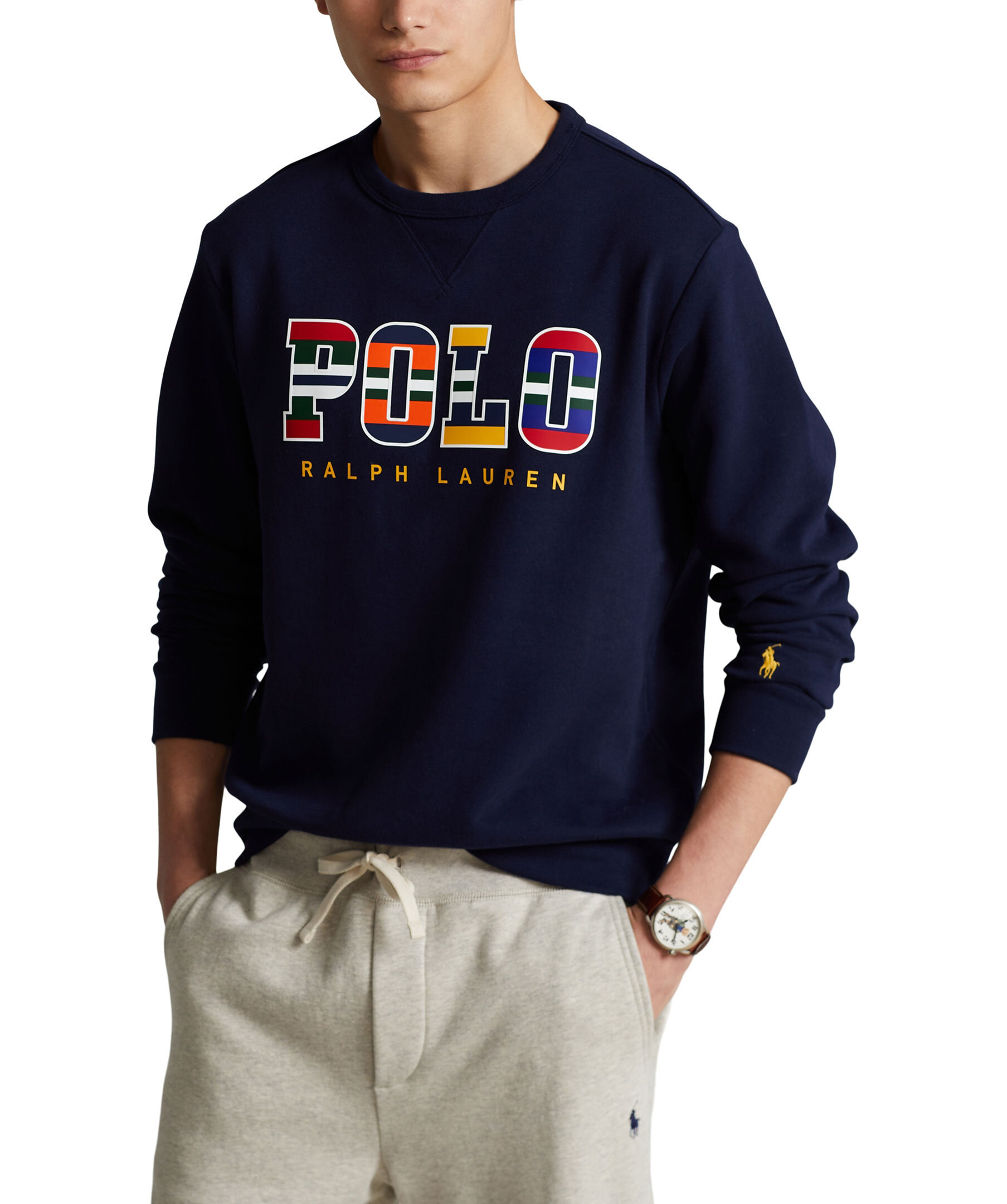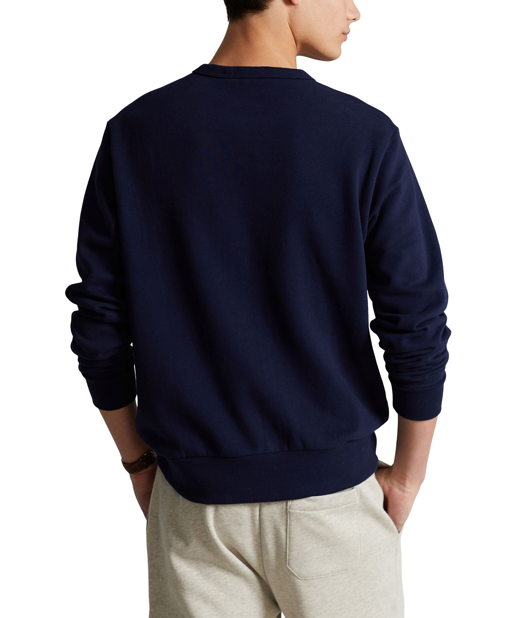 Marinblå sweatshirt från Polo Polo Ralph Lauren. Tillverkad i bomullsblandning och har en mjuk, borstad insida. Tryckt, flerfärgad logotyp över bröstet. Broderad logotyp på vänster ärm. Muddar i ärm- och plaggslut samt kring den rundhalsade ringningen.