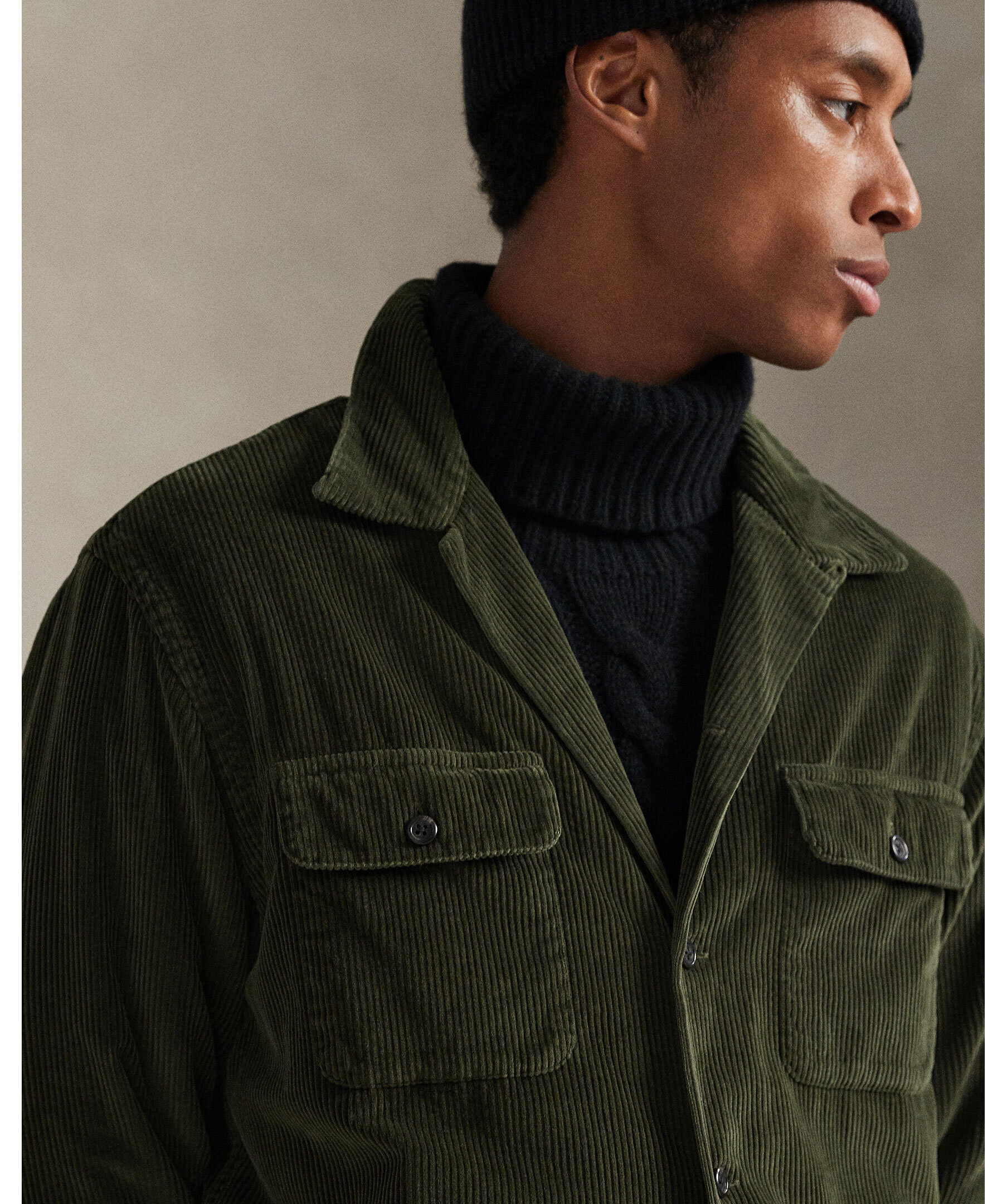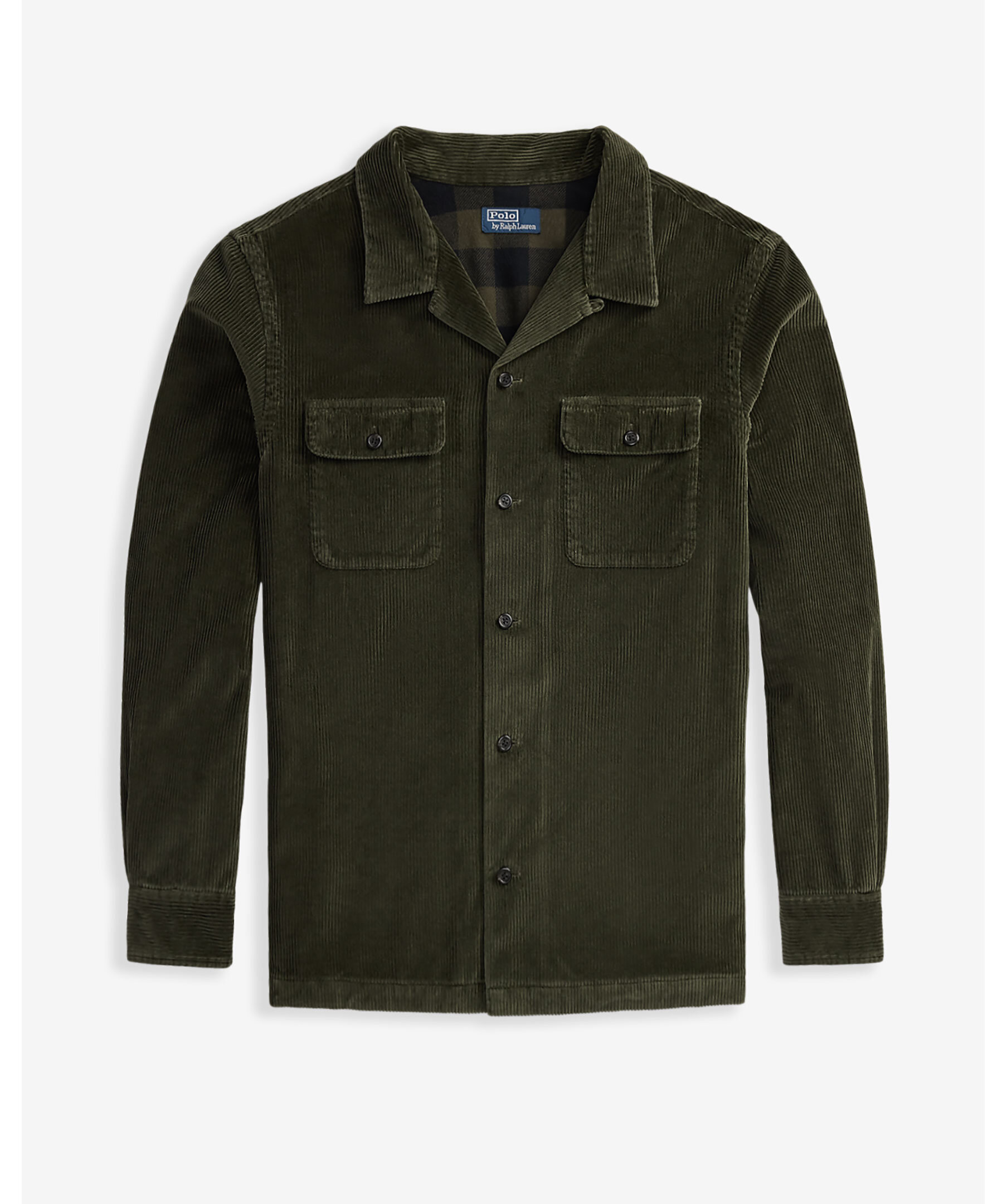 Mörkgrön overshirt i manchester från Polo Ralph Lauren. Stängs med knappar framtill och har två bröstfickor med lock och knapp. Tillverkad i bomull.