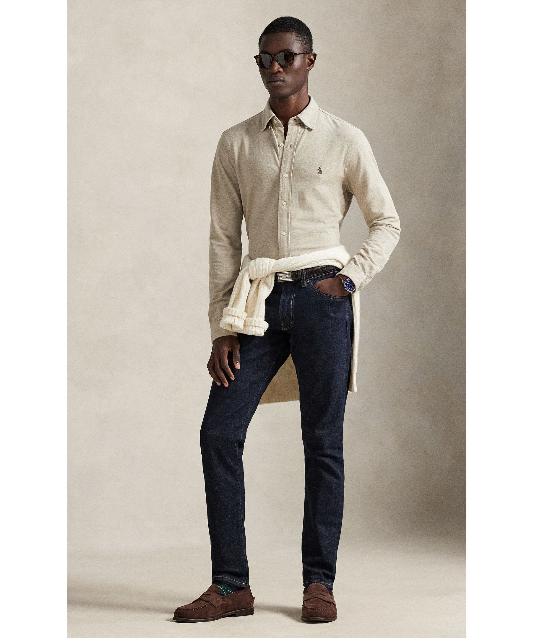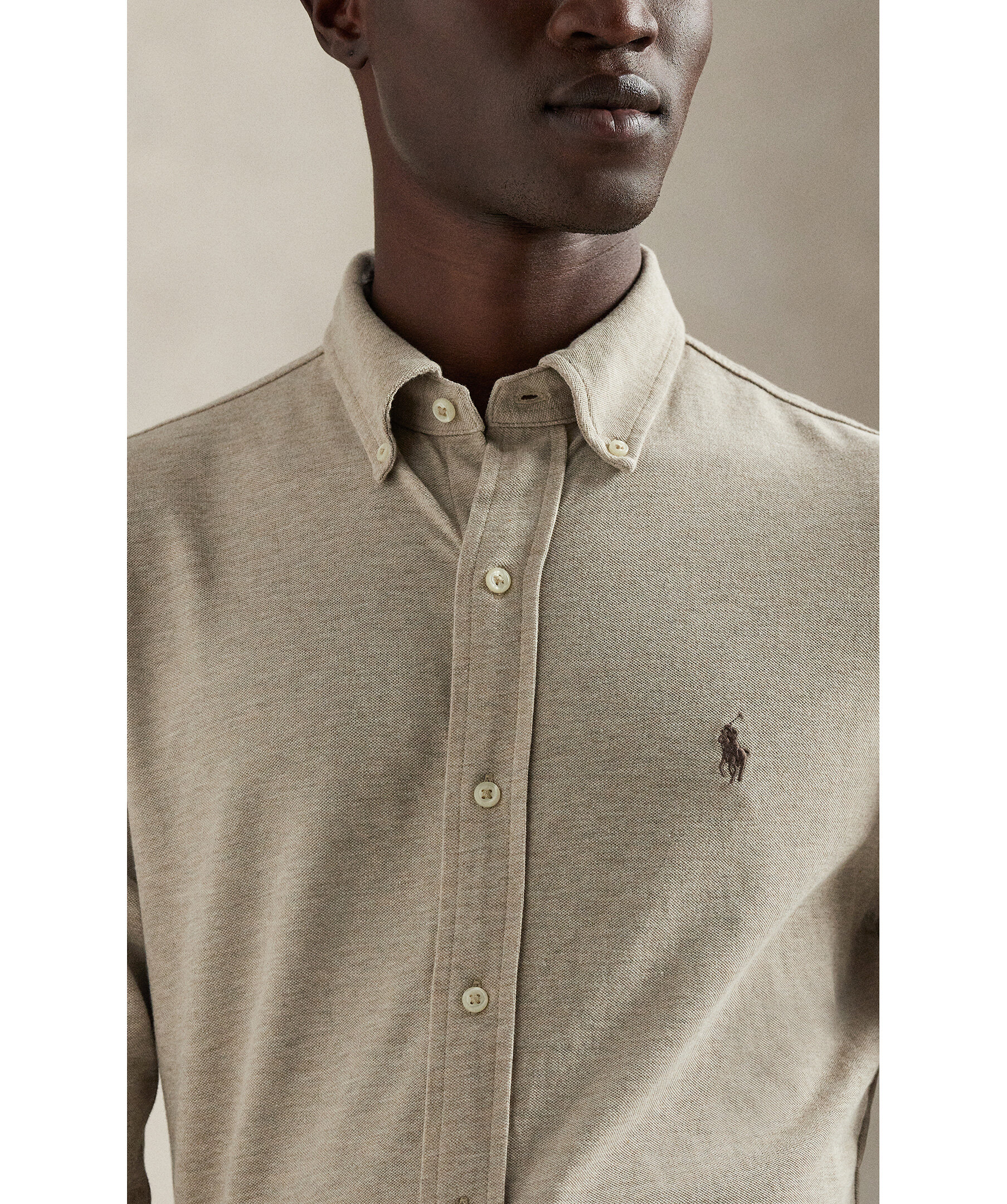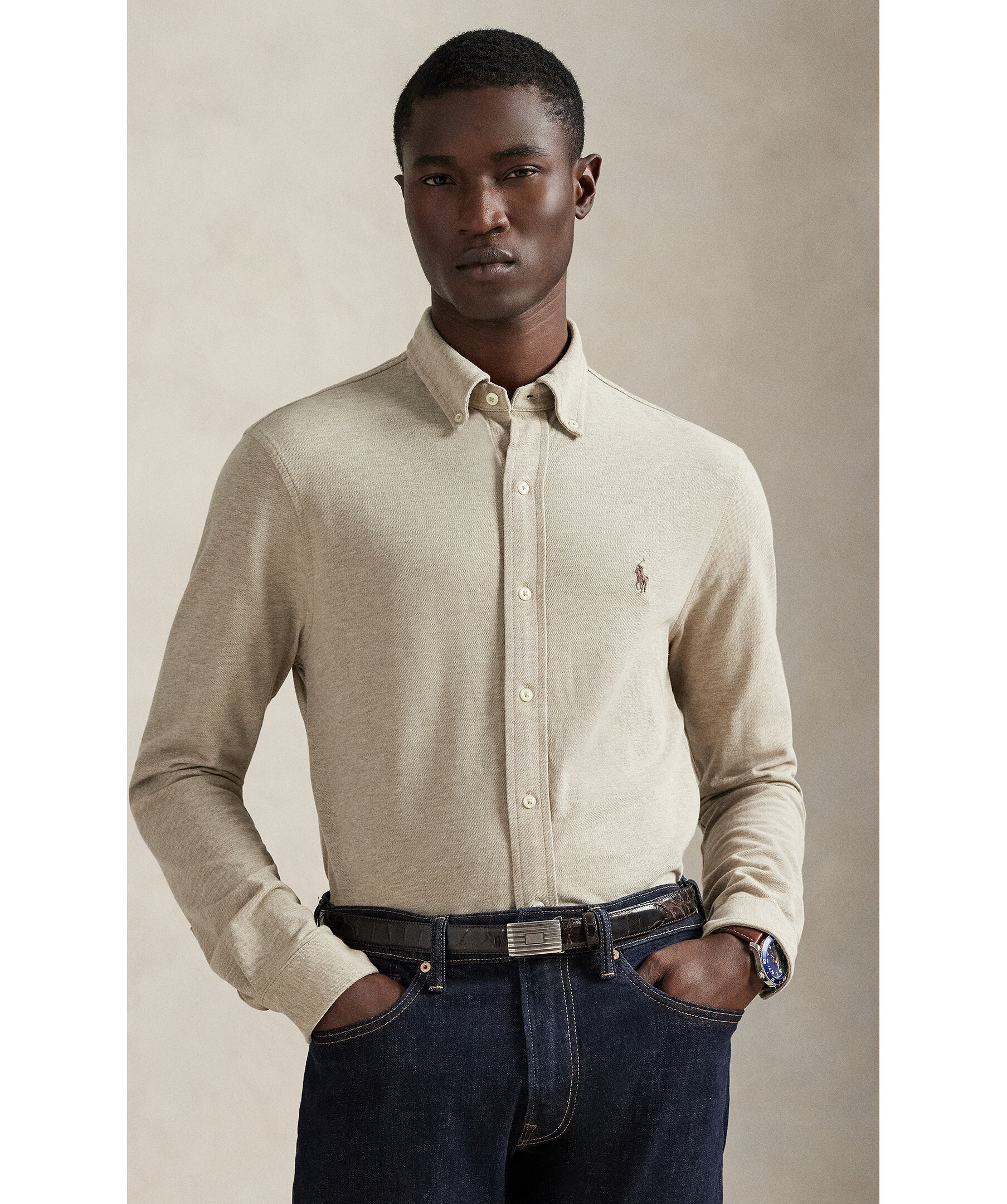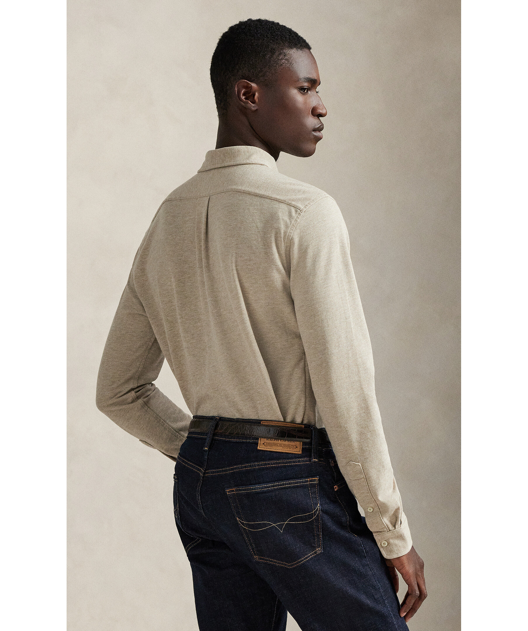 Oxfordskjorta i jersey från Polo Ralph Lauren. En modern skjorta som kombinerar den klassiska Oxford-looken med komforten från mjuk bomullsjersey. Designad med button-down-krage, knäppning framtill och en avslappnad passform som passar perfekt för både vardag och smart casual.