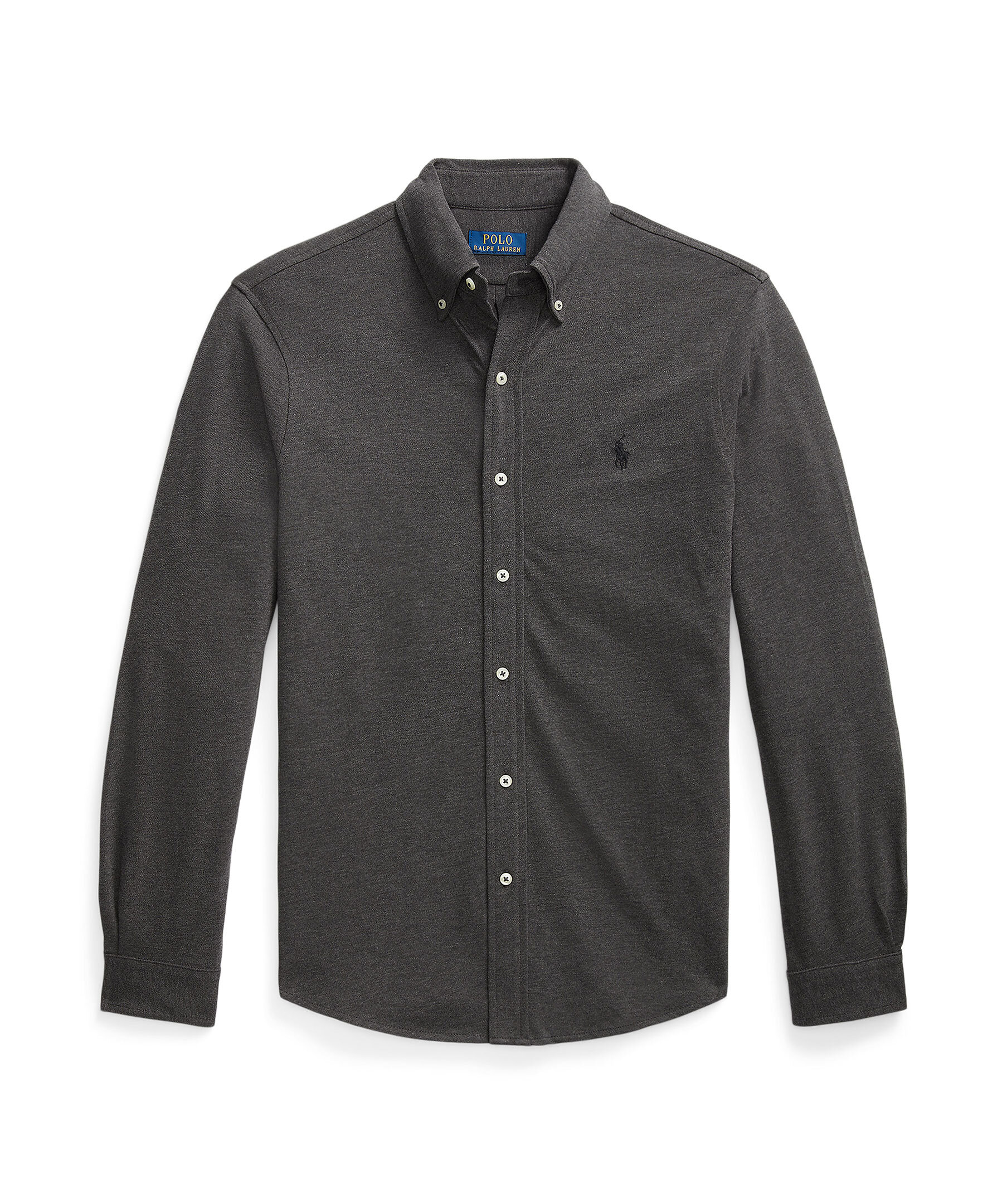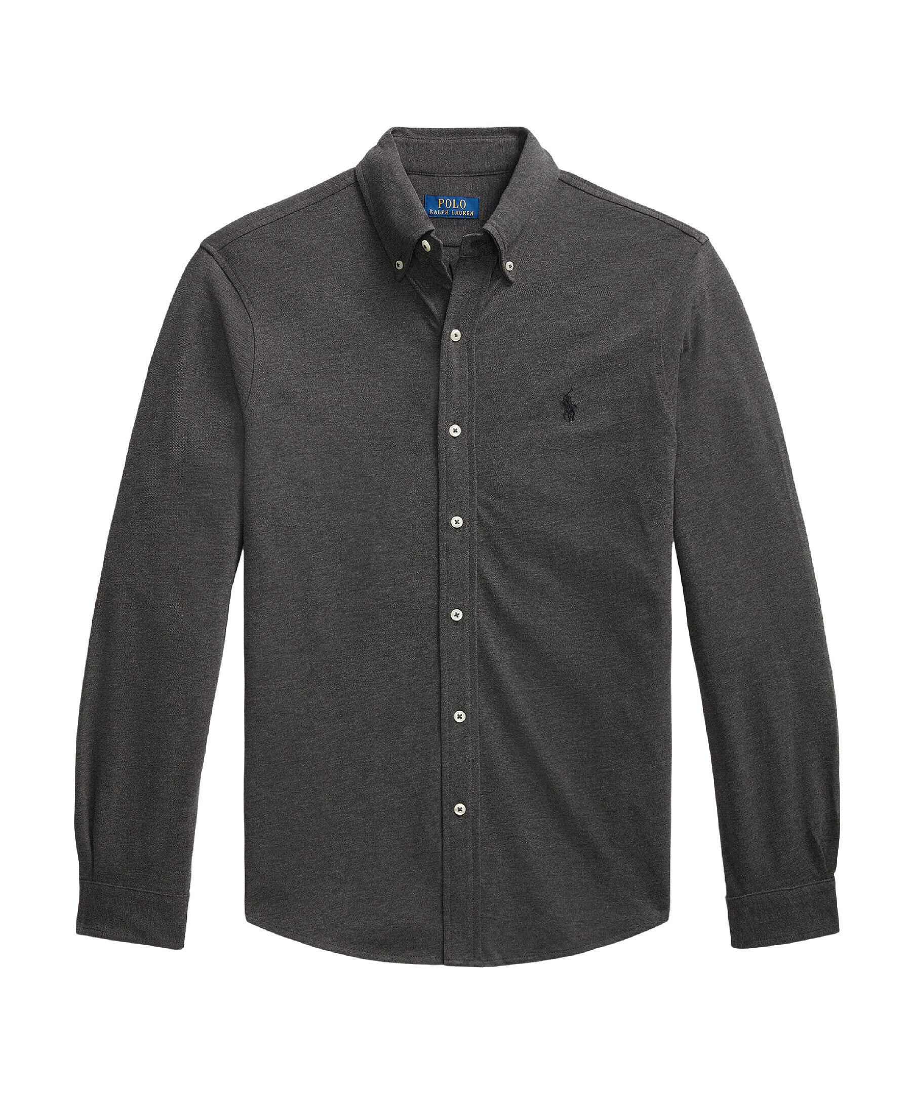 Grå långärmad skjorta från Polo Ralph Lauren. En version av Polo's signatur button-down skjorta och är skuren i ett ultratunt lager av ett lätt bomullsmaterial, vilket gör den perfekt för övergångsdagar eller när du vill ha ett bekvämt lager under tröjor eller jackor. Broderad logotyp på bröstet. Modellen är 185cm lång och har på sig strl M.