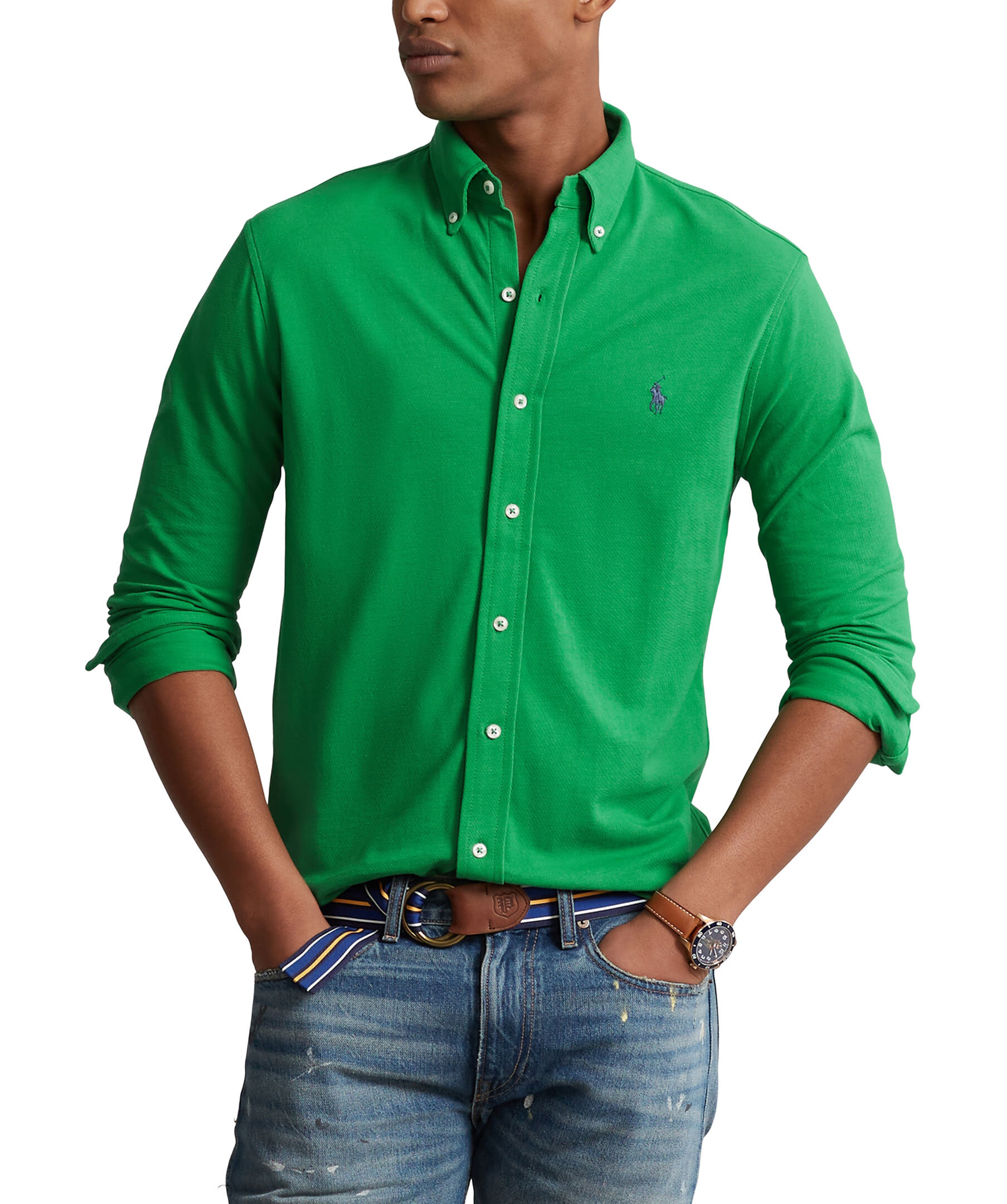 Grön, bomullsskjorta med button-down krage från Polo Ralph Lauren. Knappslå, långa ärmar med manschetter. Broderad logotyp på bröstet. Modellen är 185 cm lång och bär storlek medium.