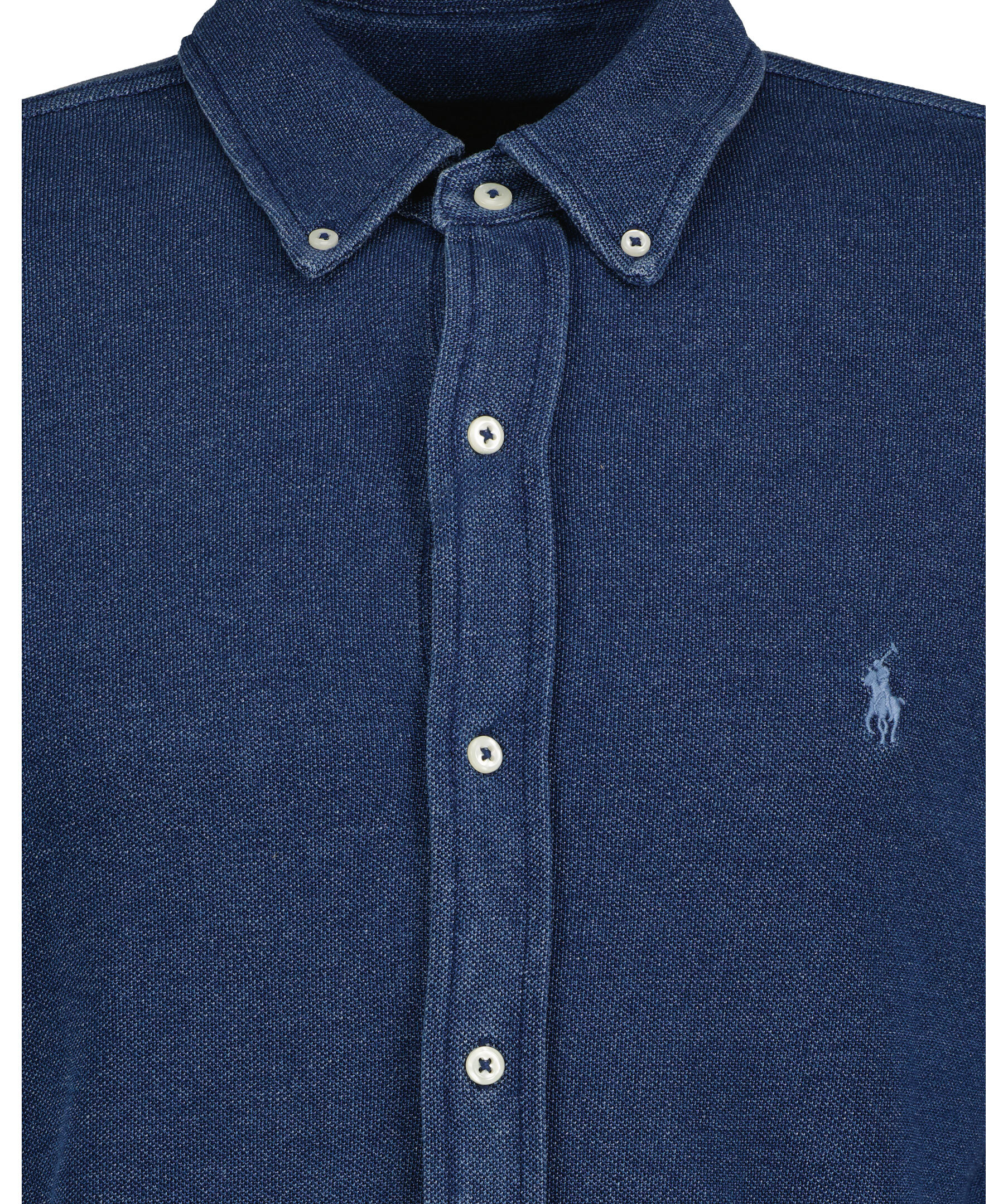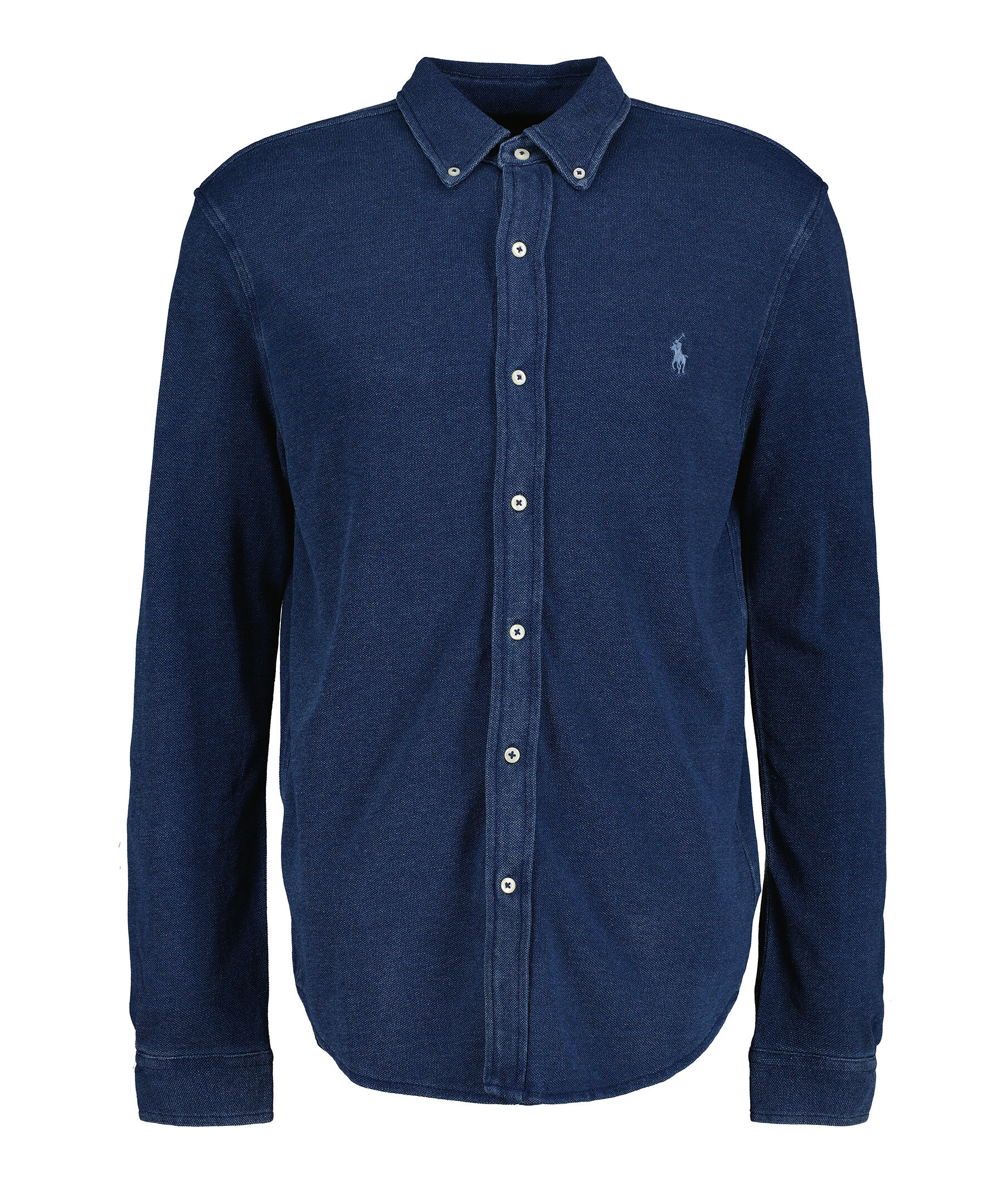 Indigofärgad bomullsskjorta med button-down krage från Polo Ralph Lauren. Knappslå, långa ärmar med manschetter. Broderad logotyp på bröstet.