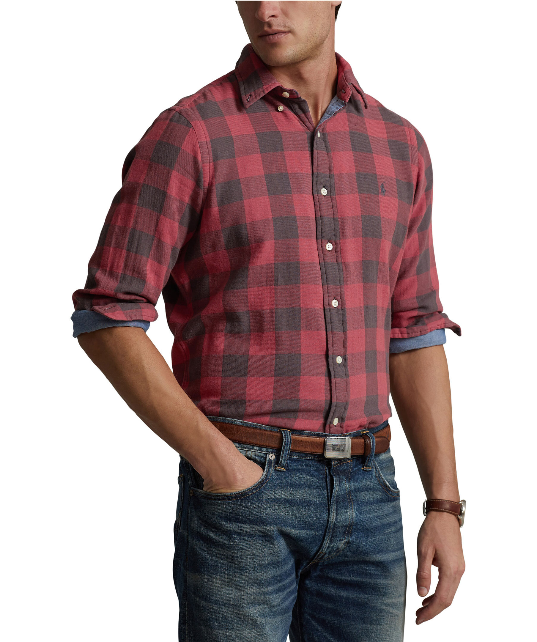 Röd, rutig skjorta från Polo Ralph Lauren. Tillverkad i 100% bomull och har en Custom fit. Stängs med vita knappar framtill, har en broderad logotyp på vänster bröst samt har en button-down krage. Manschetter med knappar i ärmslut.