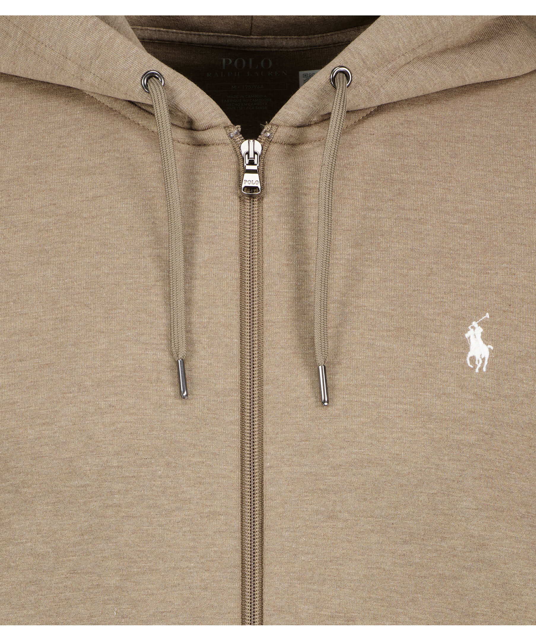 Brun huvtröja med full dragkedja från Polo Ralph Lauren. Tillverkad av en slät bomullsblandning och passar lätt för joggare eller jeans. Tröjan har en liten vit broderad signaturhäst på vänster sida av bröstet och två fickor.