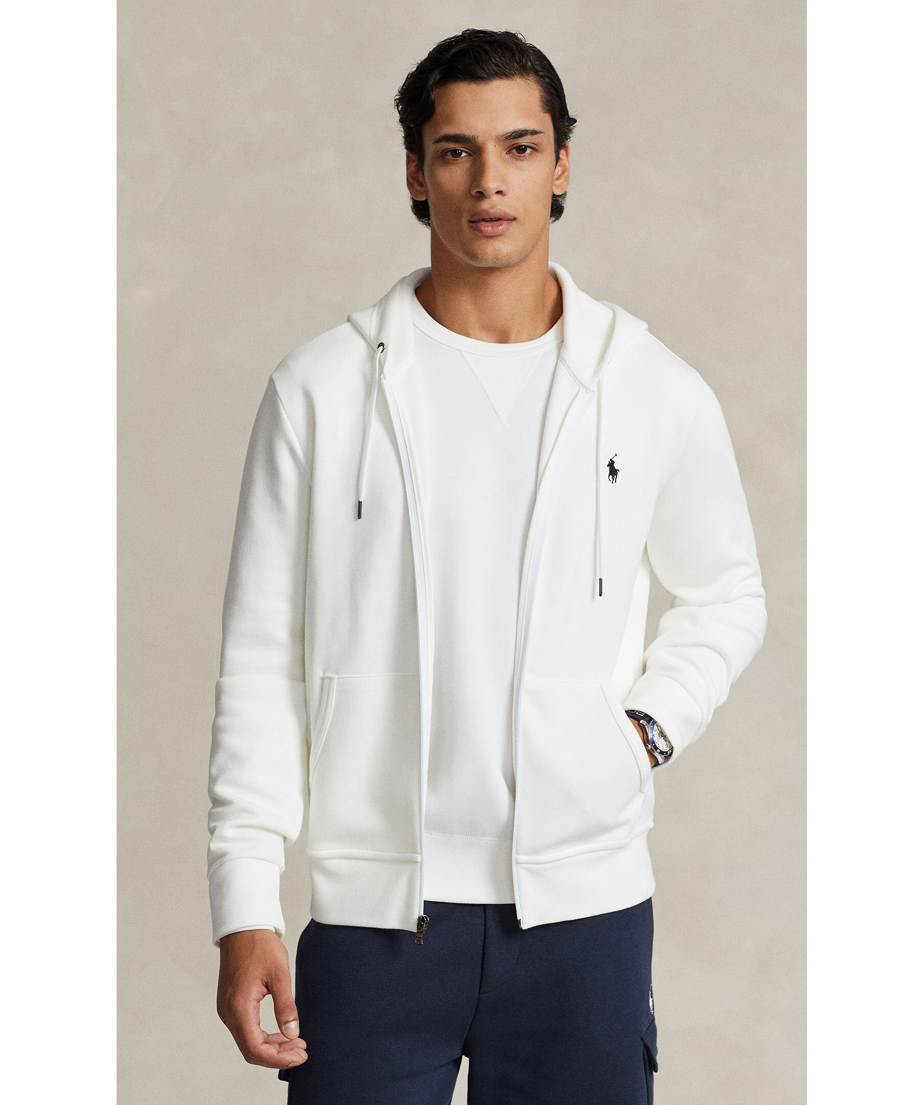 Vit hoodie från Polo Ralph Lauren. Stängs framtill med dragkedja. Luva med dragsko. Fickor på magen. Ribbstickad muddar vid ärm- och plaggslut. Tillverkad i bomullsblandning.