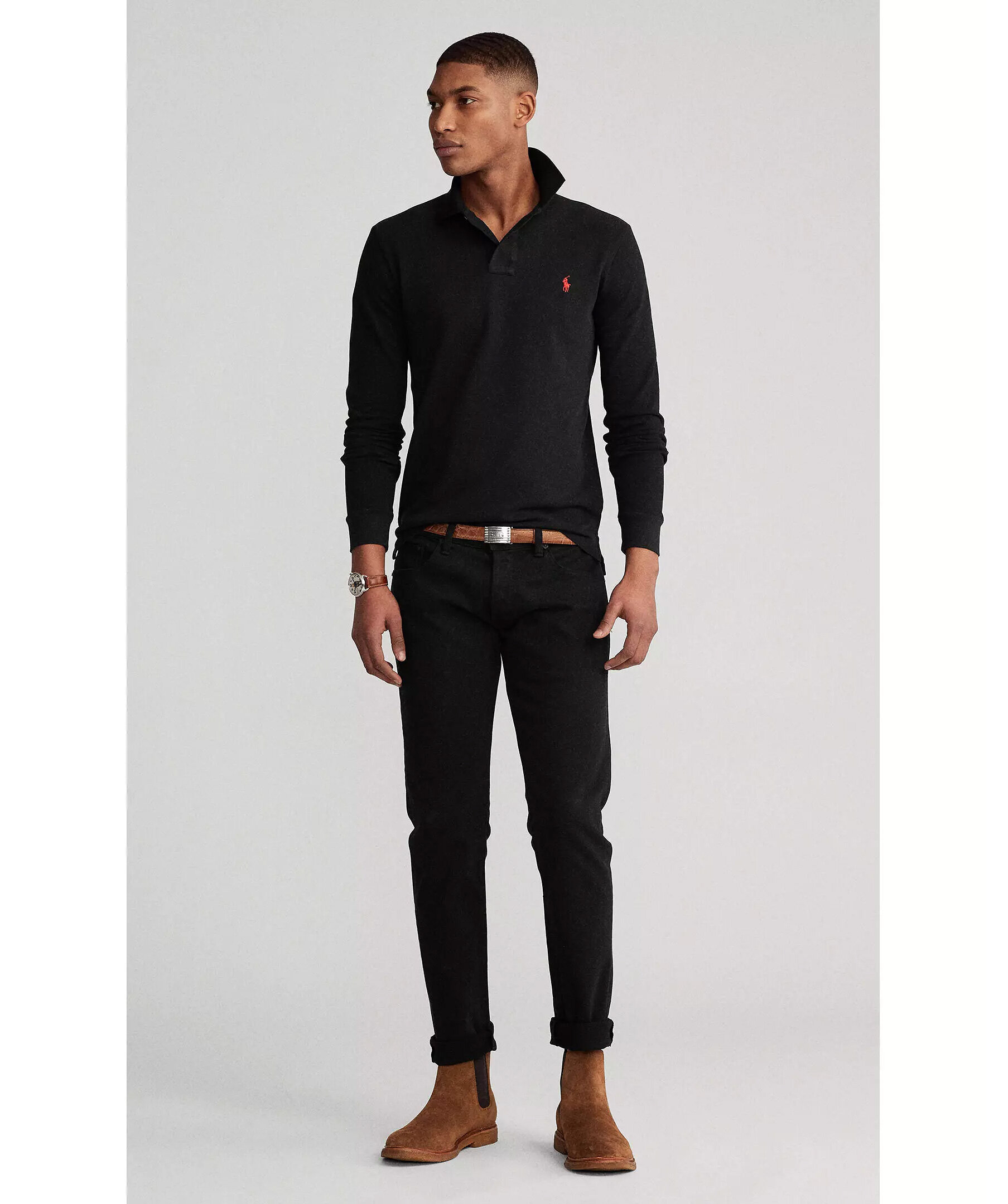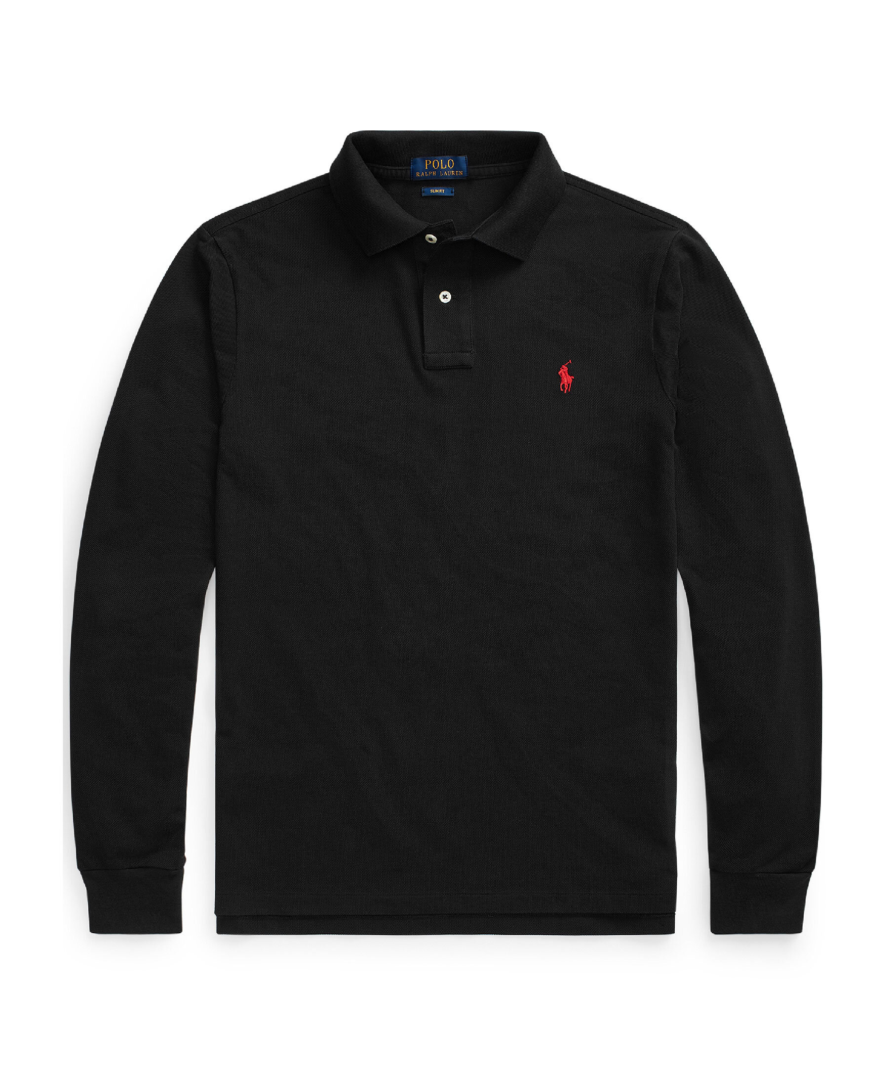 Svart långärmad piké tröja från Polo Ralph Lauren. Broderad logotyp i rött på vänster bröst. Ribbstickad krage och ärmslut. Tillverkad i 100% Bomull.