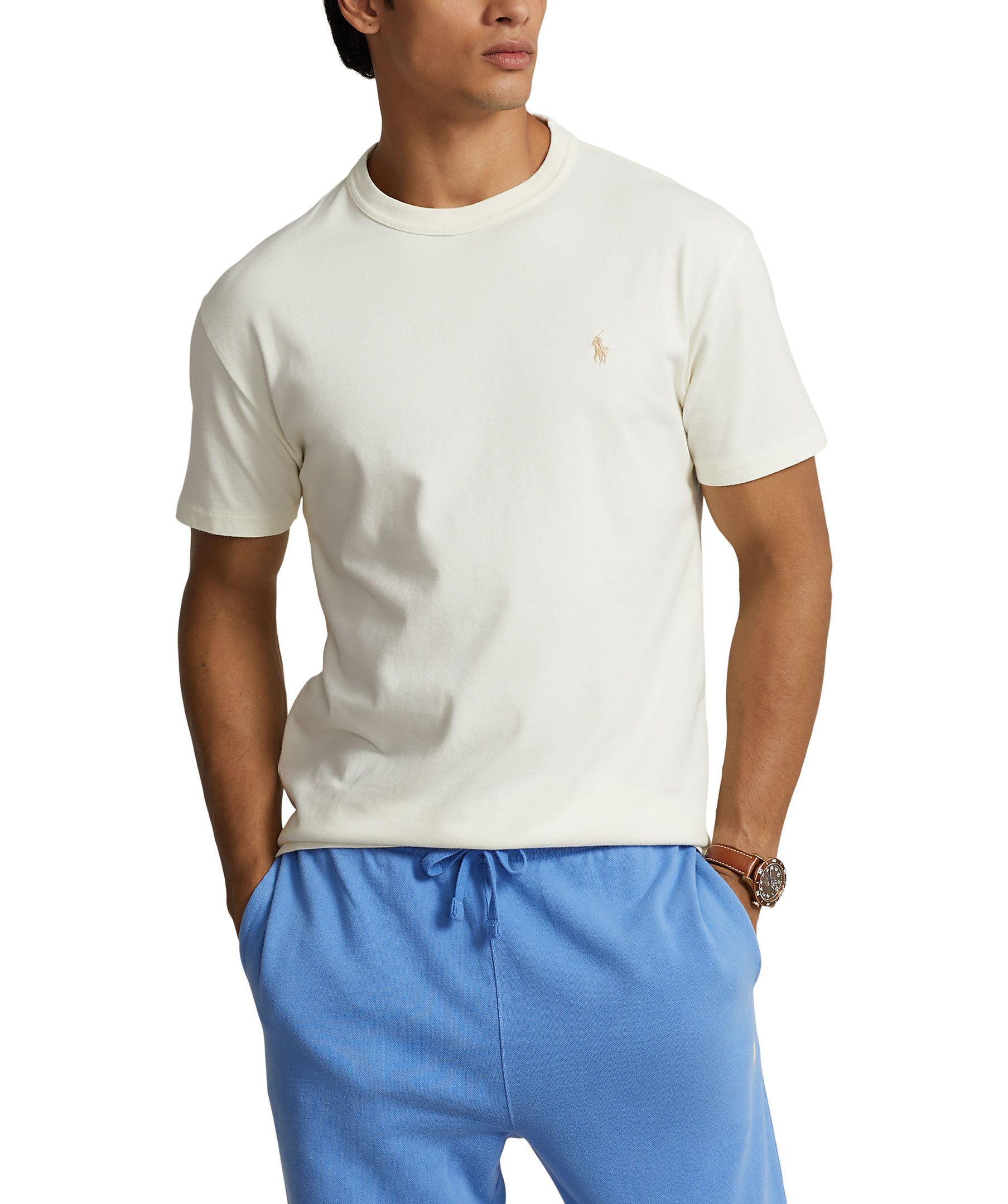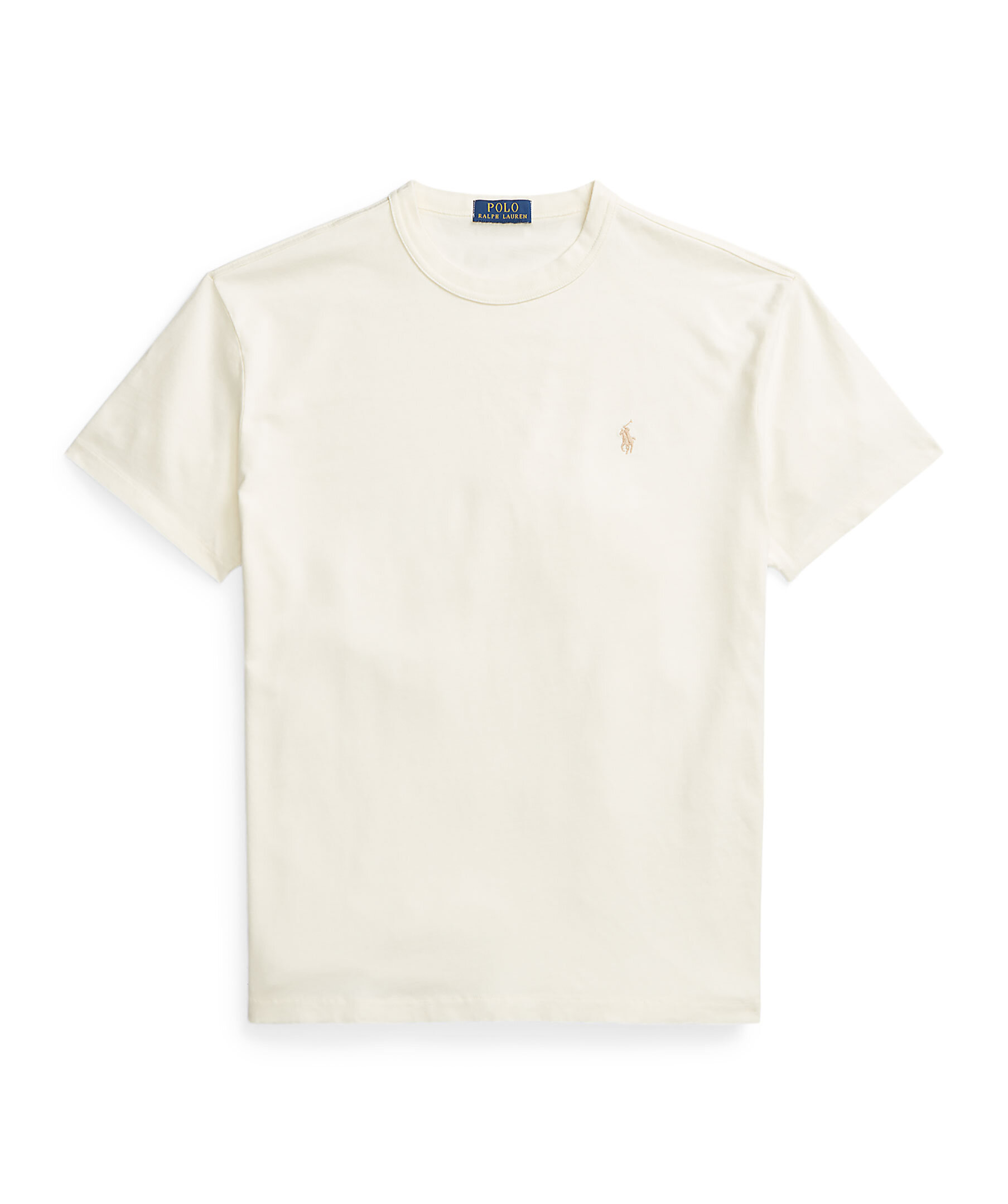 Krämvit t-shirt från Polo Ralph Lauren i en urtvättad look. Rund hals. Liten broderad signaturpony på vänster bröst. Tillverkad i 100% bomull.
