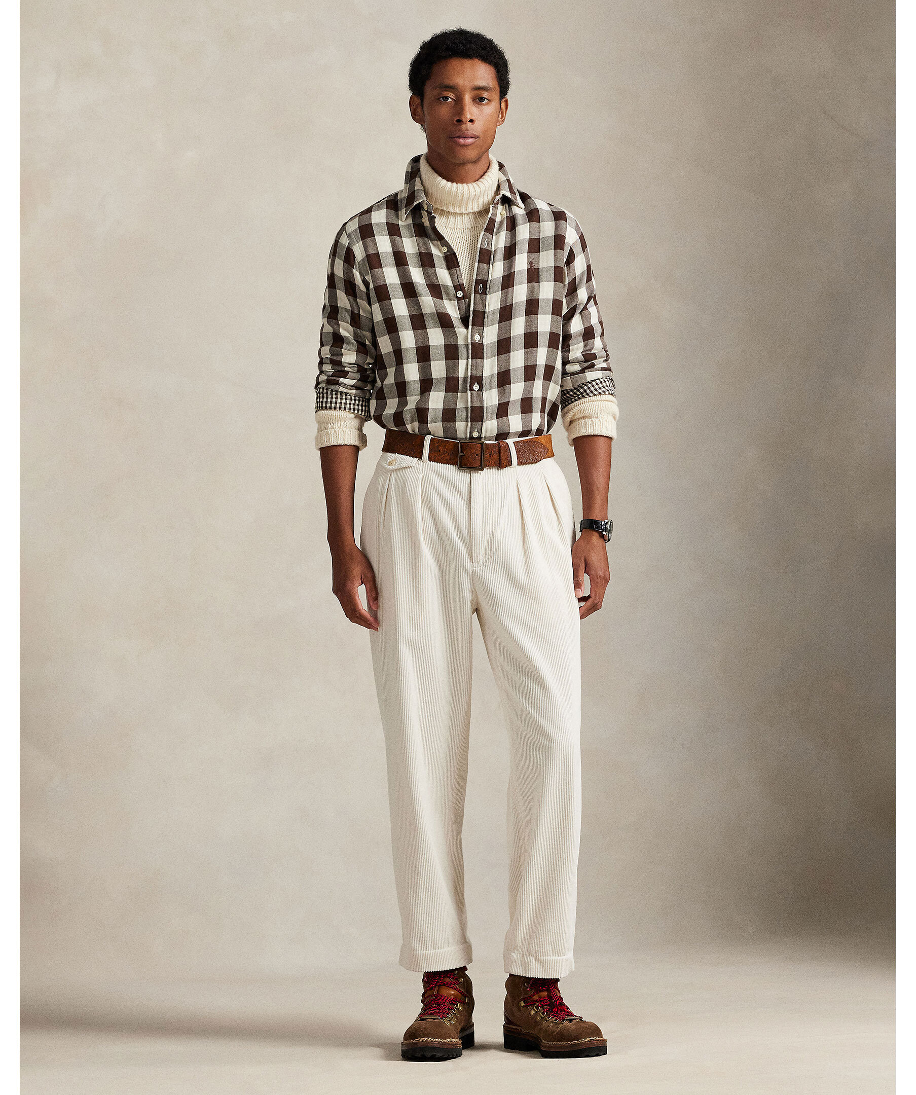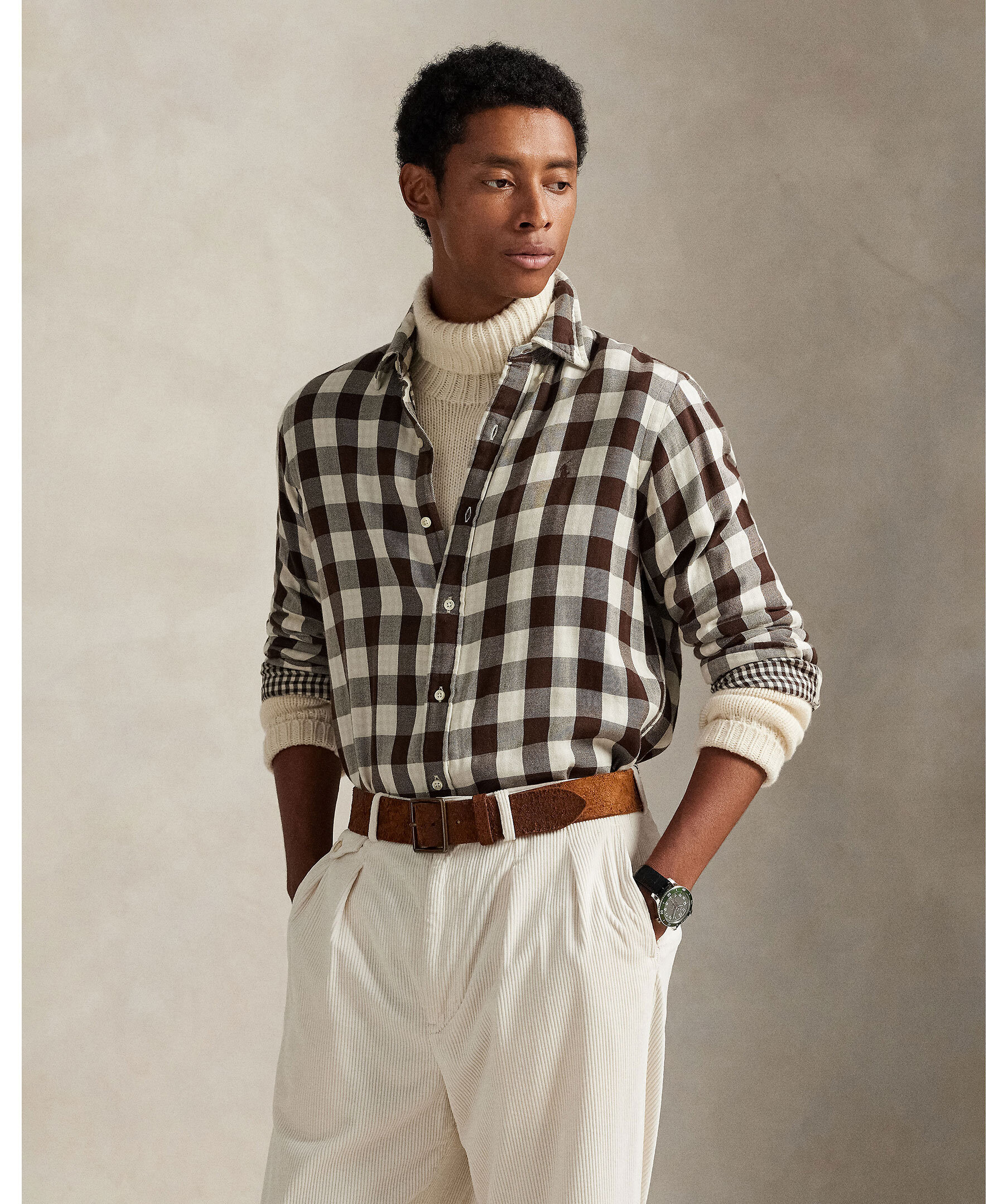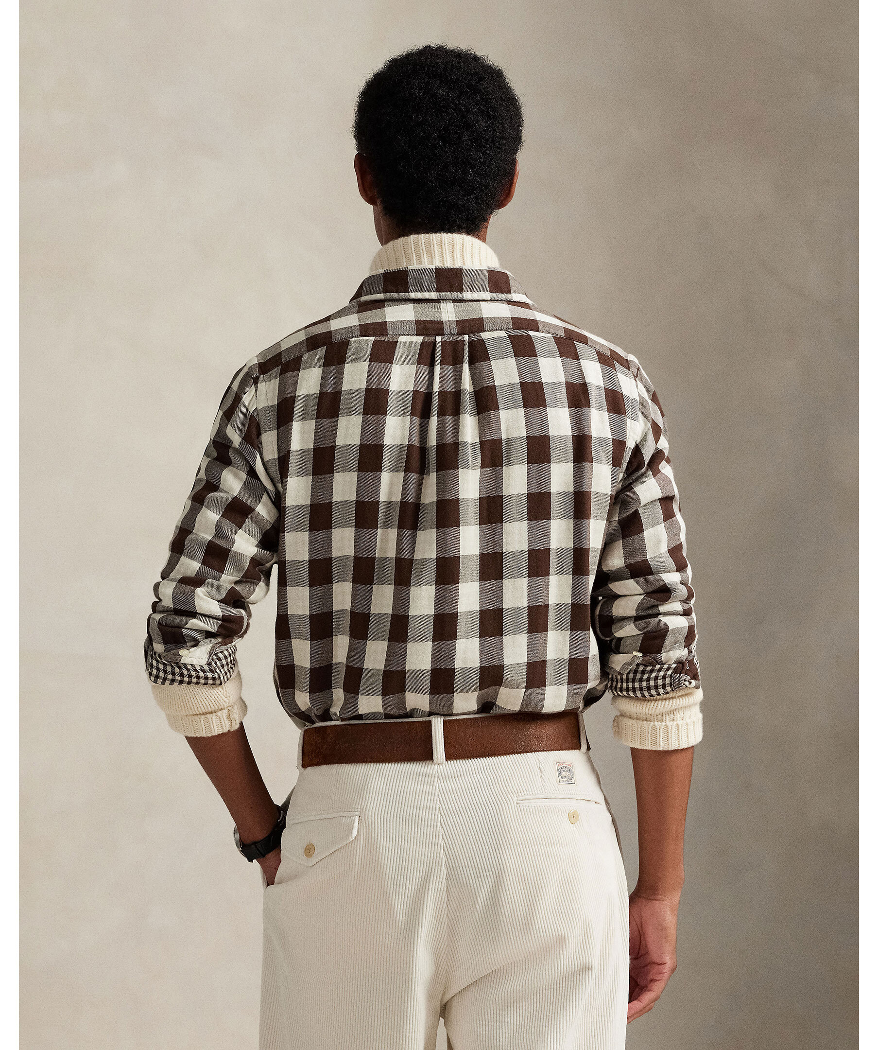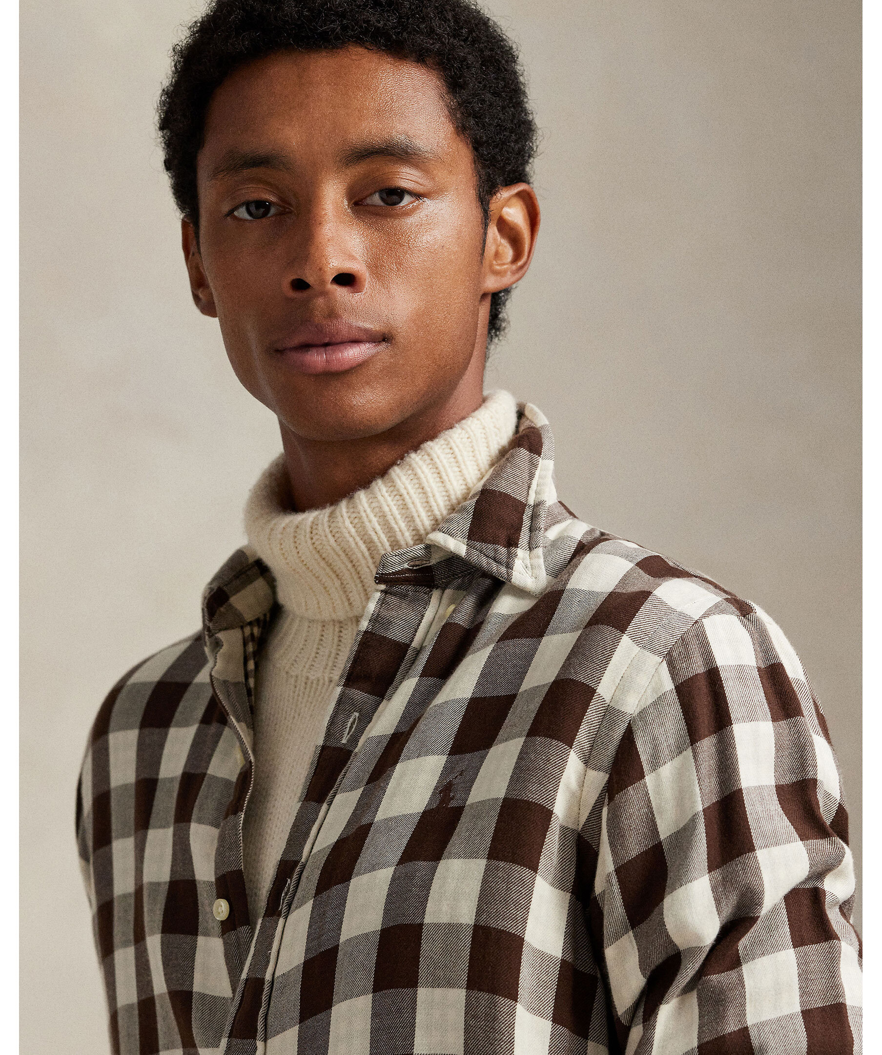 Rutig flanellskjorta från Polo Ralph Lauren i brunt och krämvitt. Buttondown krage, broderad logotyp på bröstet.