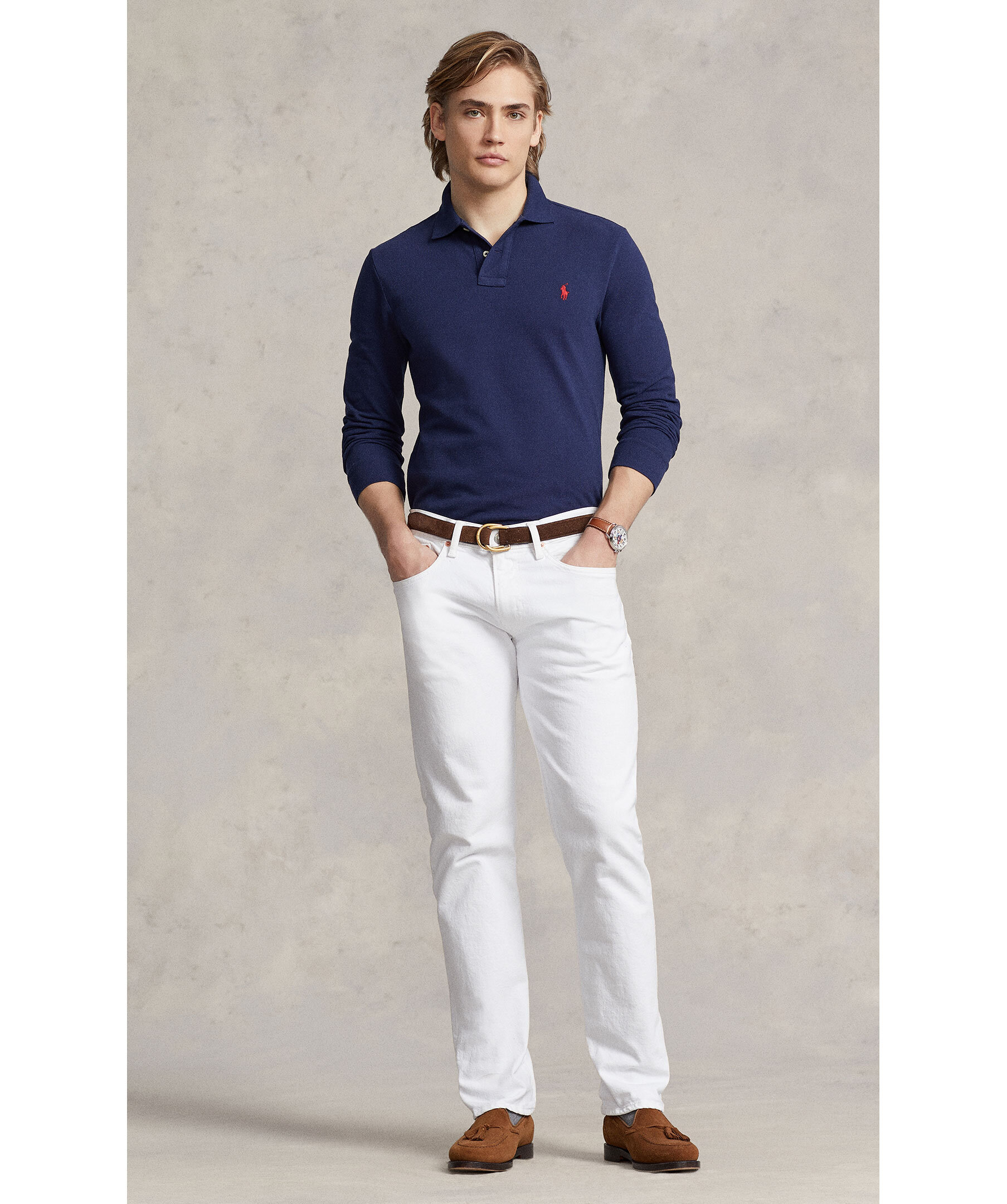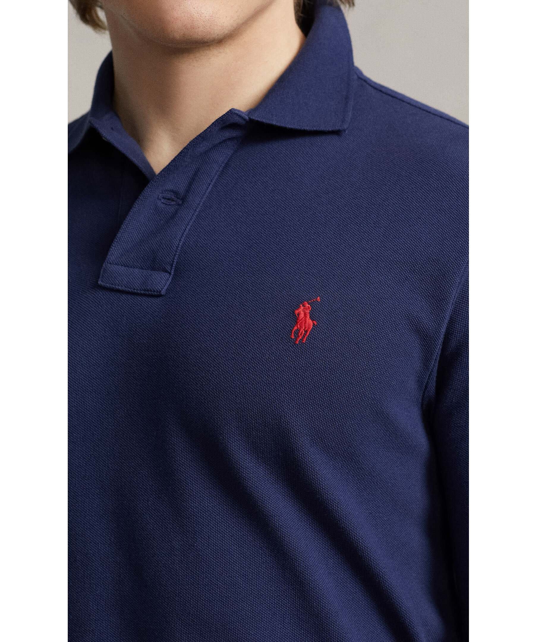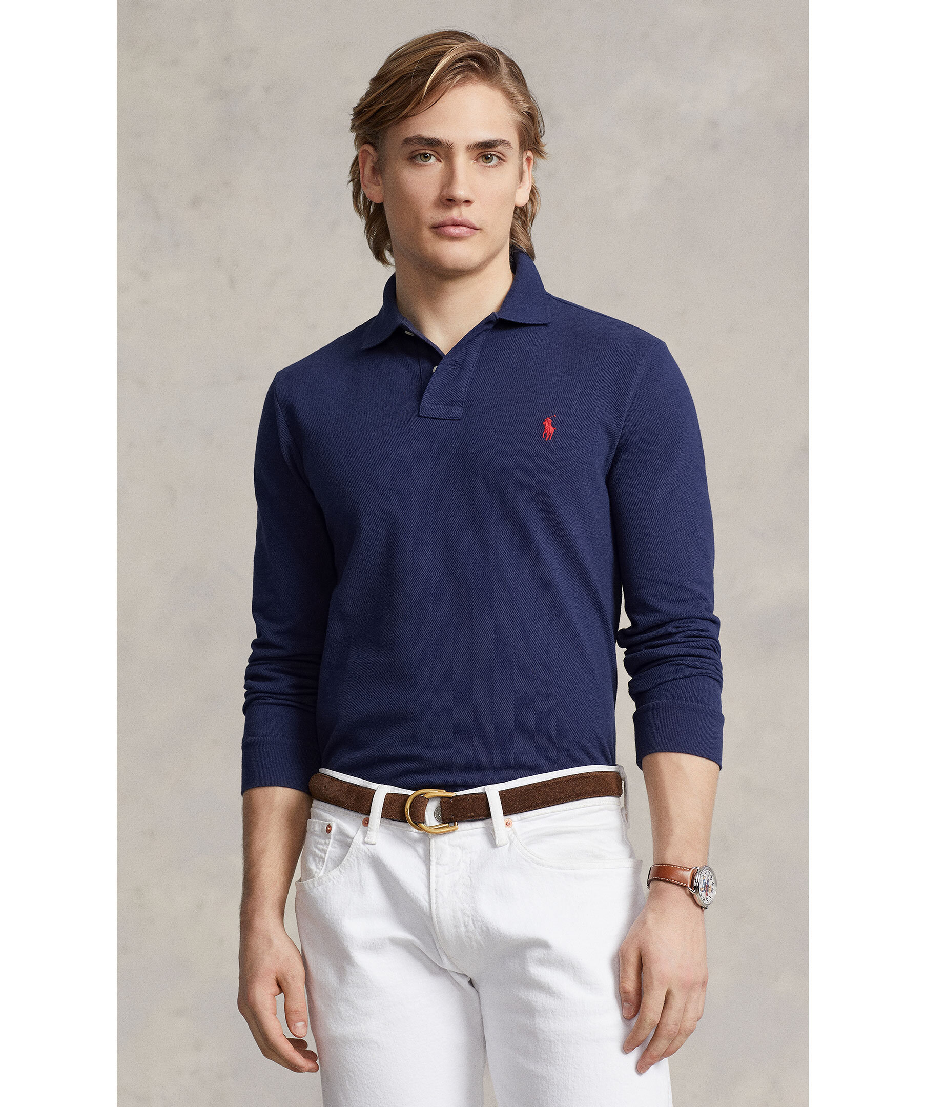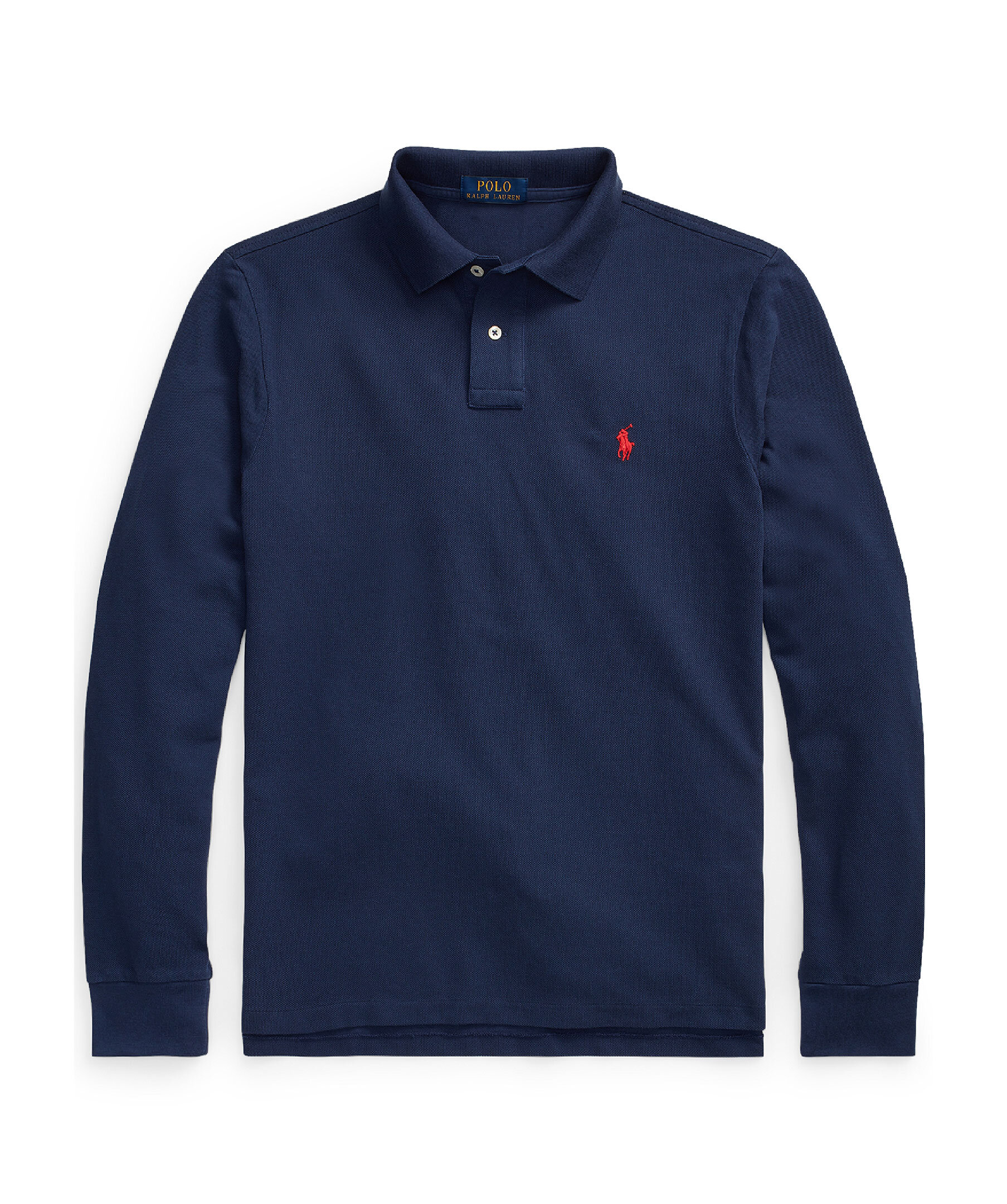 Mörkblå långärmad piké tröja från Polo Ralph Lauren. Broderad logotyp i rött på vänster bröst. Ribbstickad krage och ärmslut. Tillverkad i 100% Cotton.