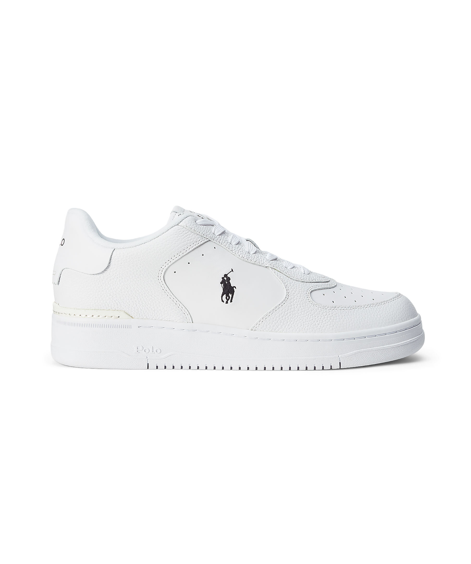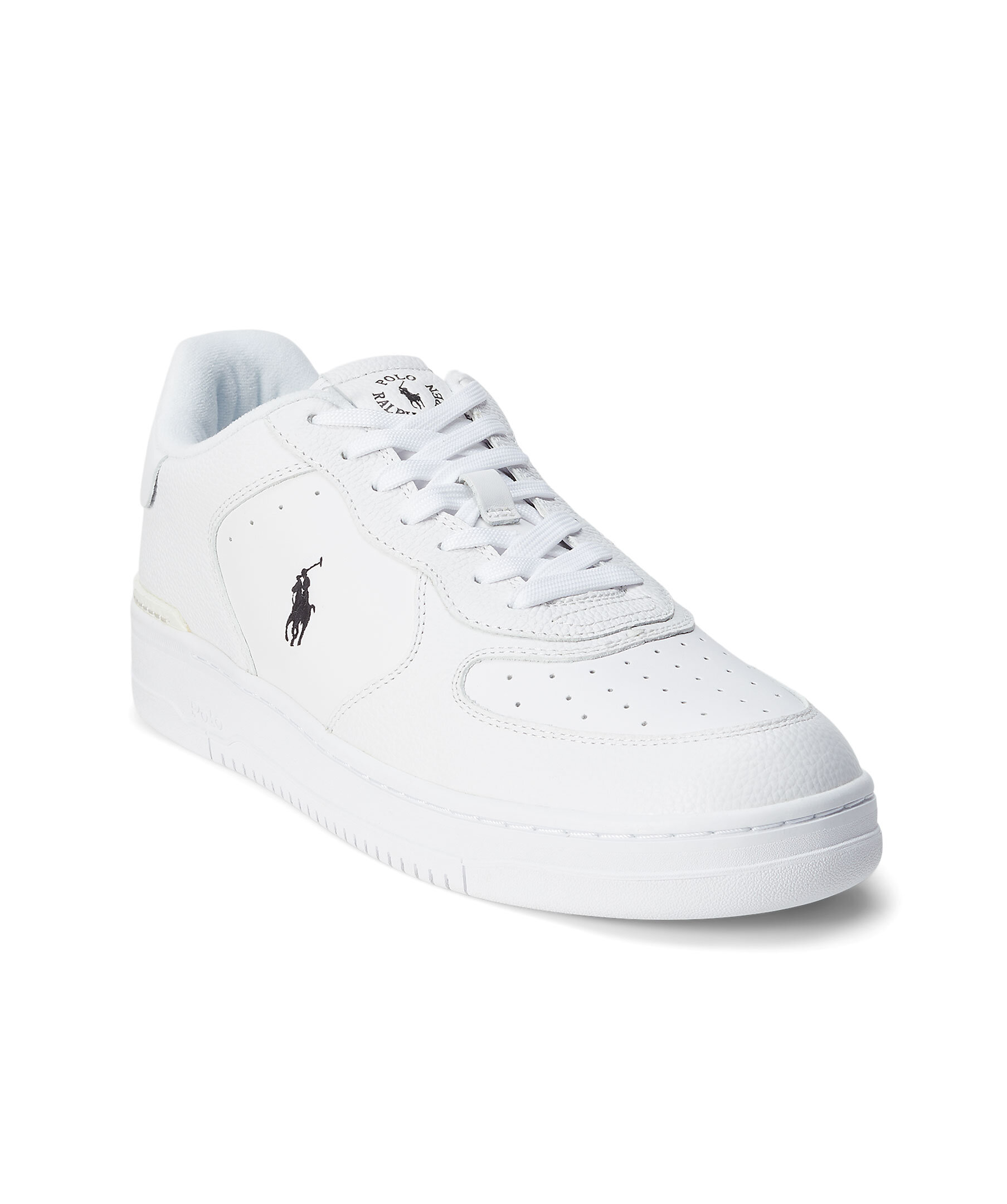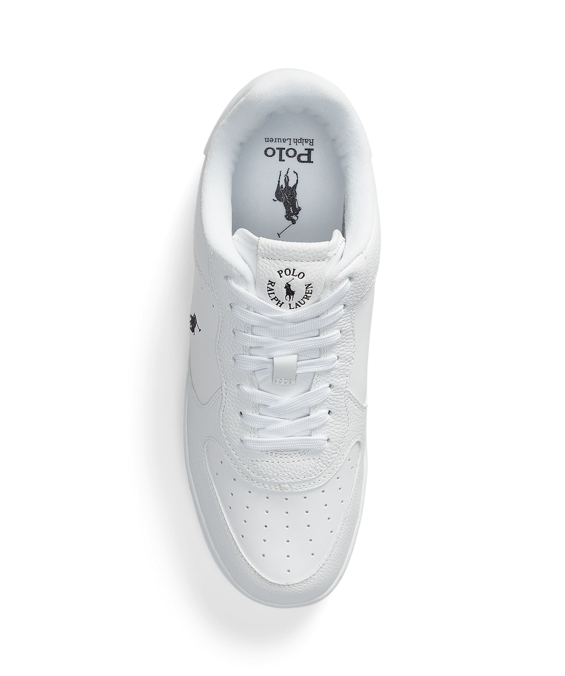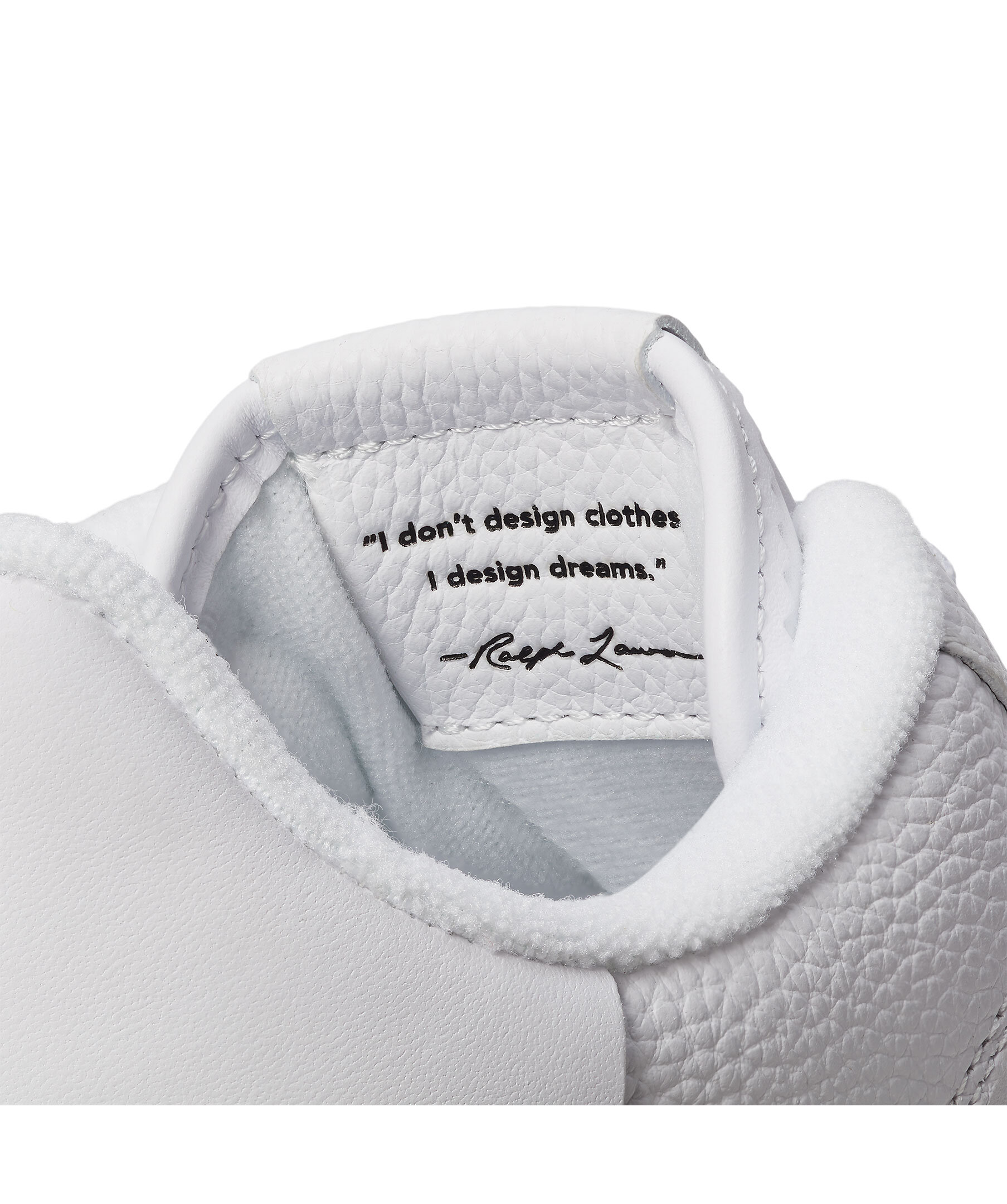 Vita klassiska sneakers från Polo Ralph Lauren. Signaturponny på utsidan. "Polo Ralph Lauren"-präglat läderlapp på plösen. "Polo" präglad på hälen. Vadderad innersula. Imiterat läder på insidan och plösen. Frotté och meshfoder. EVA mellansula. Texturerad yttersula i gummi.