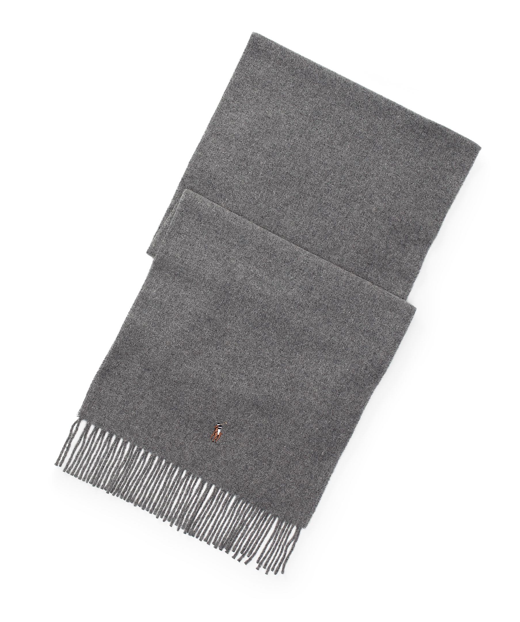 Grå halsduk från Polo Ralph Lauren. Gjord i 100% ylle med liten broderad logotyp samt dekorativa fransar i kanterna. *Fransar *100% ull