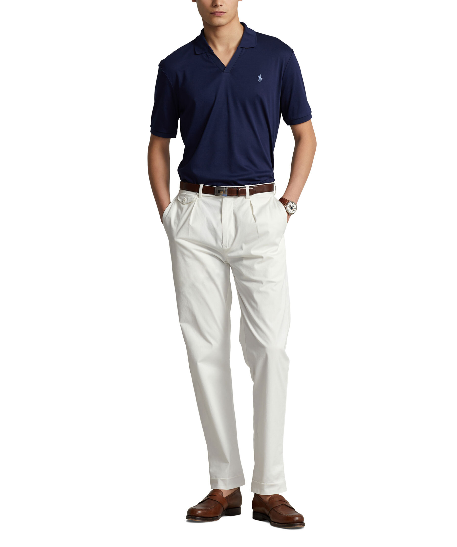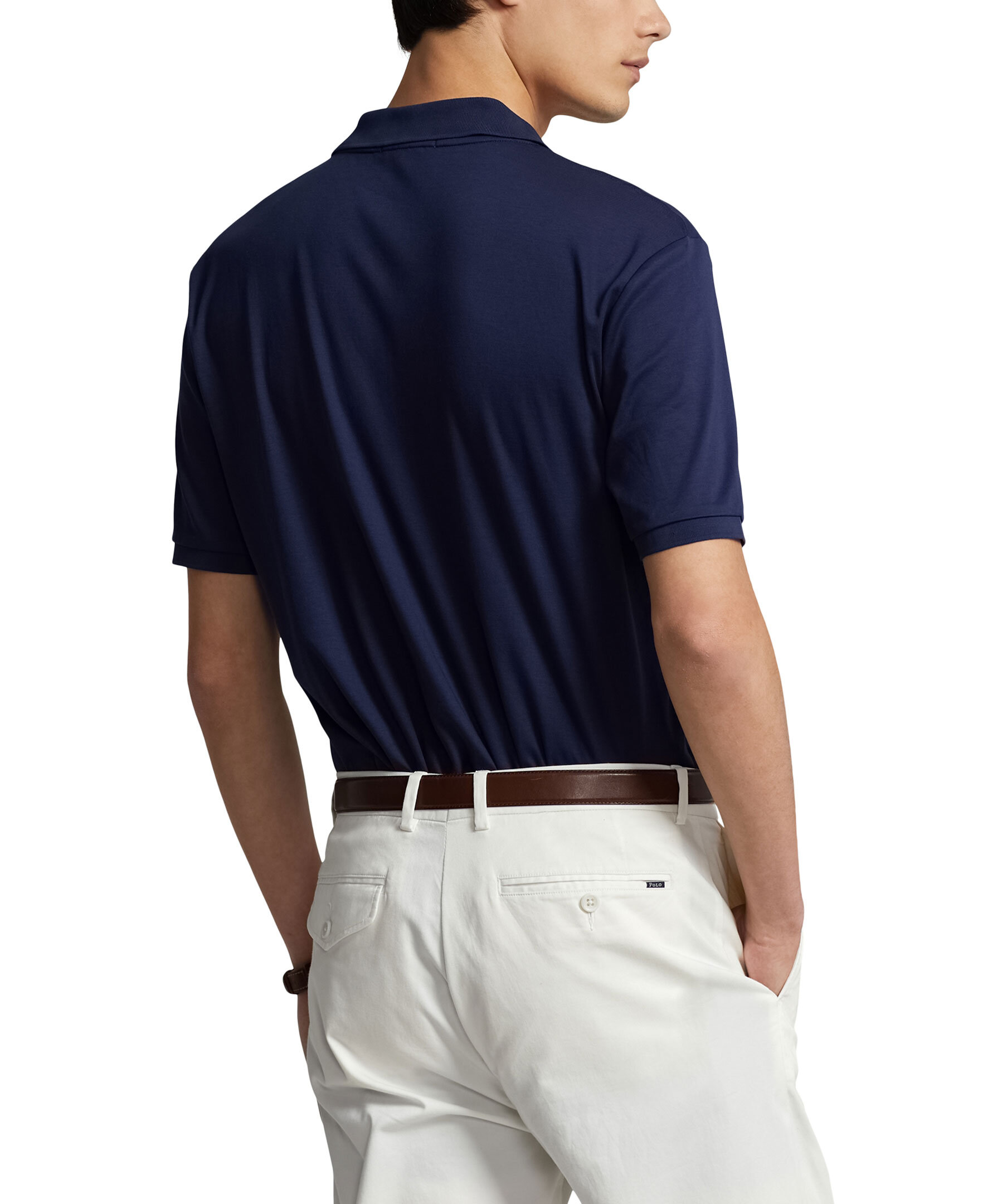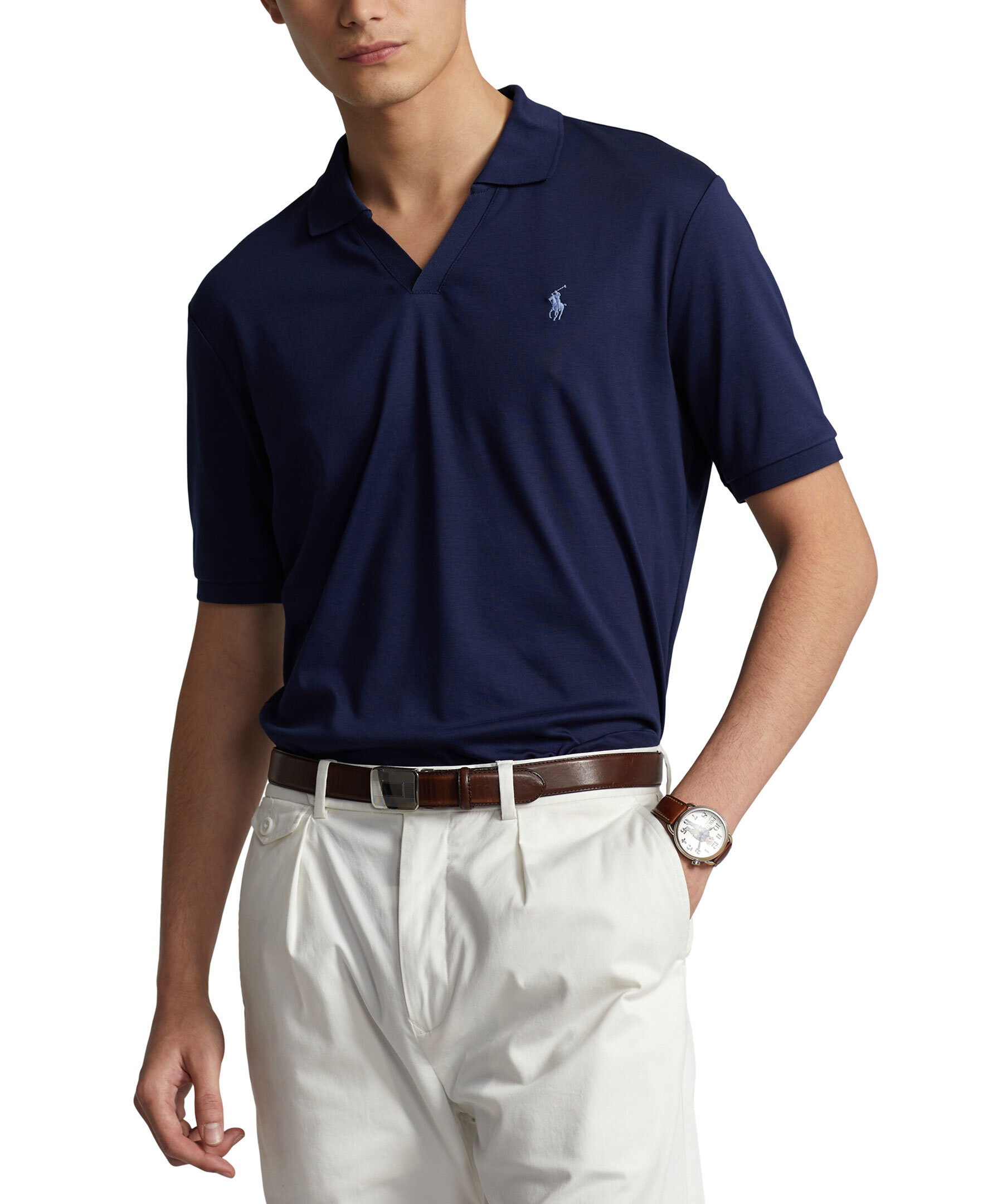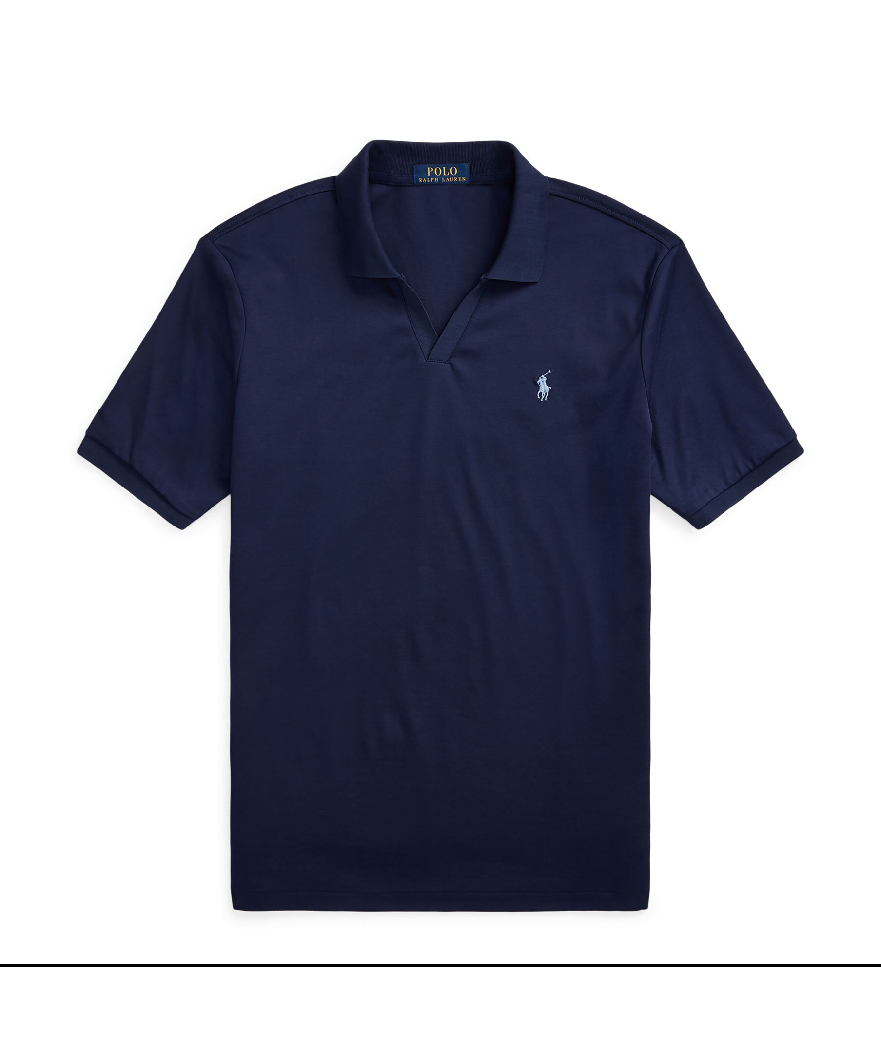 Marinblå kortärmadpiké från Polo Ralph Lauren med en öppen V-ringad krage. Tröjan är gjord i en lyxigt och mjuk bomullsmaterial. Broderad polohäst på bröstet. Custom slim fit passform. Modellen är 185cm lång och har på sig storlek M.