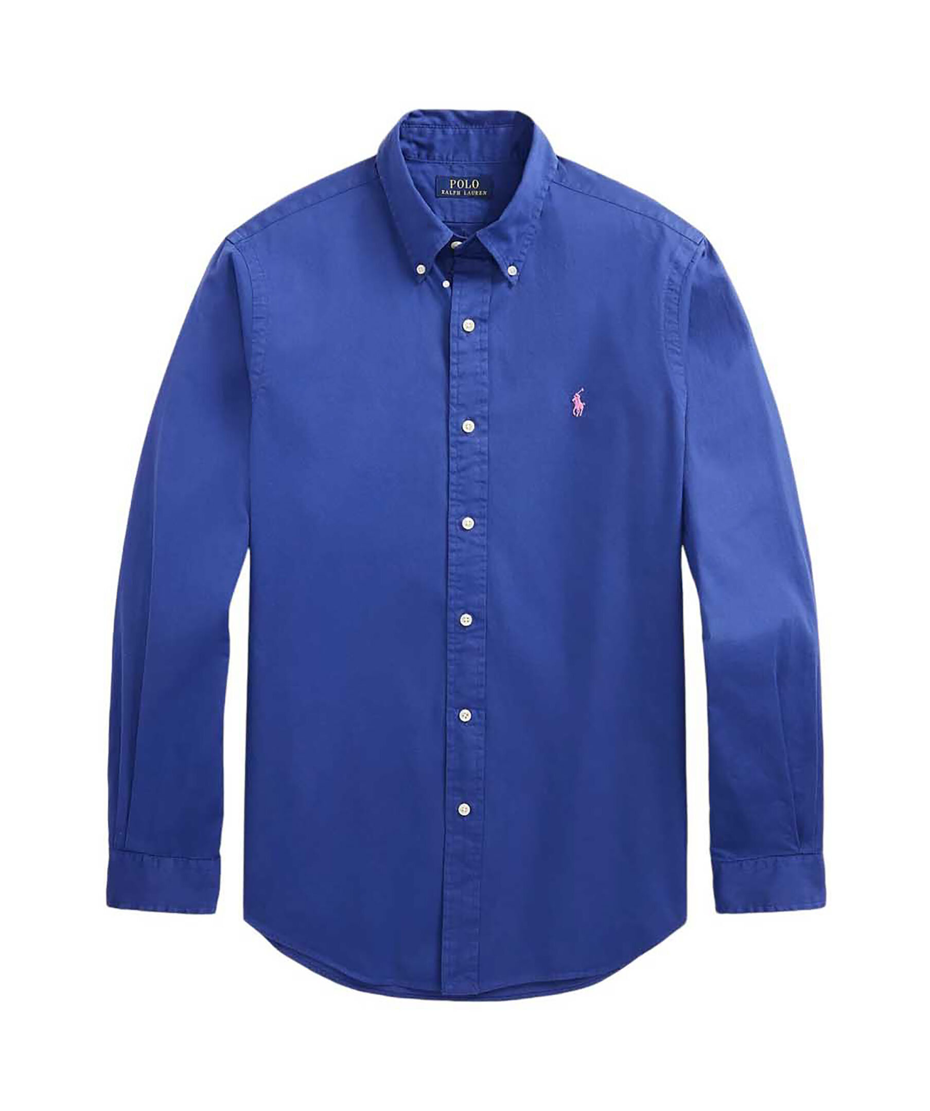 Blå skjorta från Polo Ralph Lauren. Denna skjorta i bomullstwill är plaggfärgad för att uppnå tondimension och avslutad med deras signaturbroderade ponny. Button-down krage. Långa ärmar med manschetter med knäppning. Delat bak ok med ett veck ger en bekväm passform och ett större rörelseomfång. Slim fit.