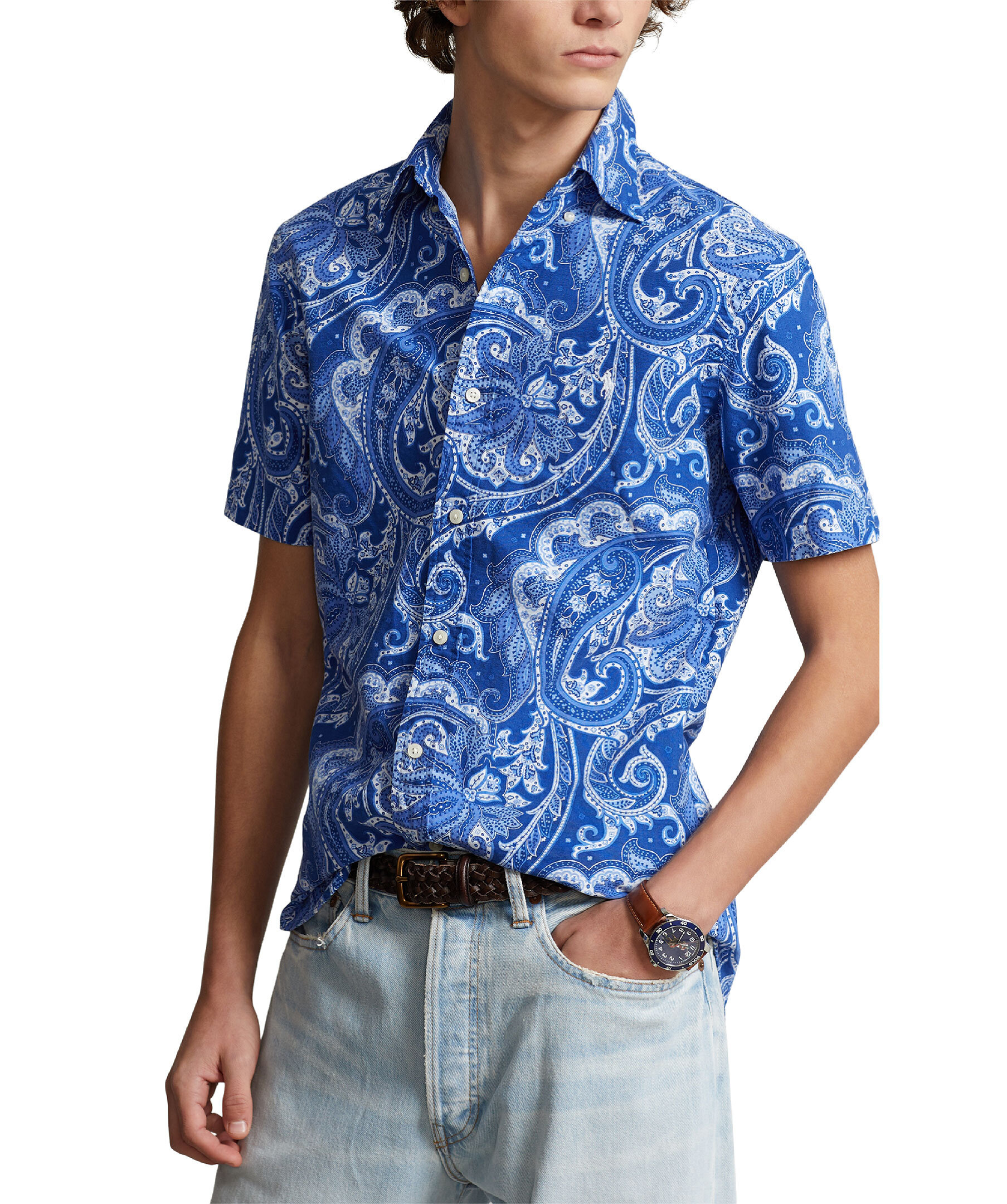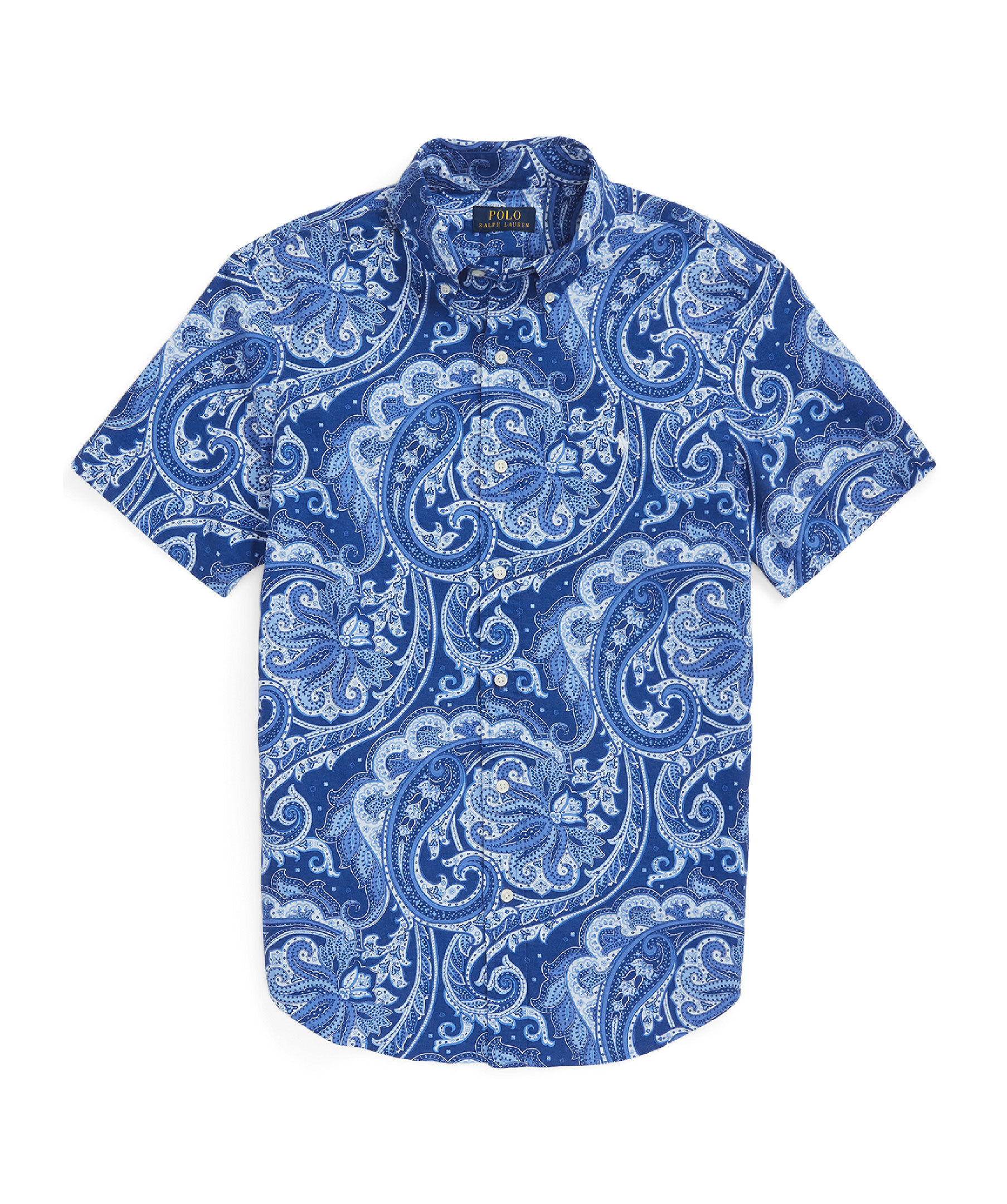 Blå, Paisley-mönstrad, kortärmad skjorta i custom fit från Polo Ralph Lauren. Button down krage och vita knappar hela vägen fram. Tillverkad i 100% bomull.