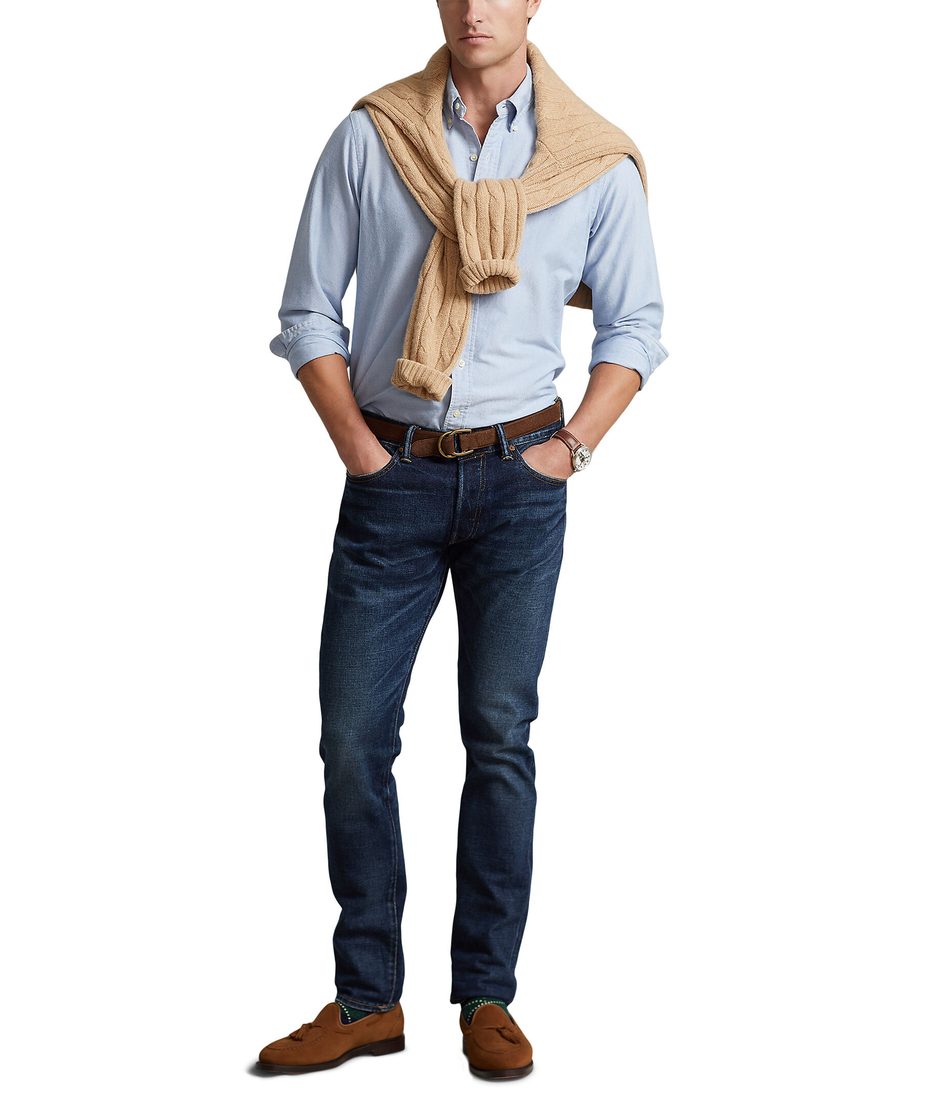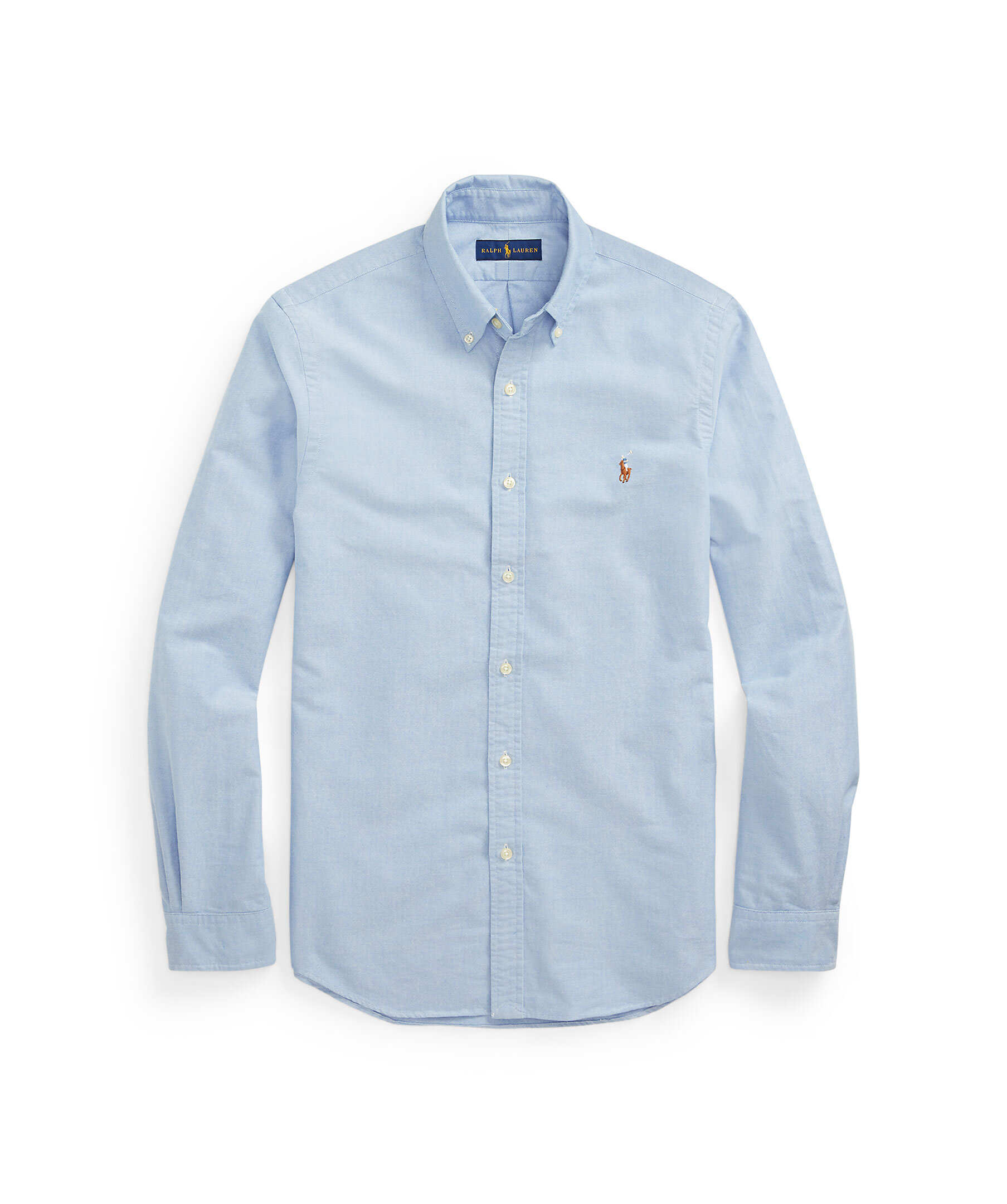 Blå oxfordskjorta från Polo Ralph Lauren i slim fit. Button-down krage. Långa ärmar med manschetter med knäppning. Delat bak ok med ett veck ger en bekväm passform och ett större rörelseomfång. Broderad signaturponny på vänster bröst. Tillverkad i bomull.