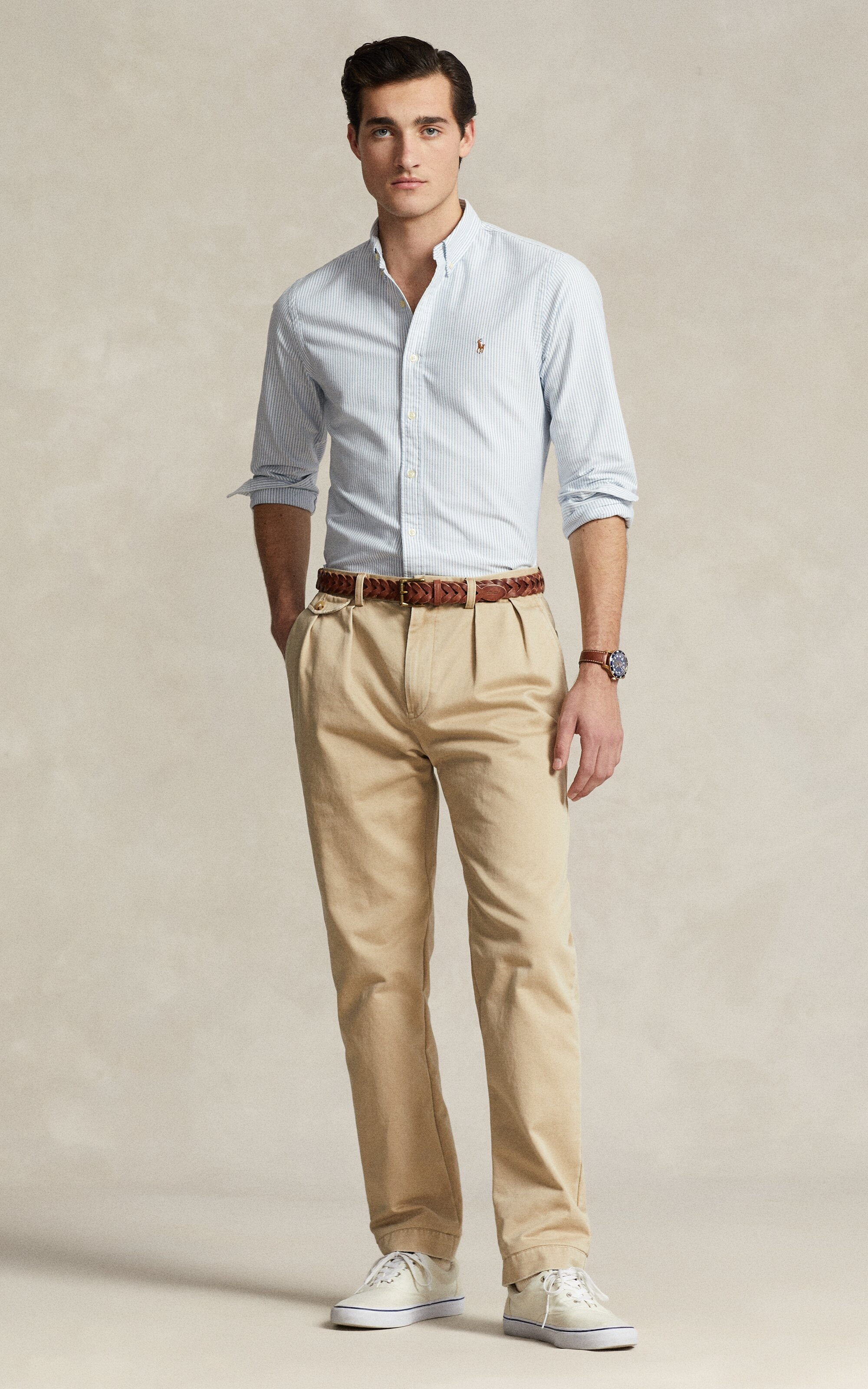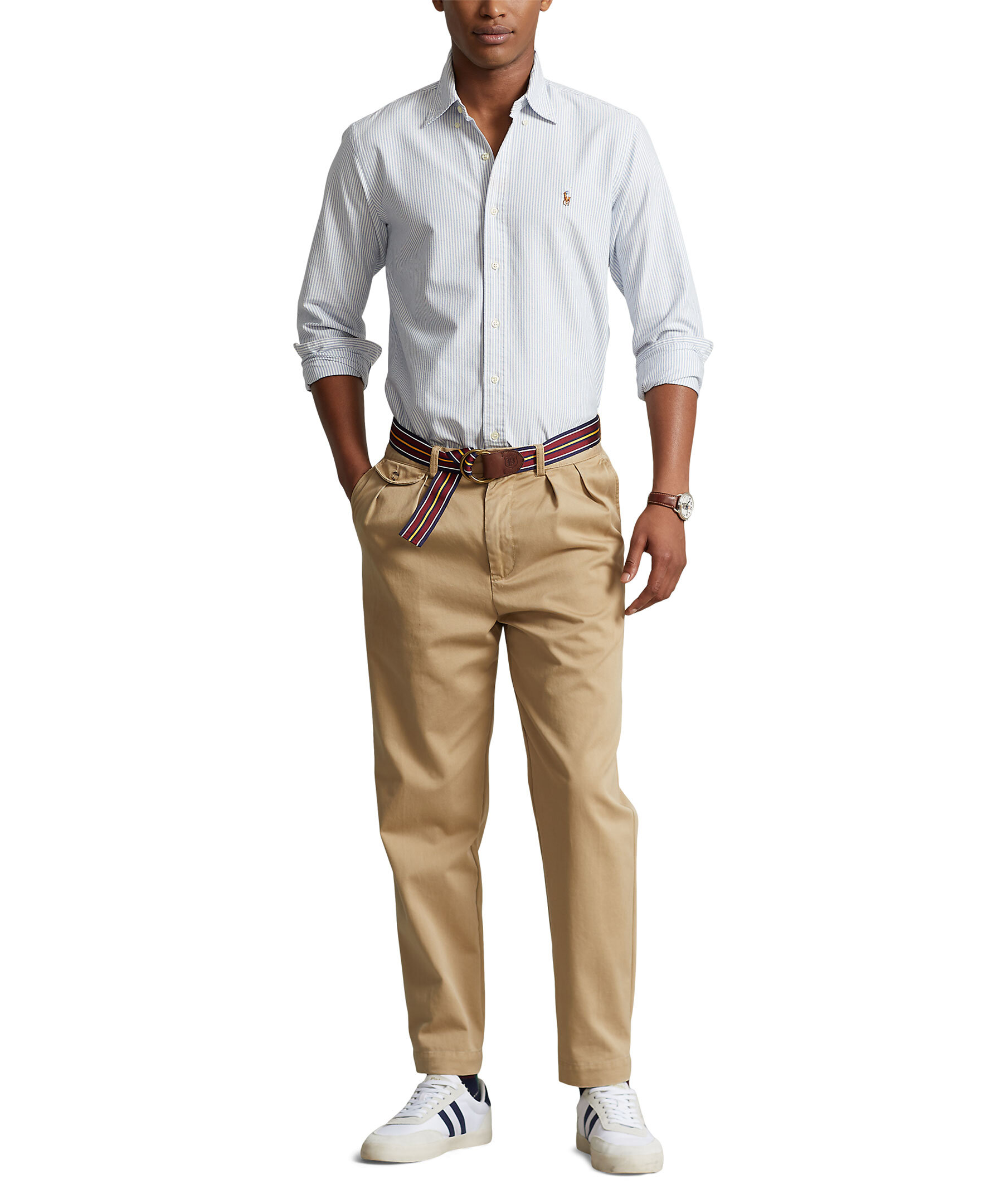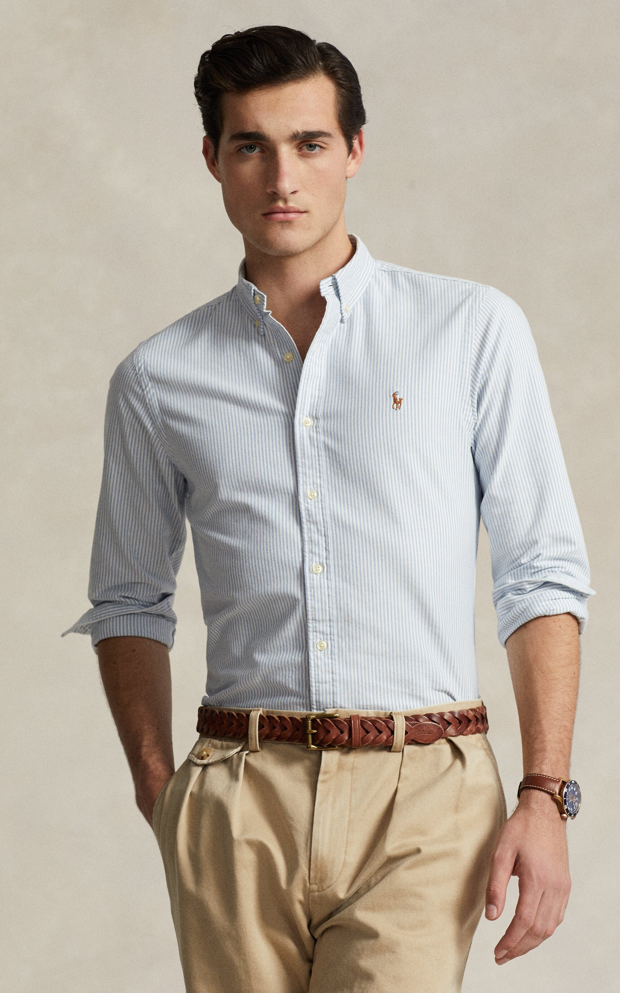 Ljusblå och vit randig oxfordskjorta från Polo Ralph Lauren i slim fit. Button-down krage. Långa ärmar med manschetter med knäppning. Delat bak ok med ett veck ger en bekväm passform och ett större rörelseomfång. Broderad signaturponny på vänster bröst. Tillverkad i bomull.