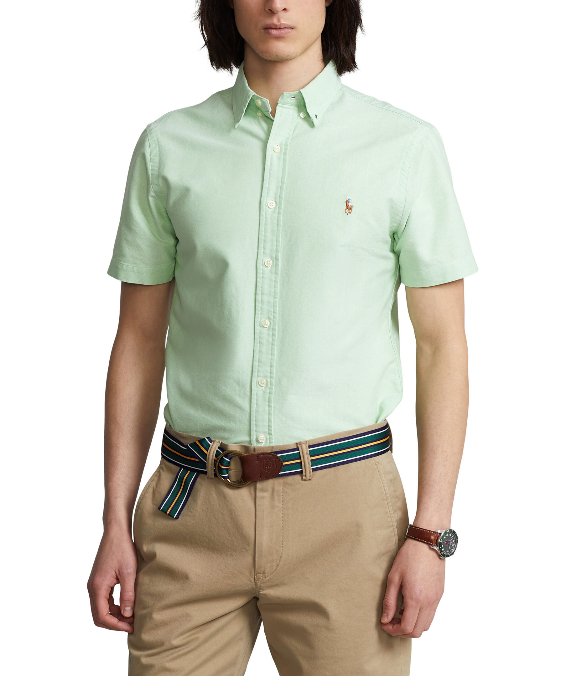 Ljusgrön kortärmad oxfordskjorta i slim fit modell från Polo Ralph Lauren. Tillverkad i 100% bomull. Skjortan har den klassiska polohästen broderad på bröstet och en button down krage.