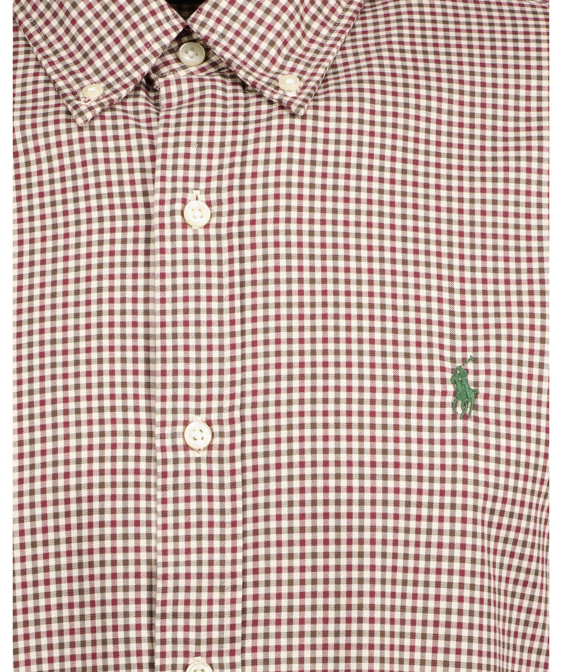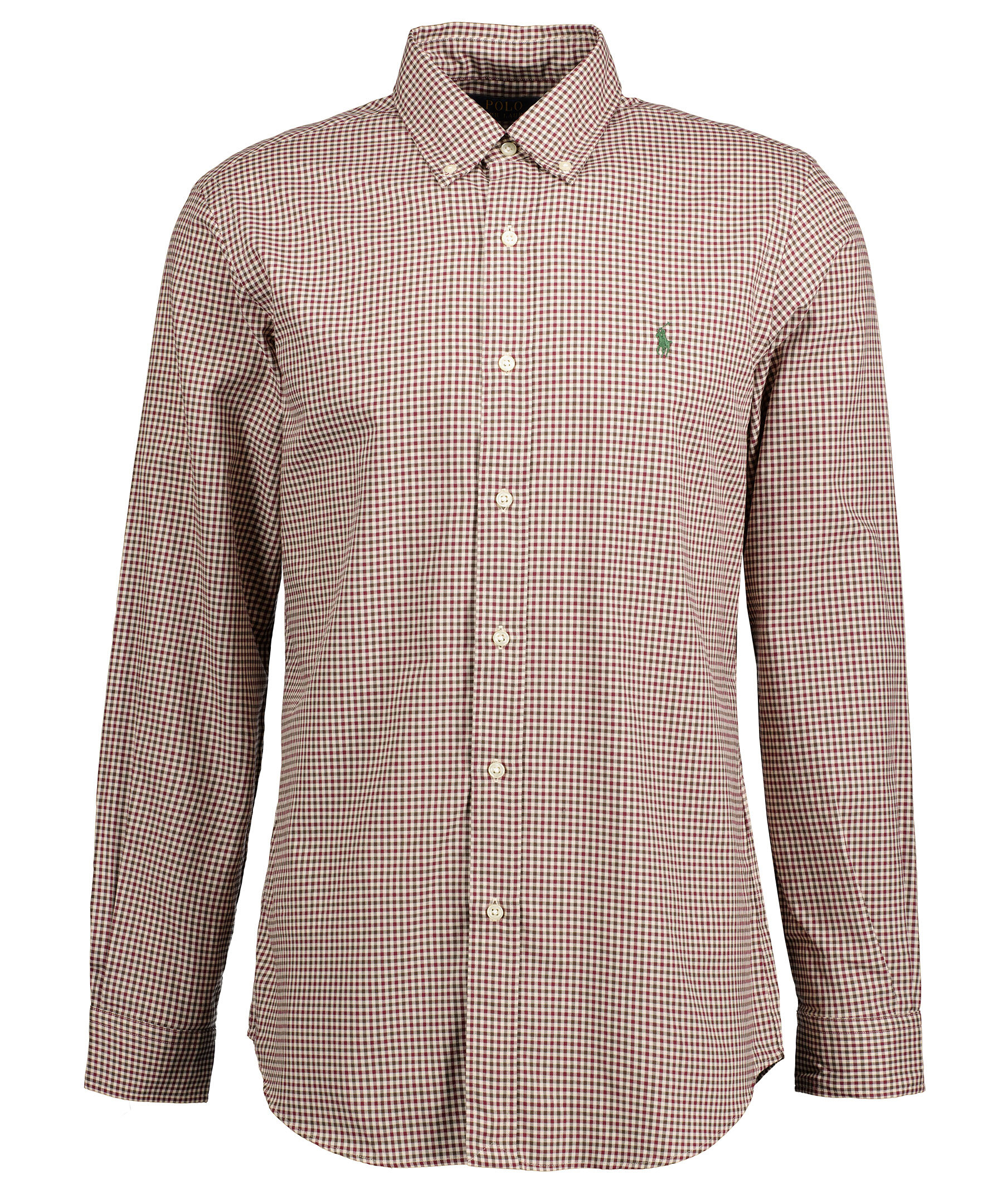 Mörkröd, brun och vit skjorta från Polo Ralph Lauren. Button-down krage. Broderad logotyp på vänster bröst. Enkla manschetter. Tillverkad i 100% Bomull.