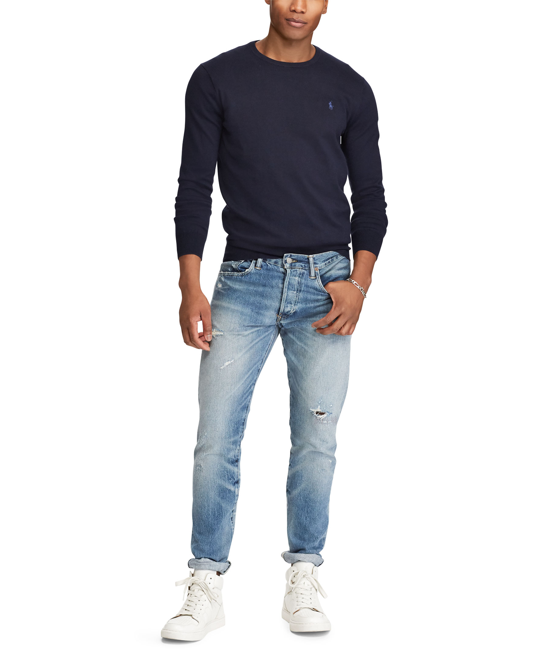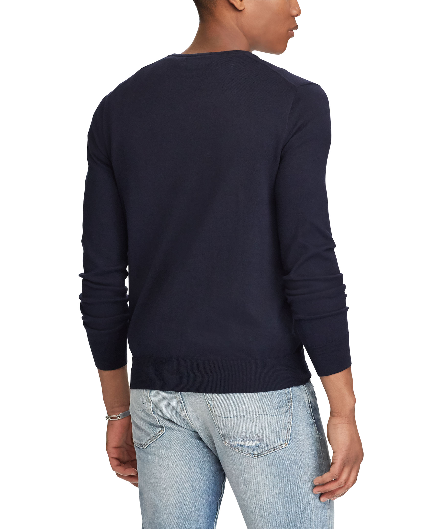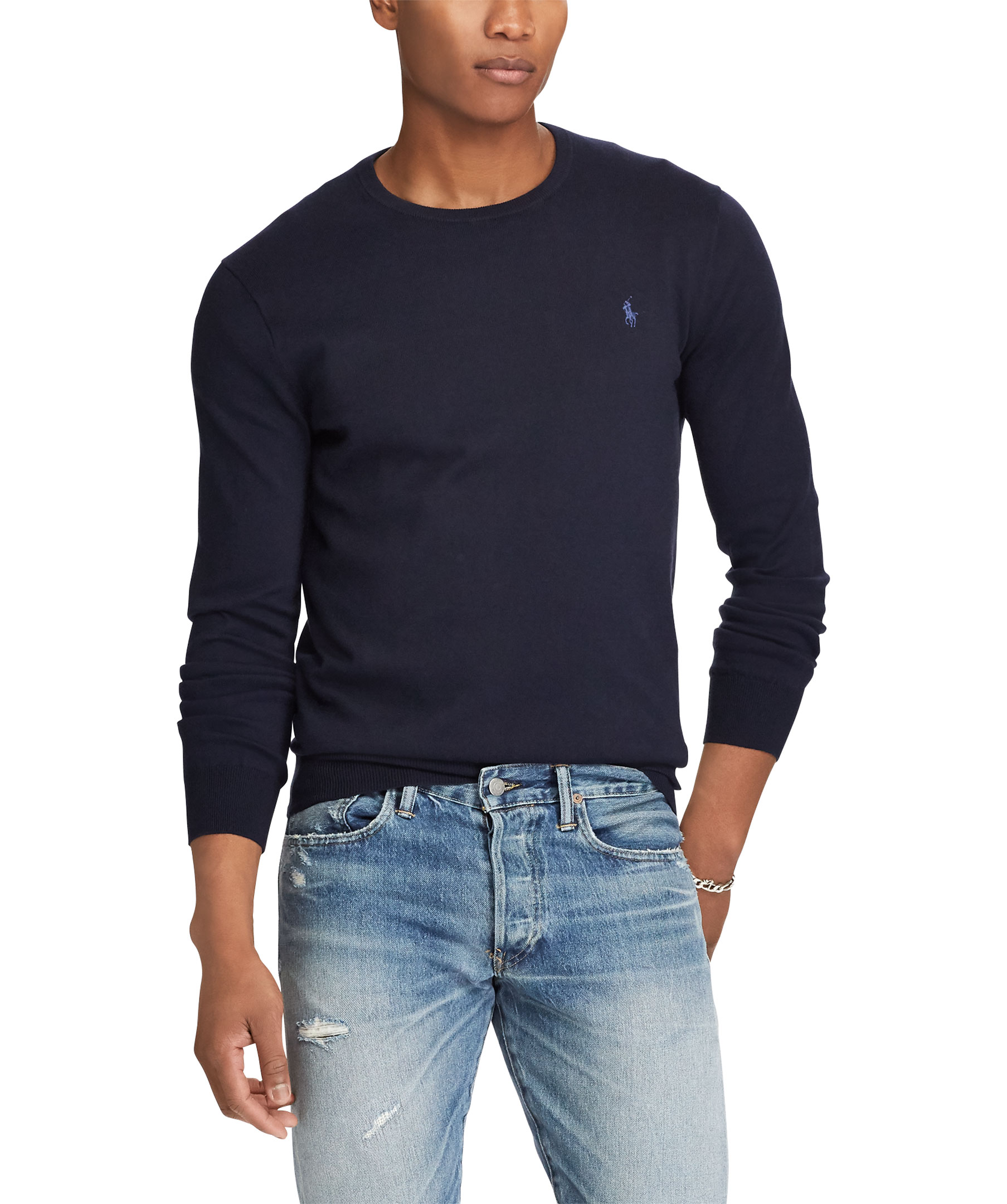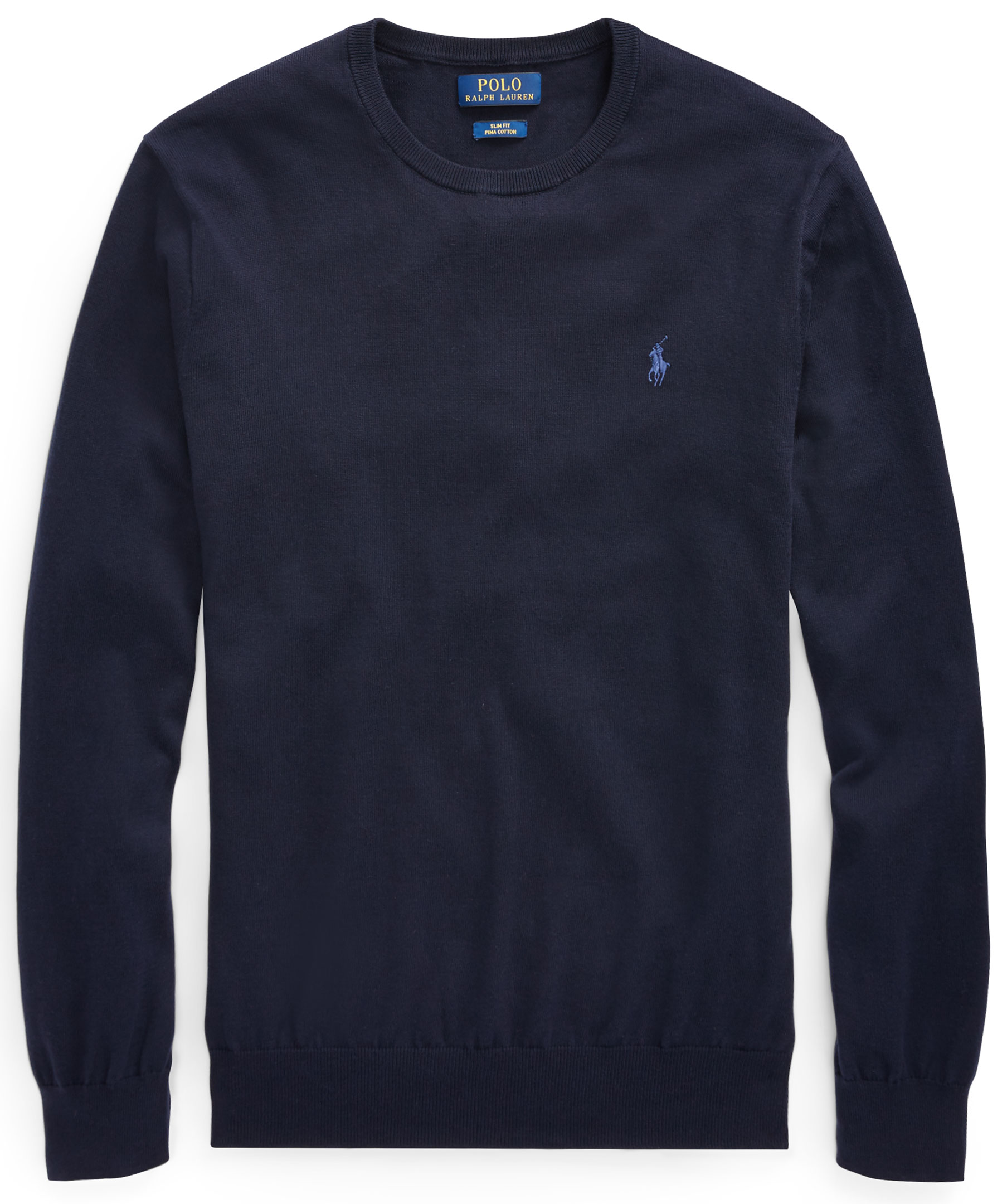 Marinblå stickad tröja från Polo Ralph Lauren. Tillverkad i bomull.