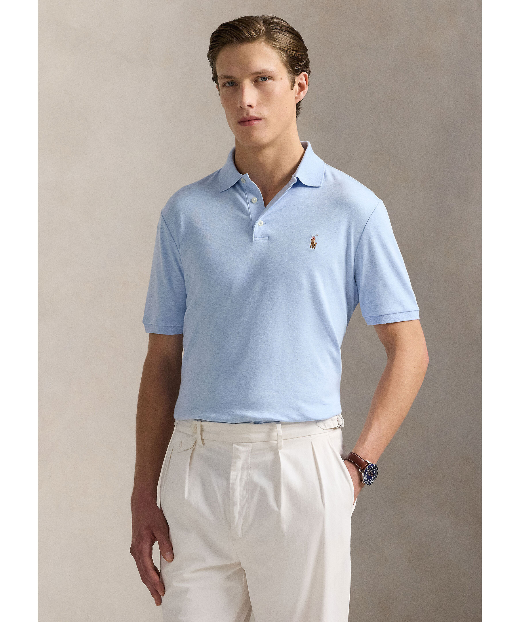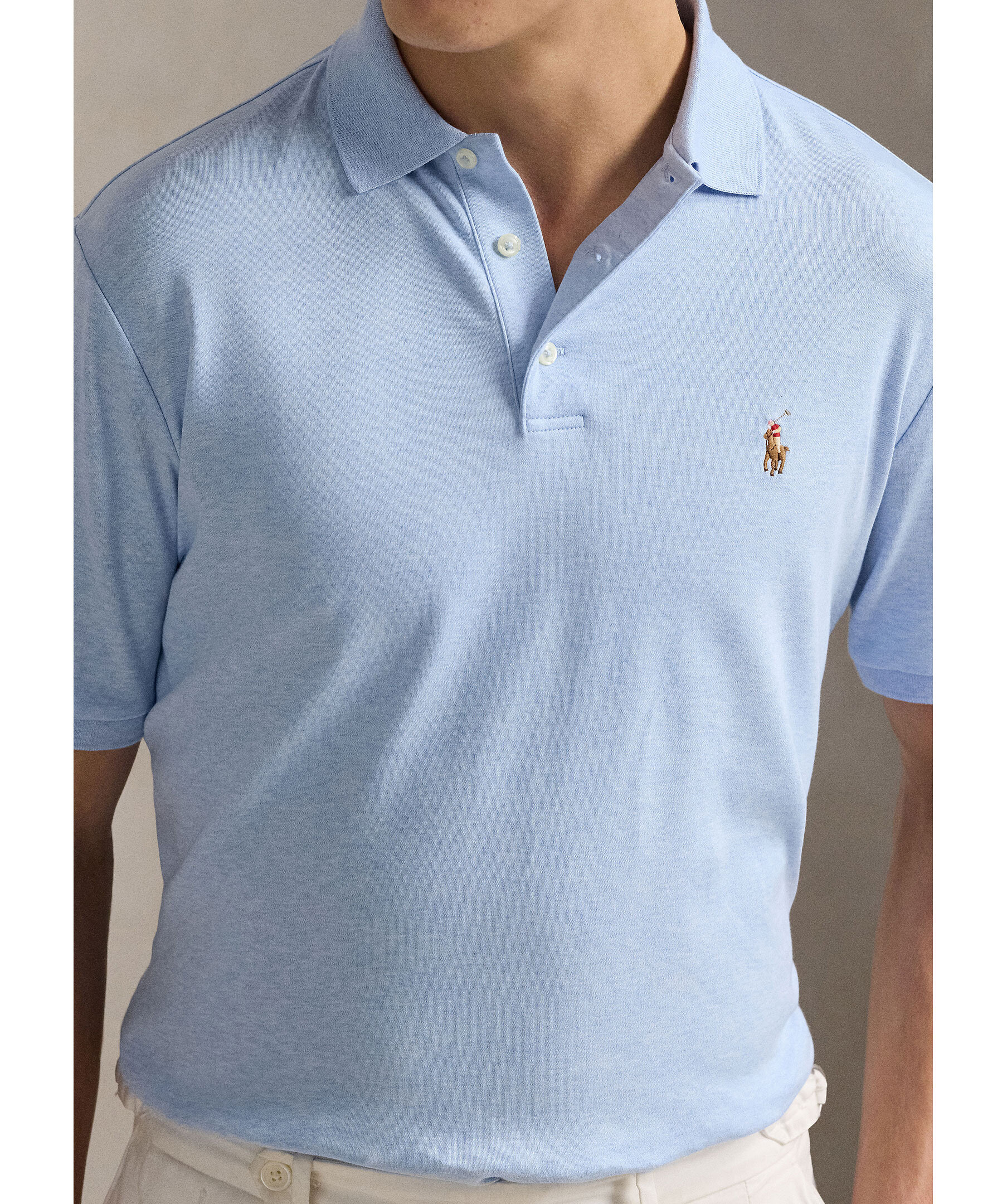 Ljusblå pikétröja från Polo Ralph Lauren. Broderad logga på bröstet, tre knappar framtill. Tillverkad av bomull.