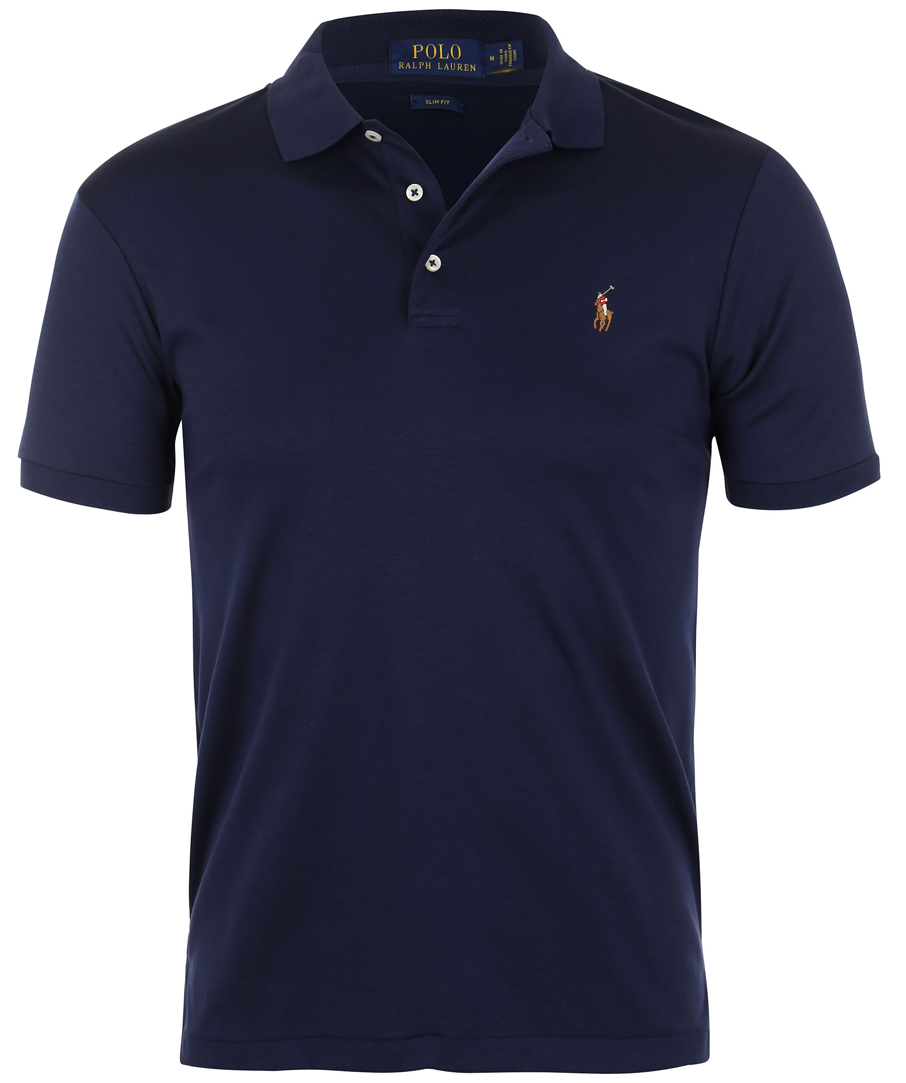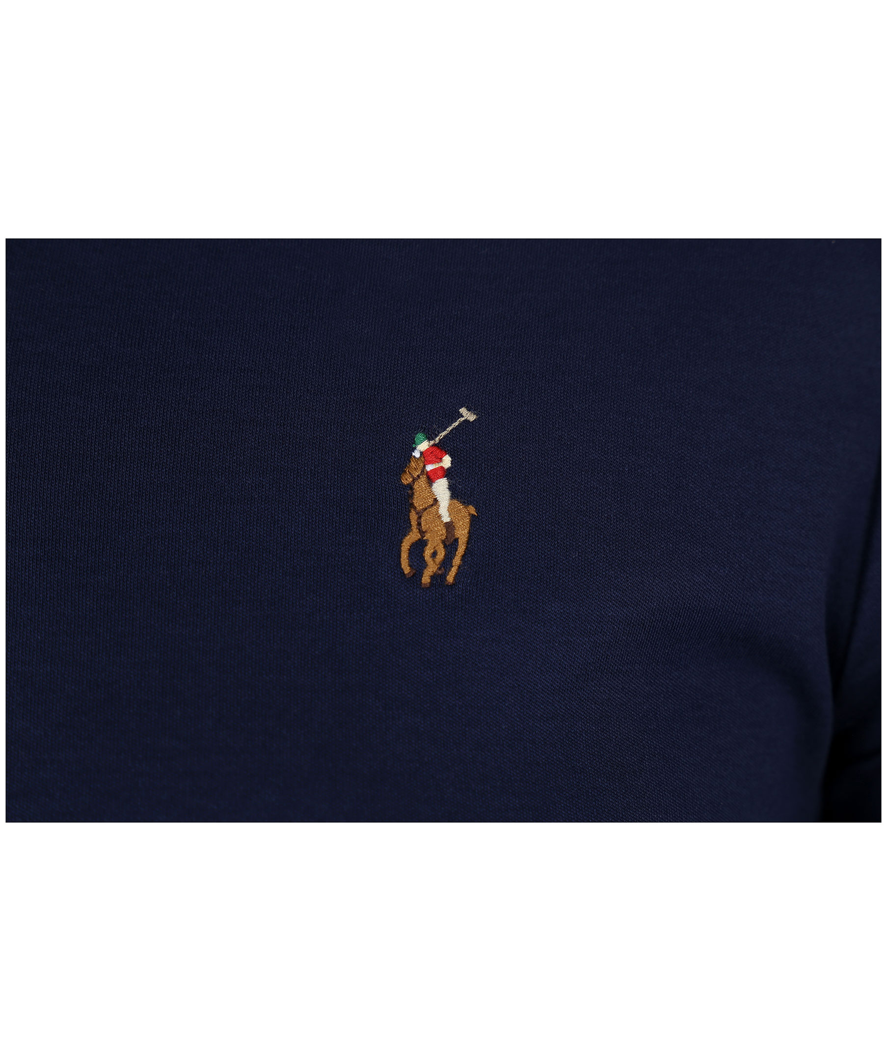 Marinblå kortärmad piké från Polo Ralph Lauren. Broderad logga på vänster bröst. Tillverkad i 100% mjuk bomull. Små slitsar på vardera sida.