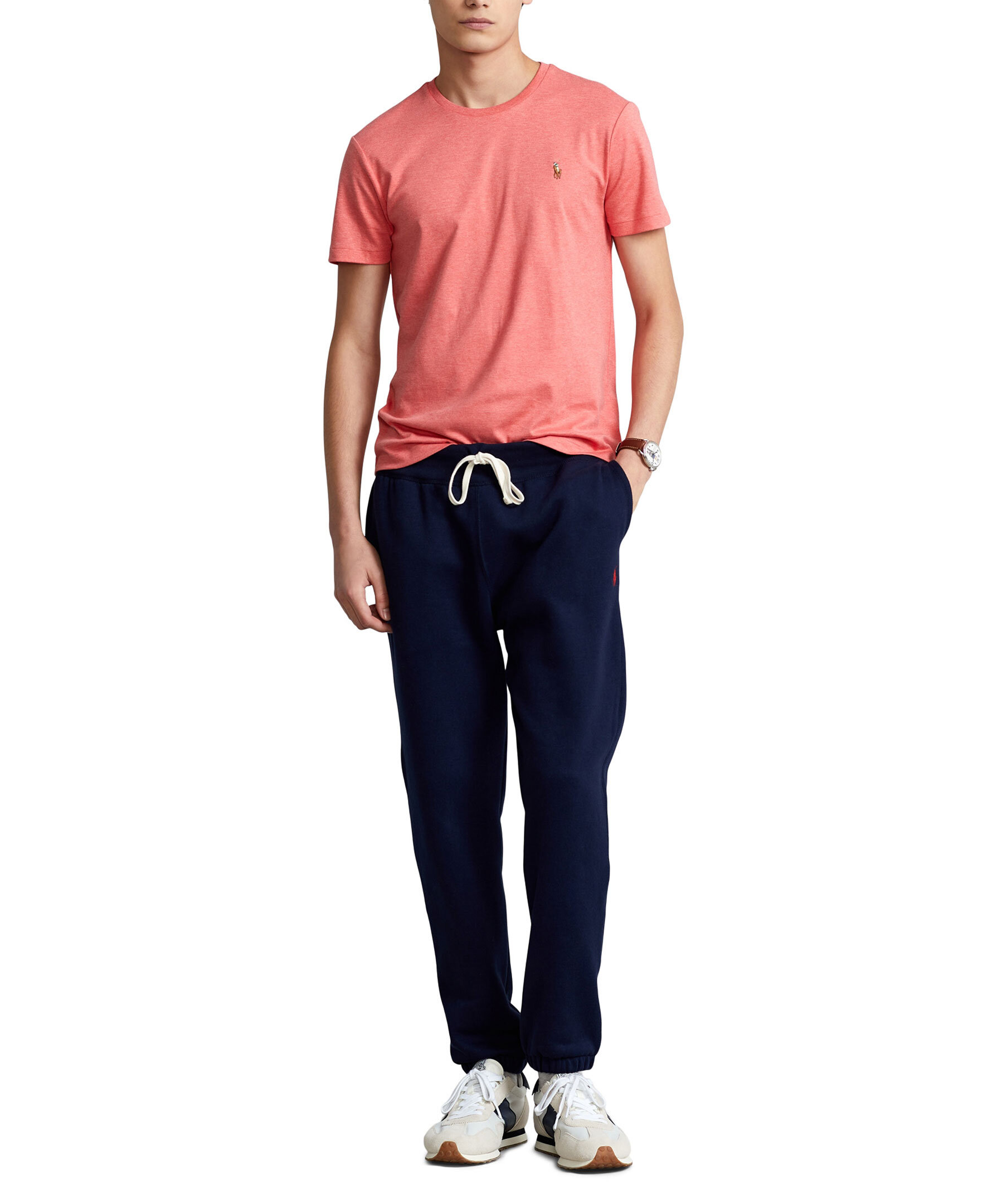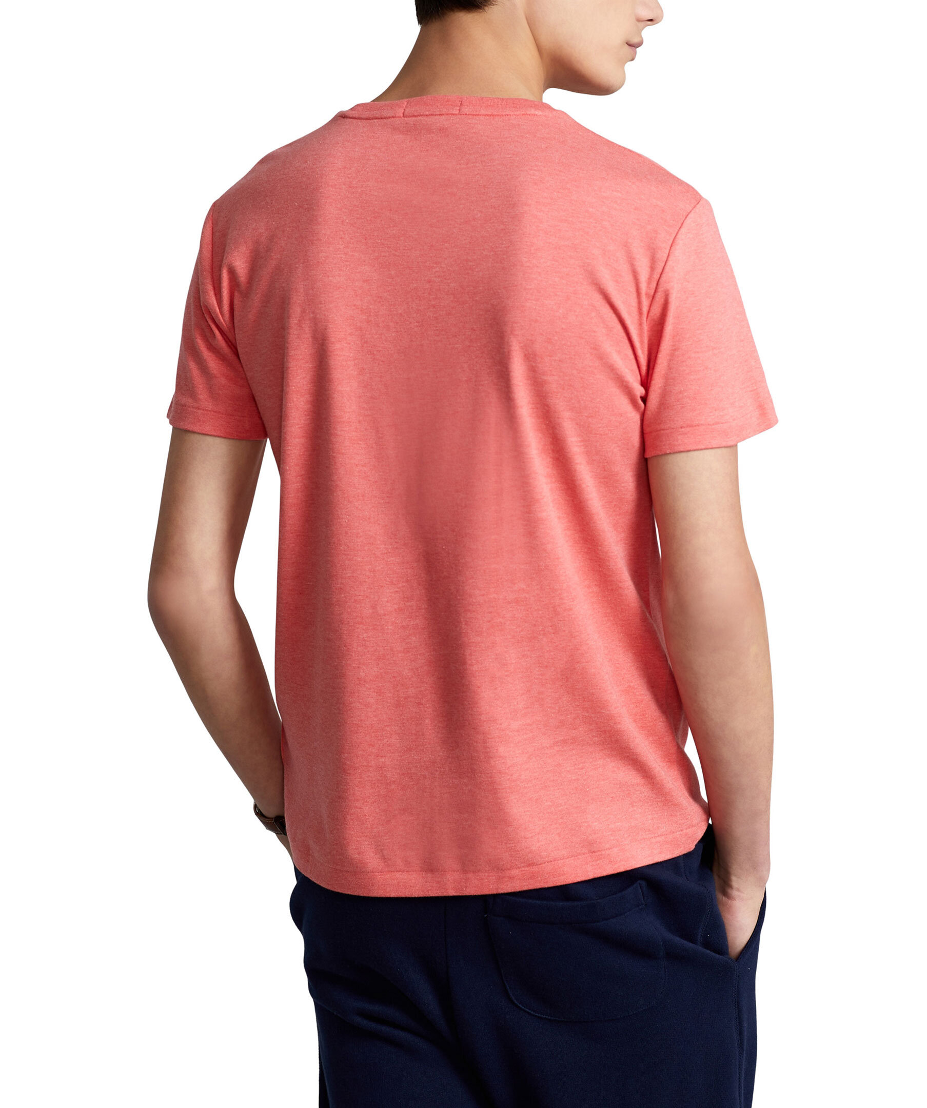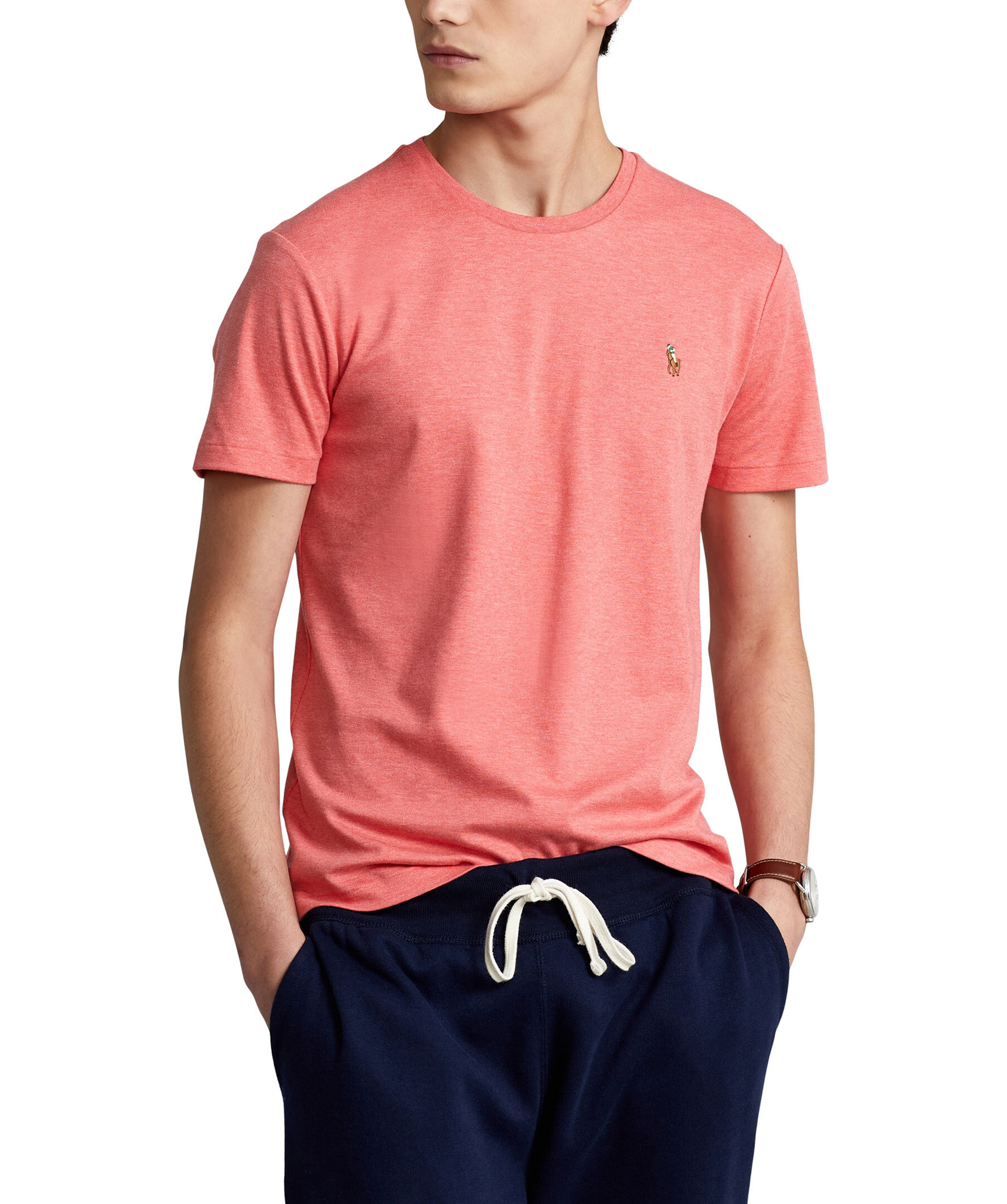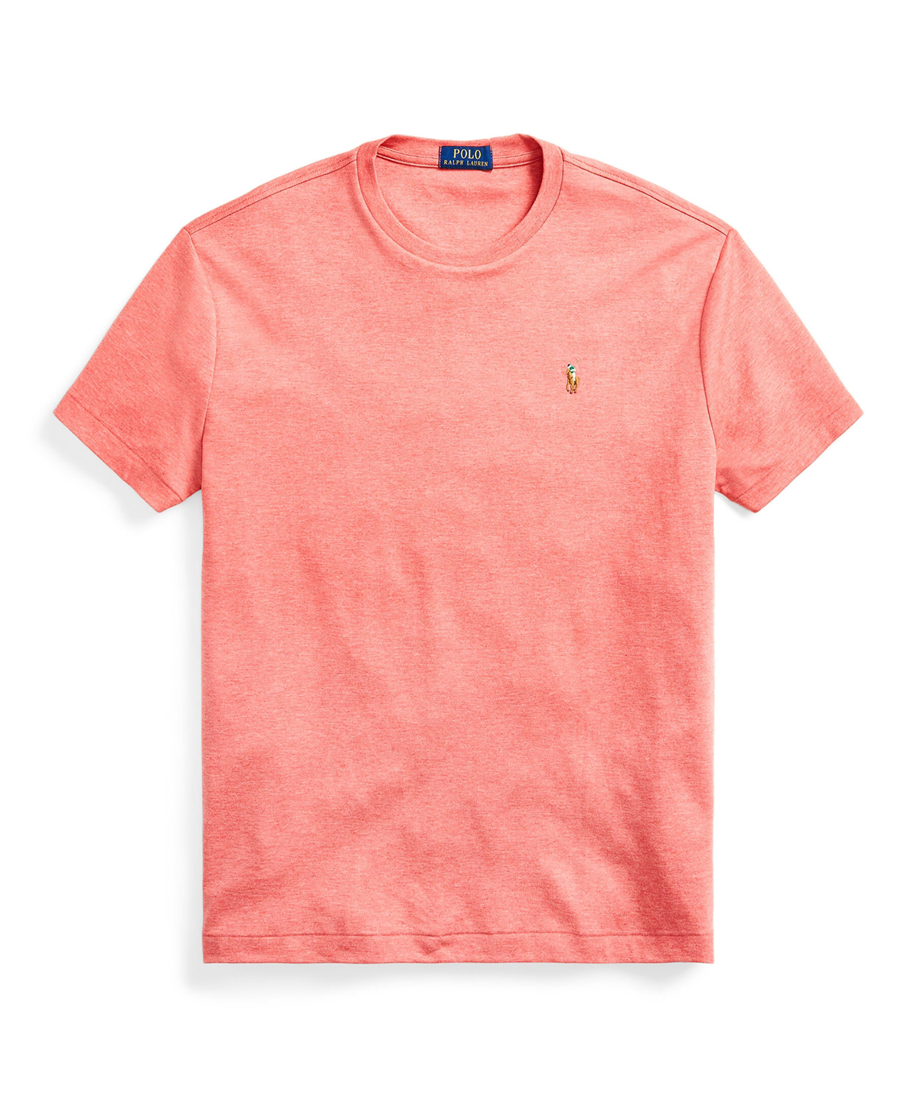 Korallfärgad t-shirt i custom slim fit modell från Polo Ralph Lauren. Broderar logotyp på bröstet och rundad hals.