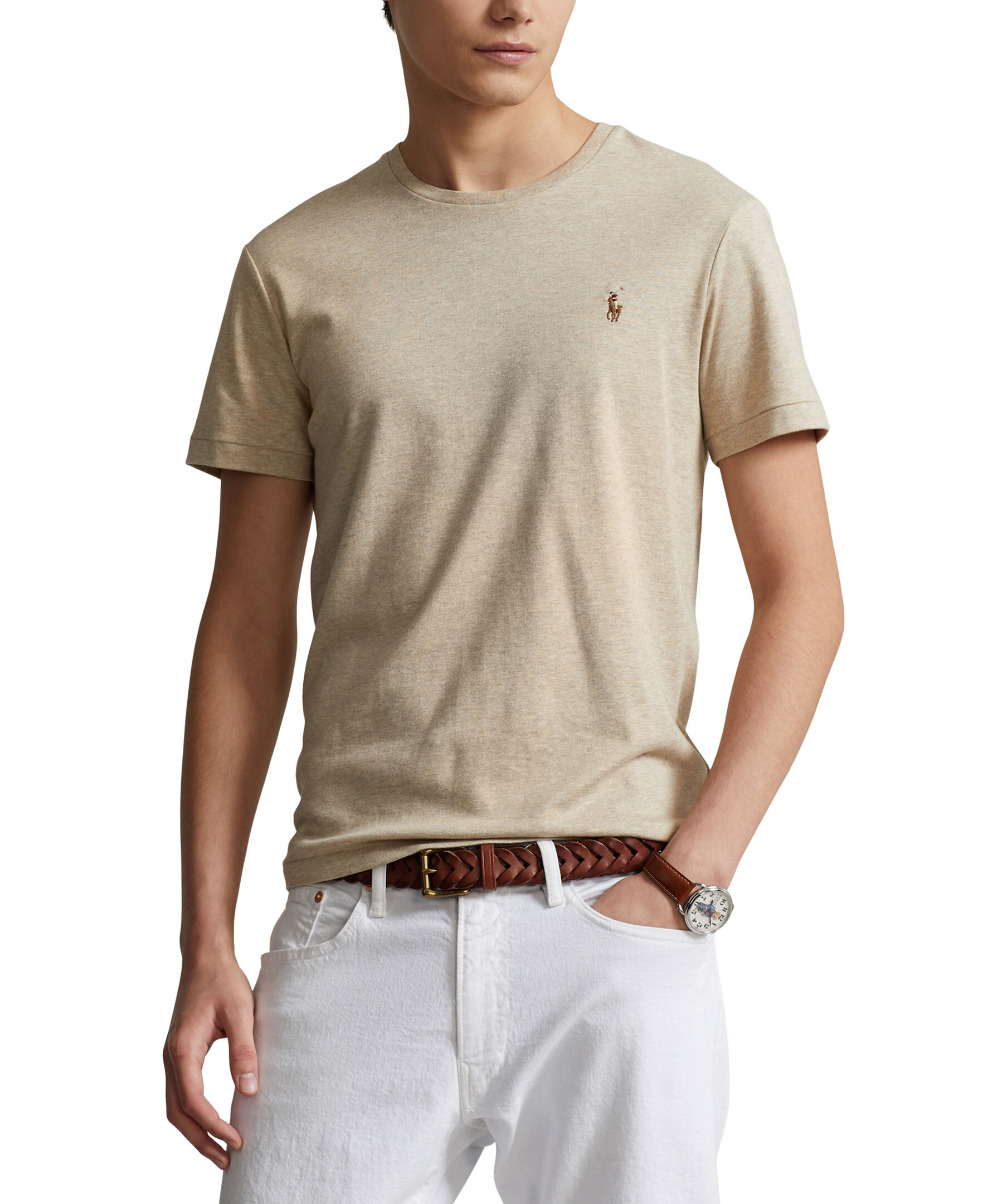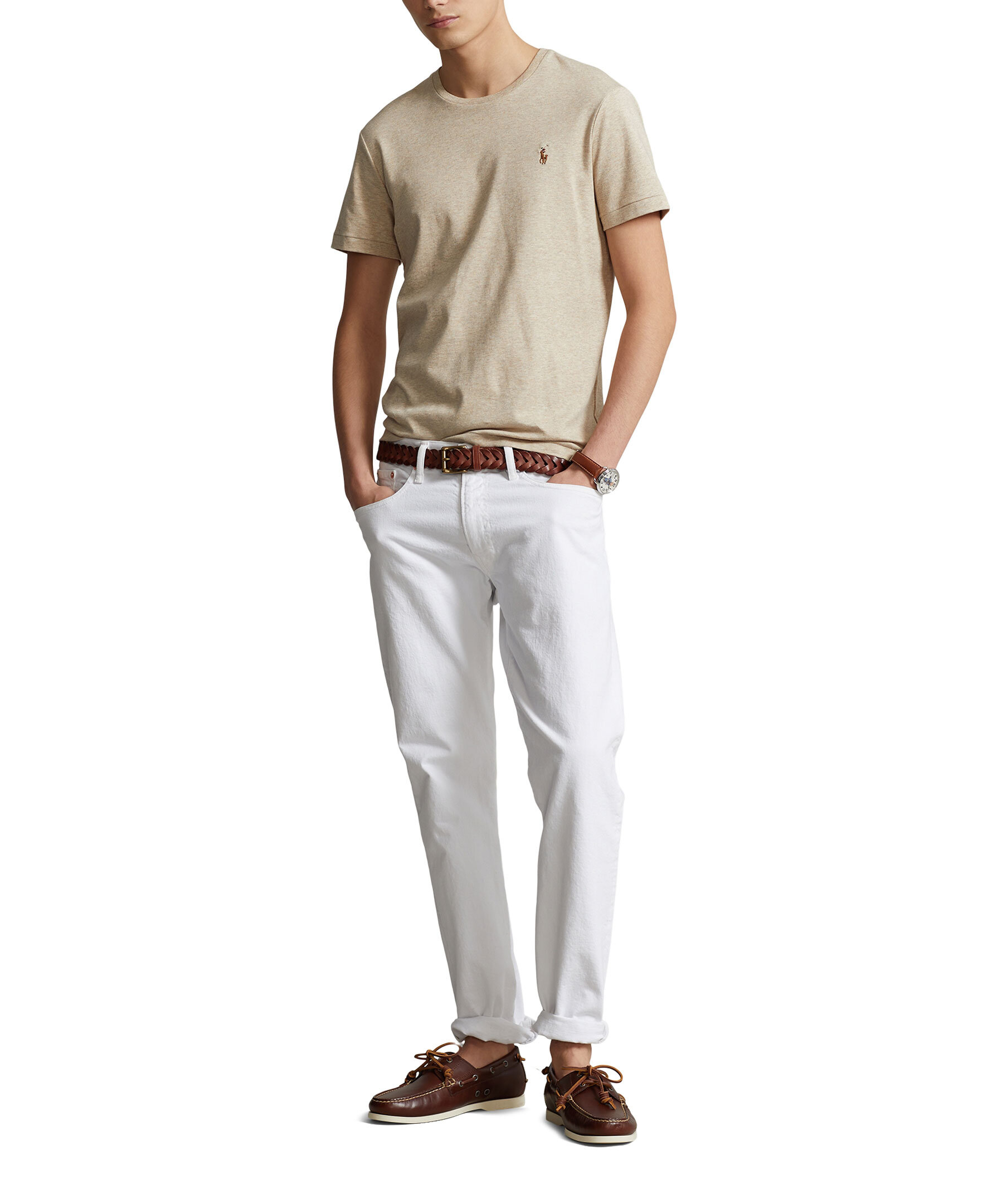Beigemelerad t-shirt från Polo Ralph Lauren. Rundad halsringning, korta ärmar samt en broderad logga på vänster bröst. Gjord i 100% Bomull. Custom slim fit passform.