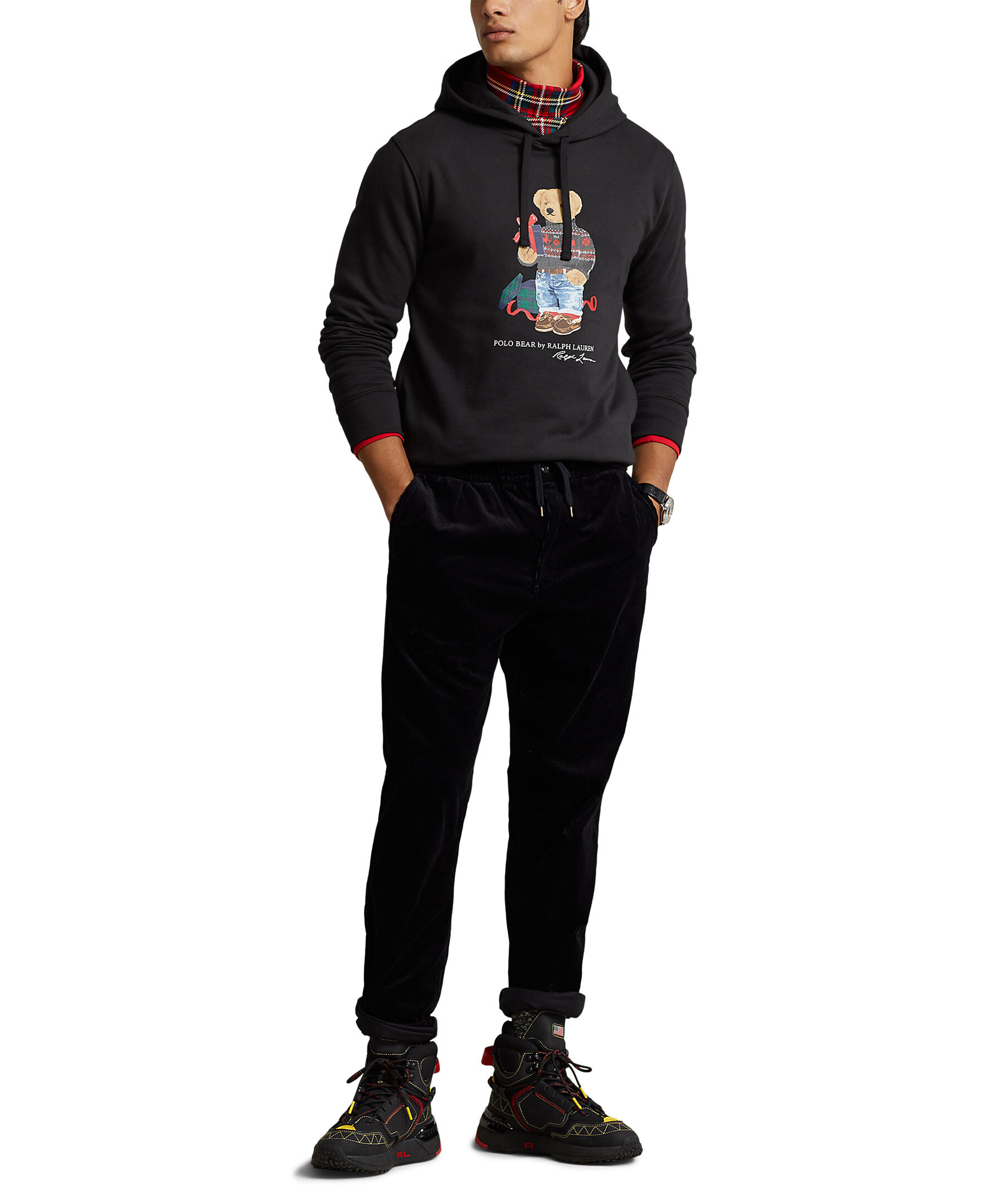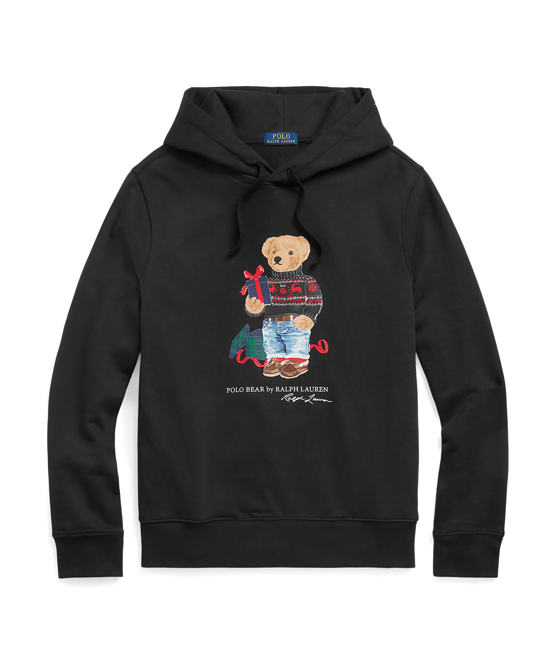 Svart hoodie med huva från Polo Ralph Lauren. Tillverkad av en bomullsblandning. Tröjan har deras Polo Bear motiv tryckt på framsidan. Snörning vid huvan. Ribbstickad ärm- och plaggslutt. Normal passform.