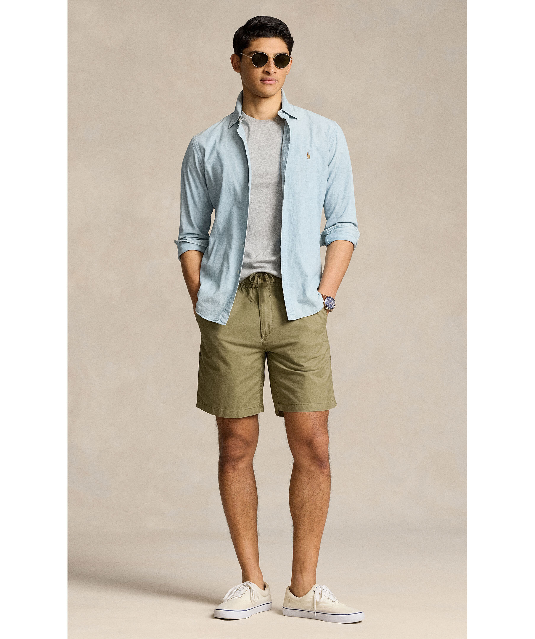 Gröna prepster shorts från Polo Ralph Lauren. Klassisk passform. Elastiskt dragsko i midjan. Blixtlåsgylf med knäppning. Två vinklade framfickor. Två bakfickor med knappar. Signaturbroderad ponny ovanför ena bakfickan. Tillverkade i oxfordtyg av bomull.