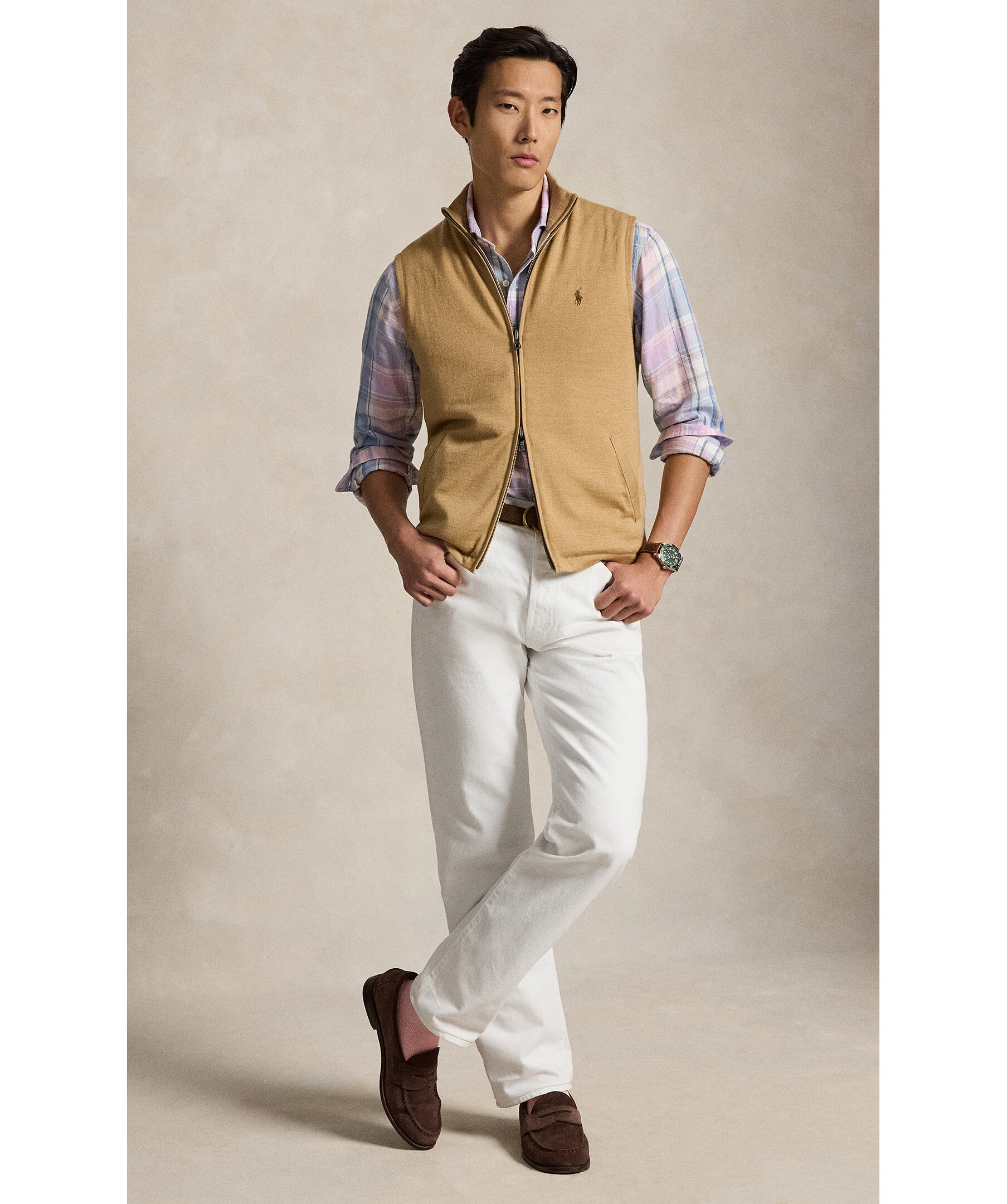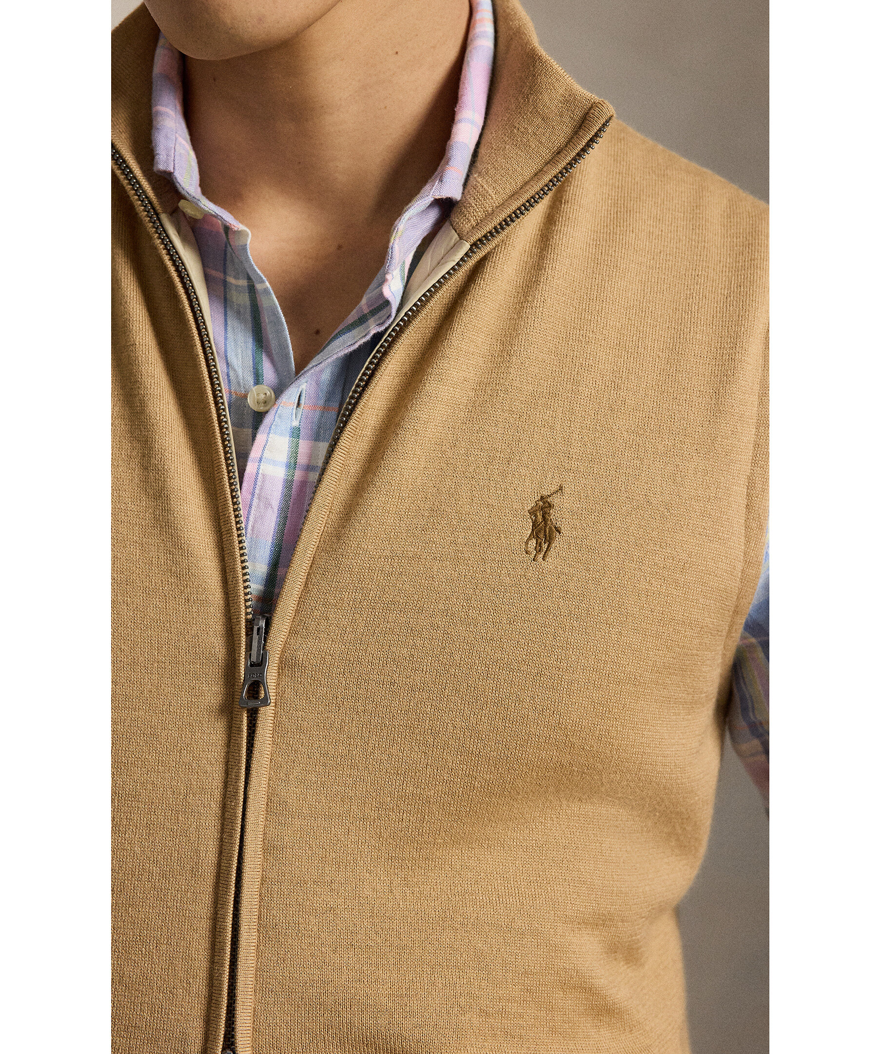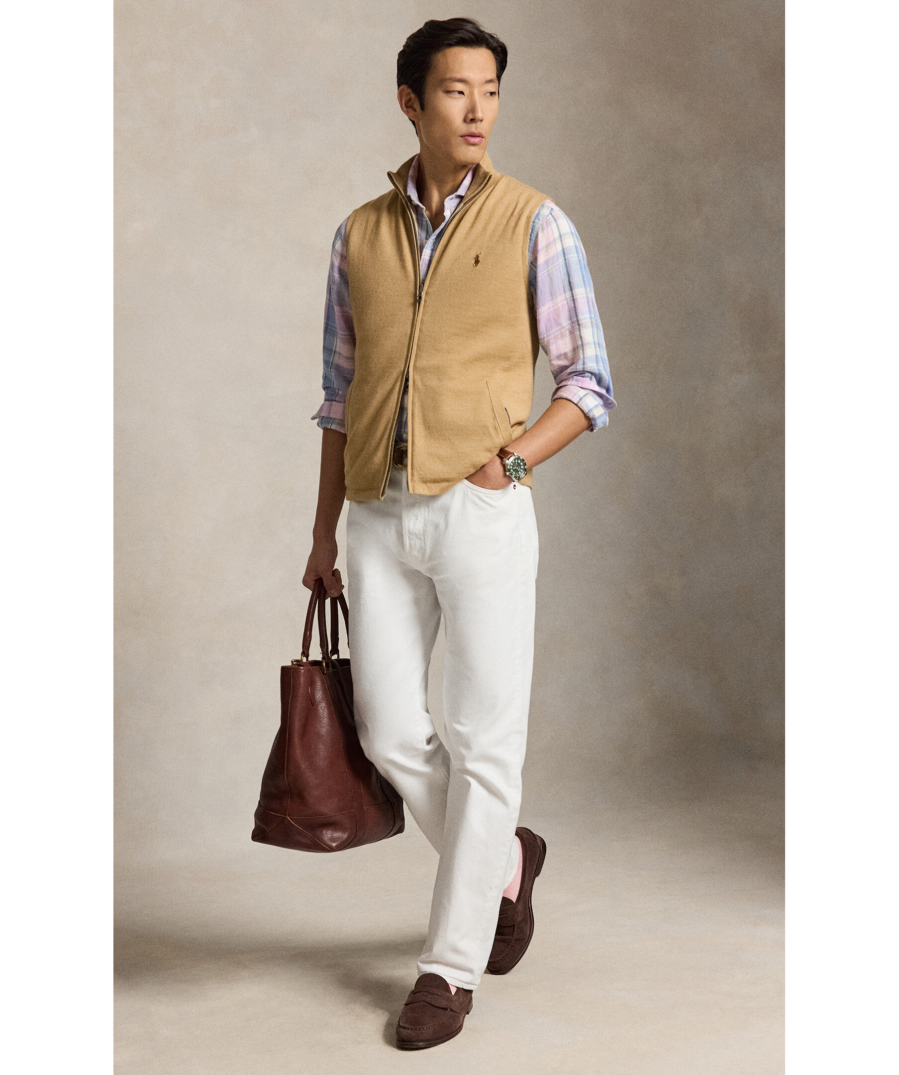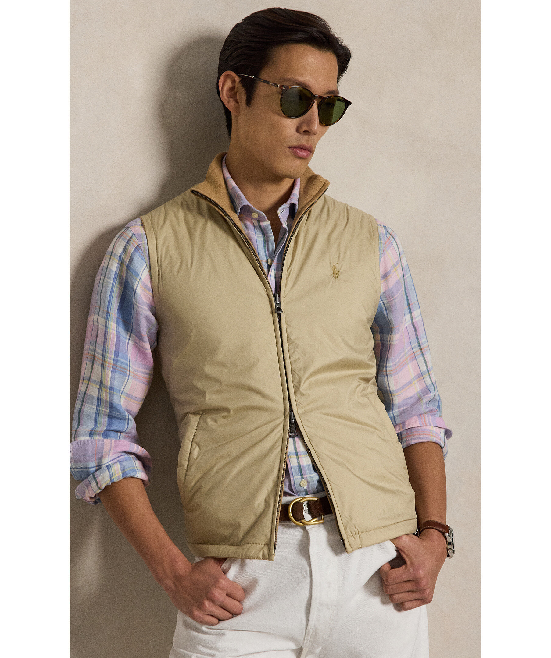 Reversibel väst från Ralph Lauren. Plagget har en normal passform och erbjuder två olika looks i ett tack vare sin innovativa reversible‑design, på ena sidan en klassisk stickad yta och på den andra en slät, vävd finish som ger en modern och funktionell stil. Den är stickad med COOLMAX®‑fibrer som hjälper till att hålla dig sval, torr och bekväm under dagen, och varje sida har en ton‑i‑ton version av den ikoniska logotypen för subtil brand‑identitet.