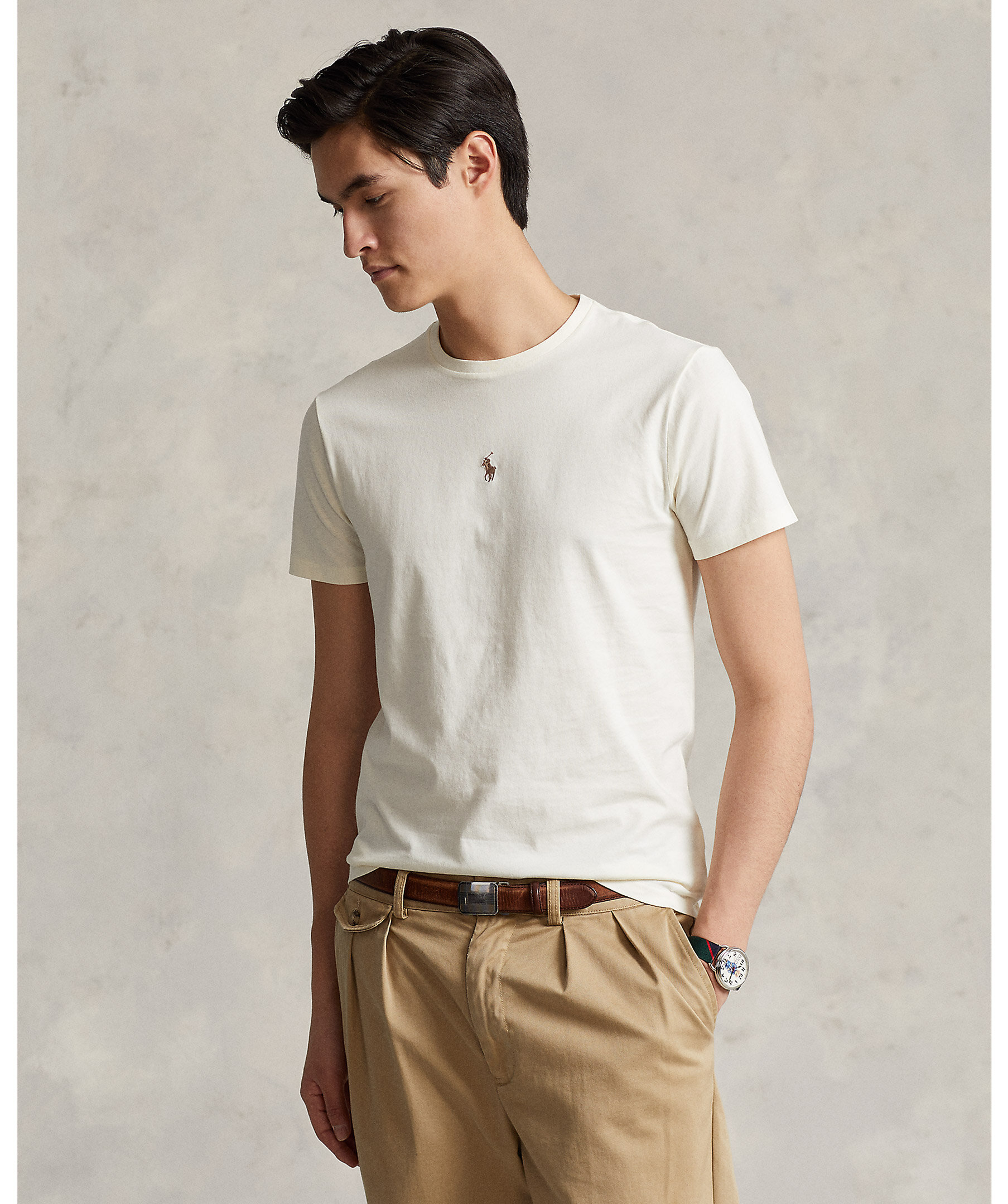 Off-white t-shirt från Polo Ralph Lauren. Rundad halsringning broderad logga mitt på bröstet. Tillverkad i 100% bomull.