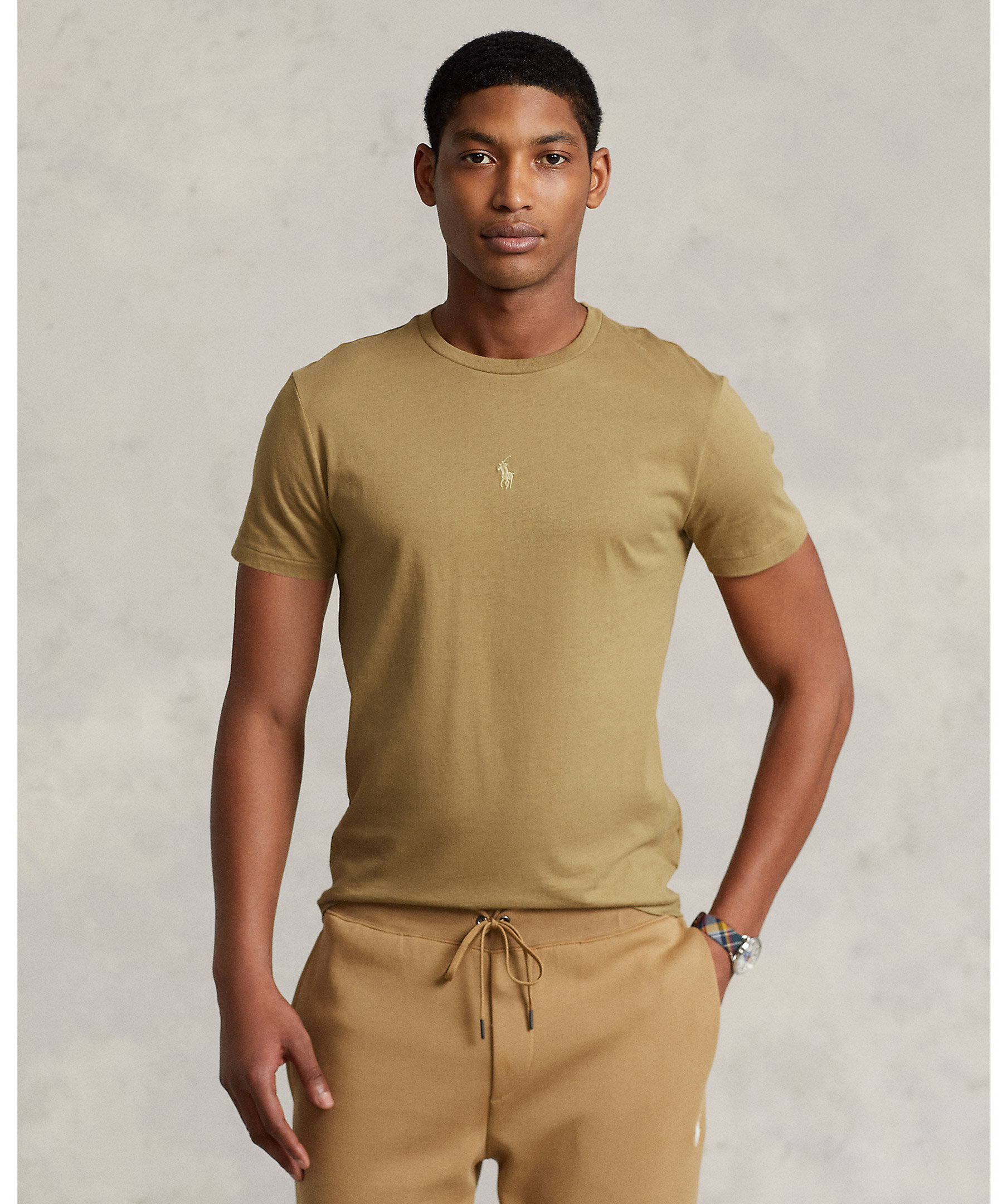 Grön beige kortärmad t-shirt från Polo Ralph Lauren. Custom slim fit, passform, crewneck, broderad logga mitt på bröstet. Tillverkad i 100% bomull.