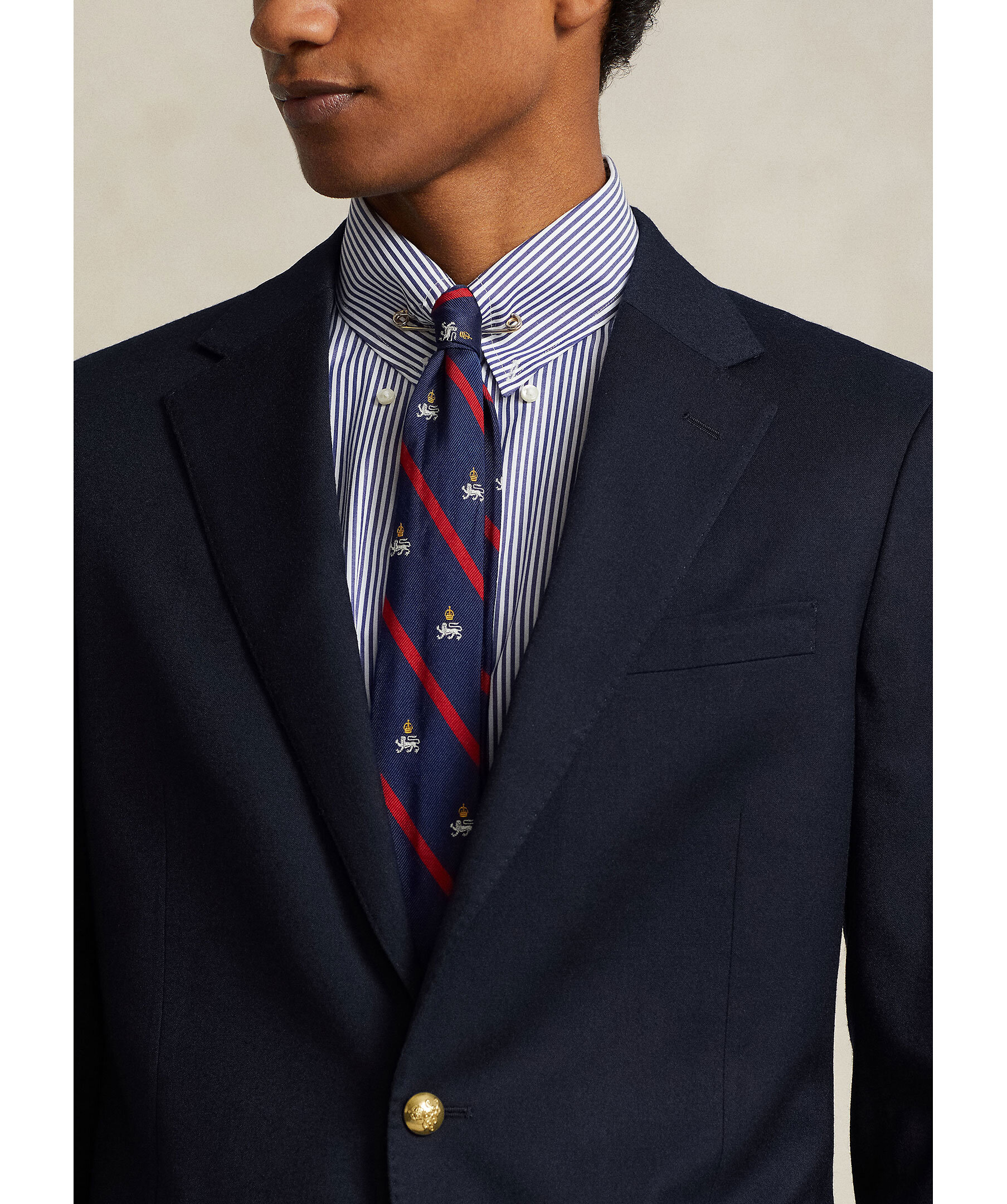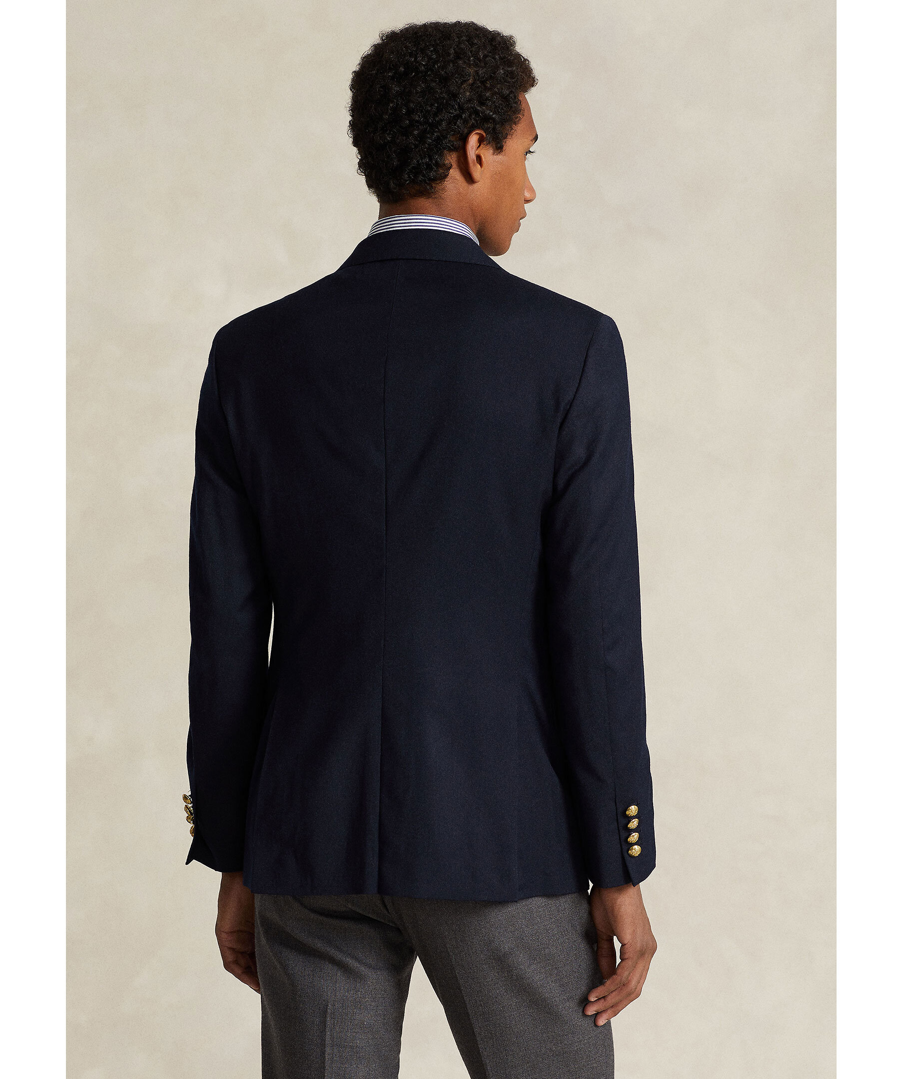 Marinblå kavaj från Polo Ralph Lauren. Kavajen stängs med två guldfärgade metallknappar framtill och har naggade slag, två fickor med lock samt en passpoal bröstficka. Muddar med fyra dekorativa knappar och två invändiga bröstfickor. Helfodrad. Tillverkad i en ullblandning.