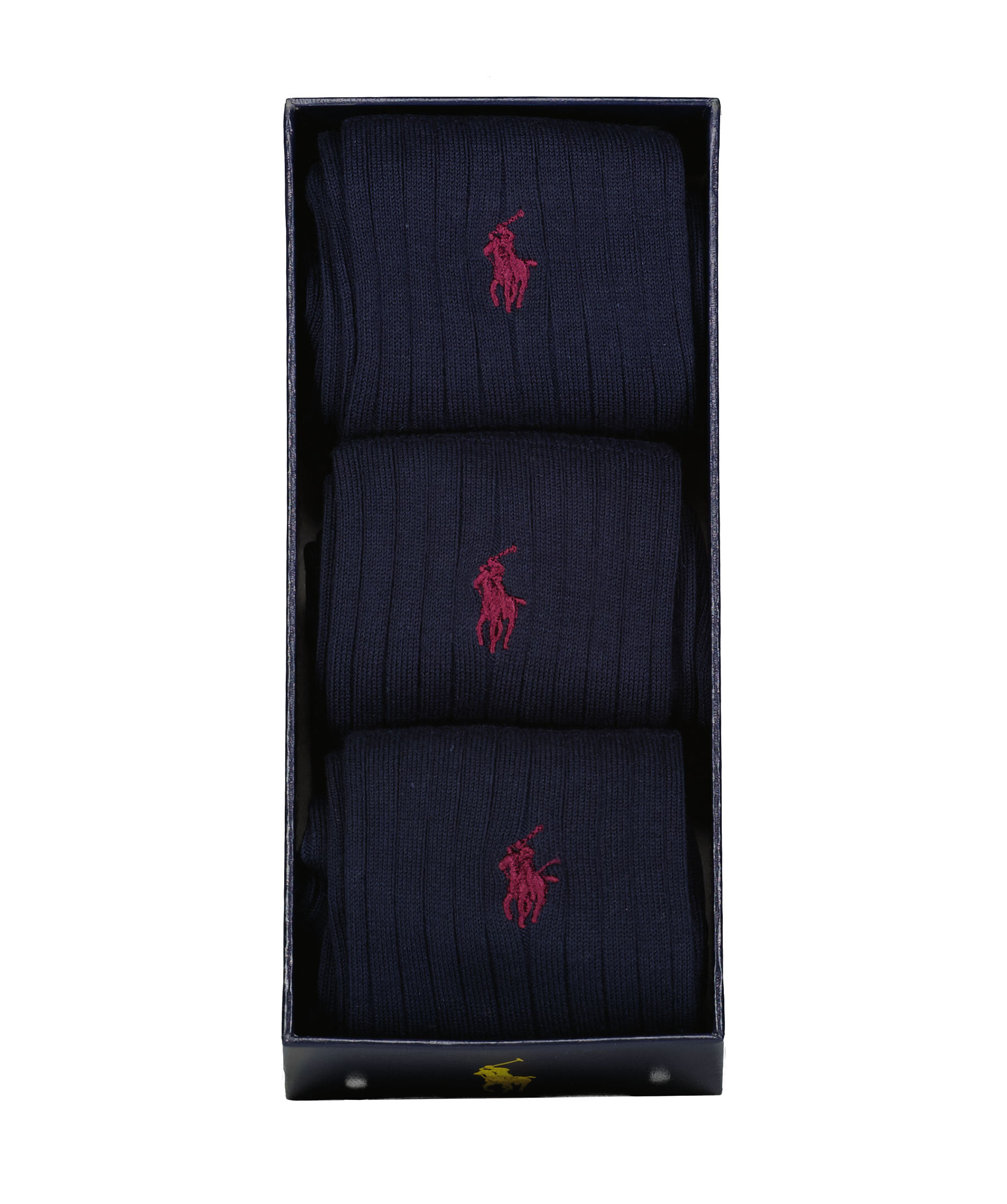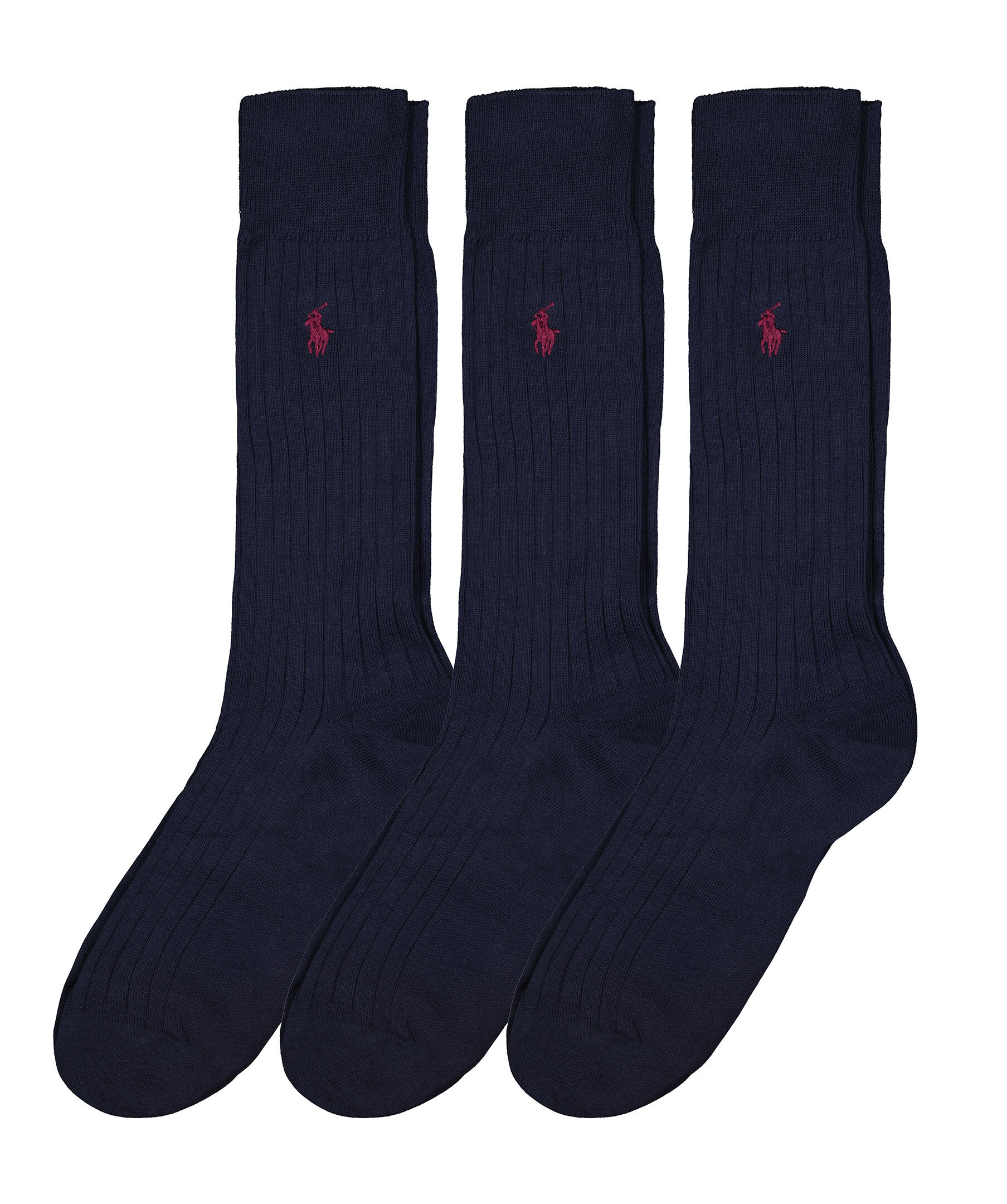 3-pack marinblåa strumpor från Polo Ralph Lauren. Ribbad stickning, broderad logotyp på skaftet. Tillverkad i en bomullsblandning.