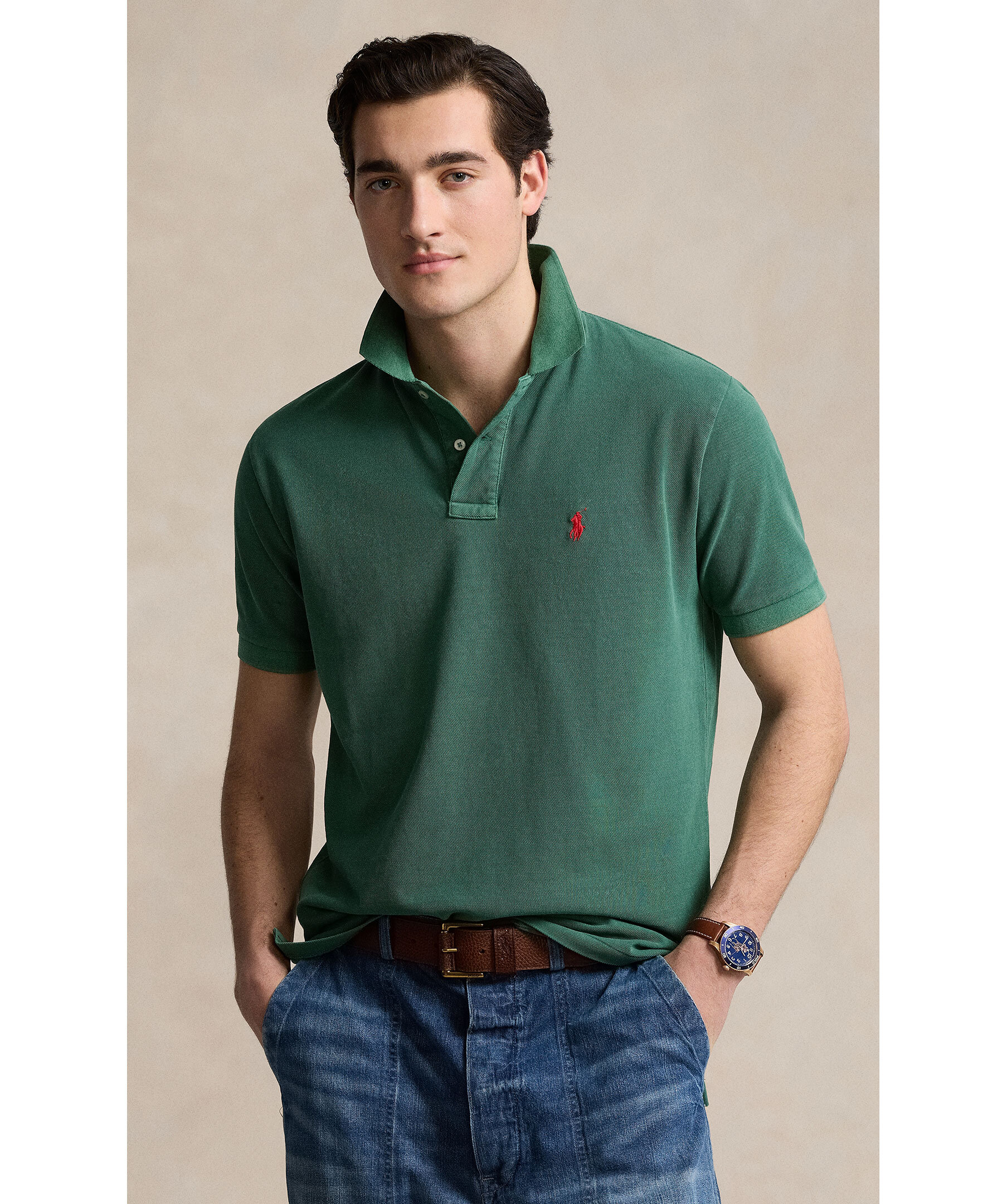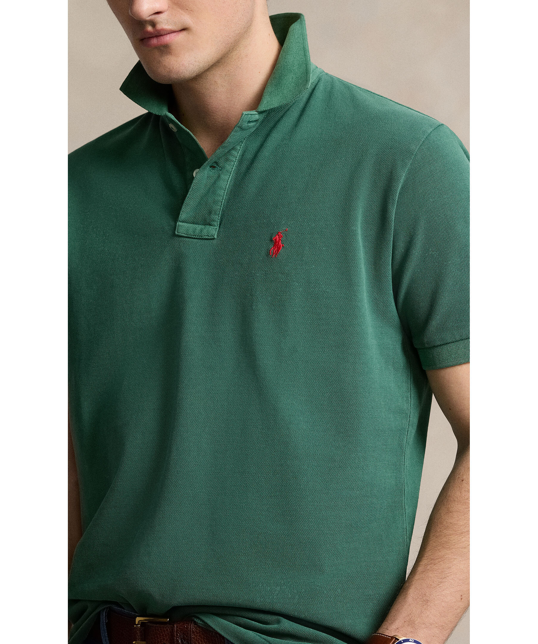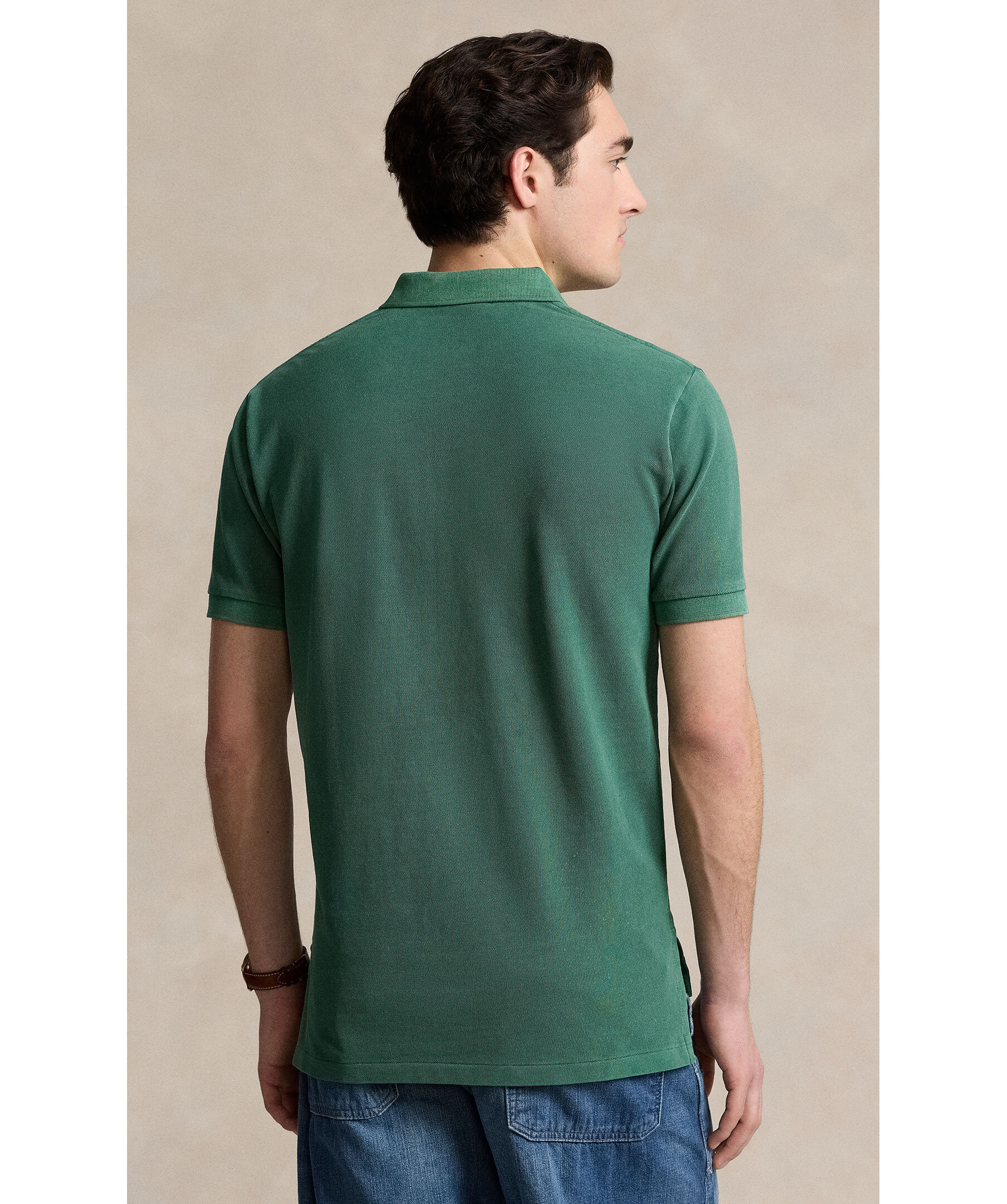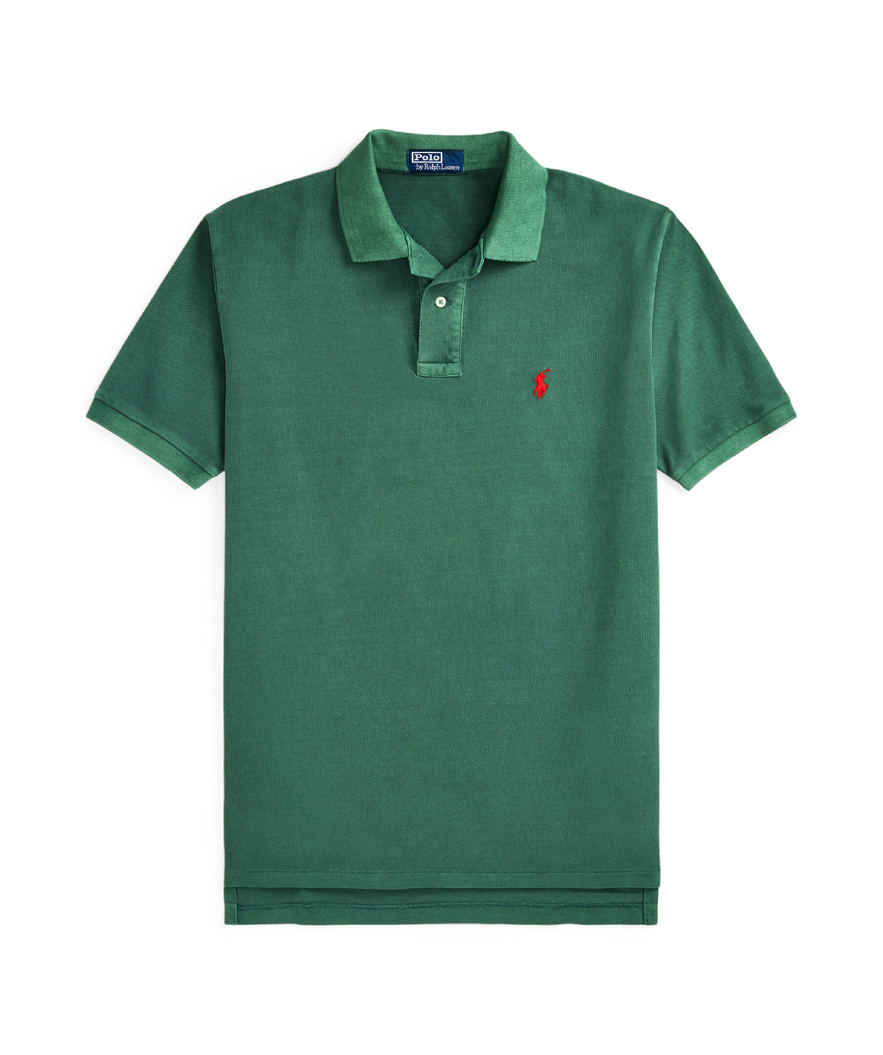 Grön piké från Polo Ralph Lauren. Ribbstickad krage, knäppslå framtill med två knappar. Broderad logotyp i rött på vänster bröst. Tillverkad i 100% Bomull. Korta slitsar i sidorna.