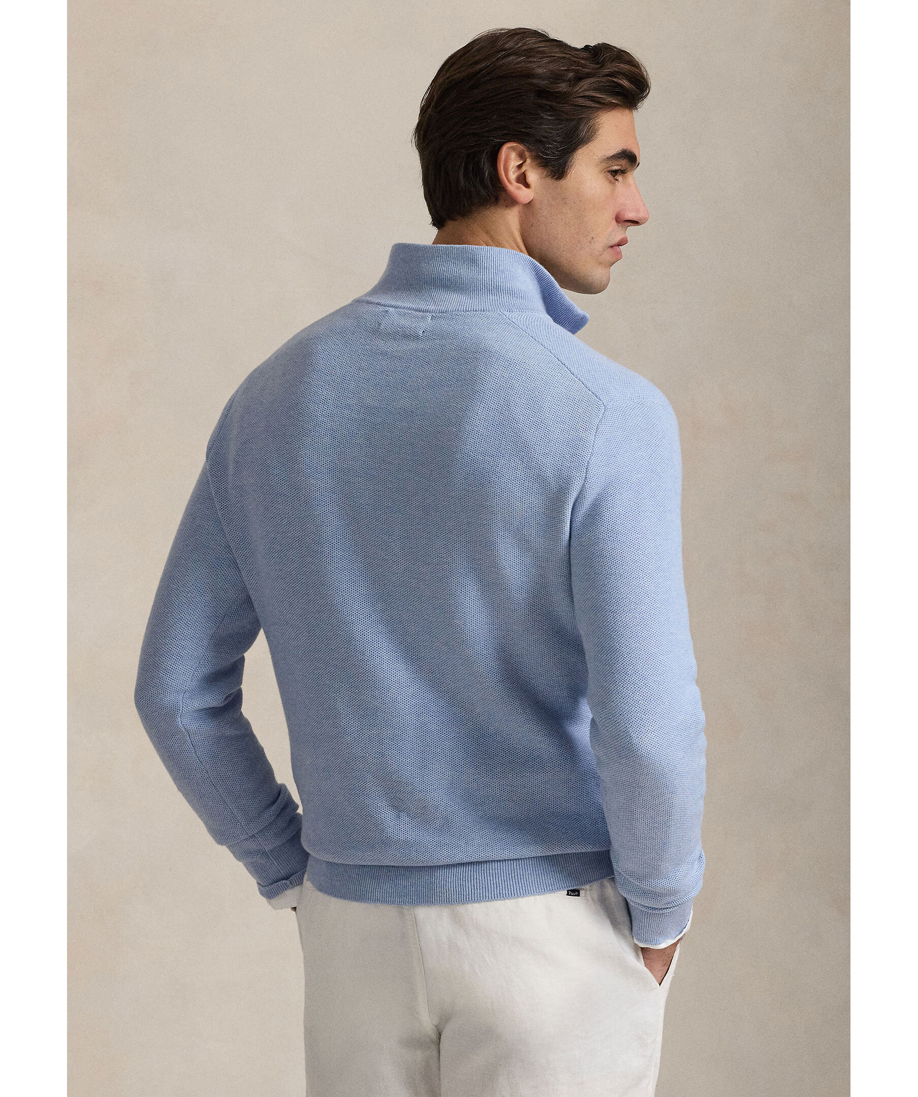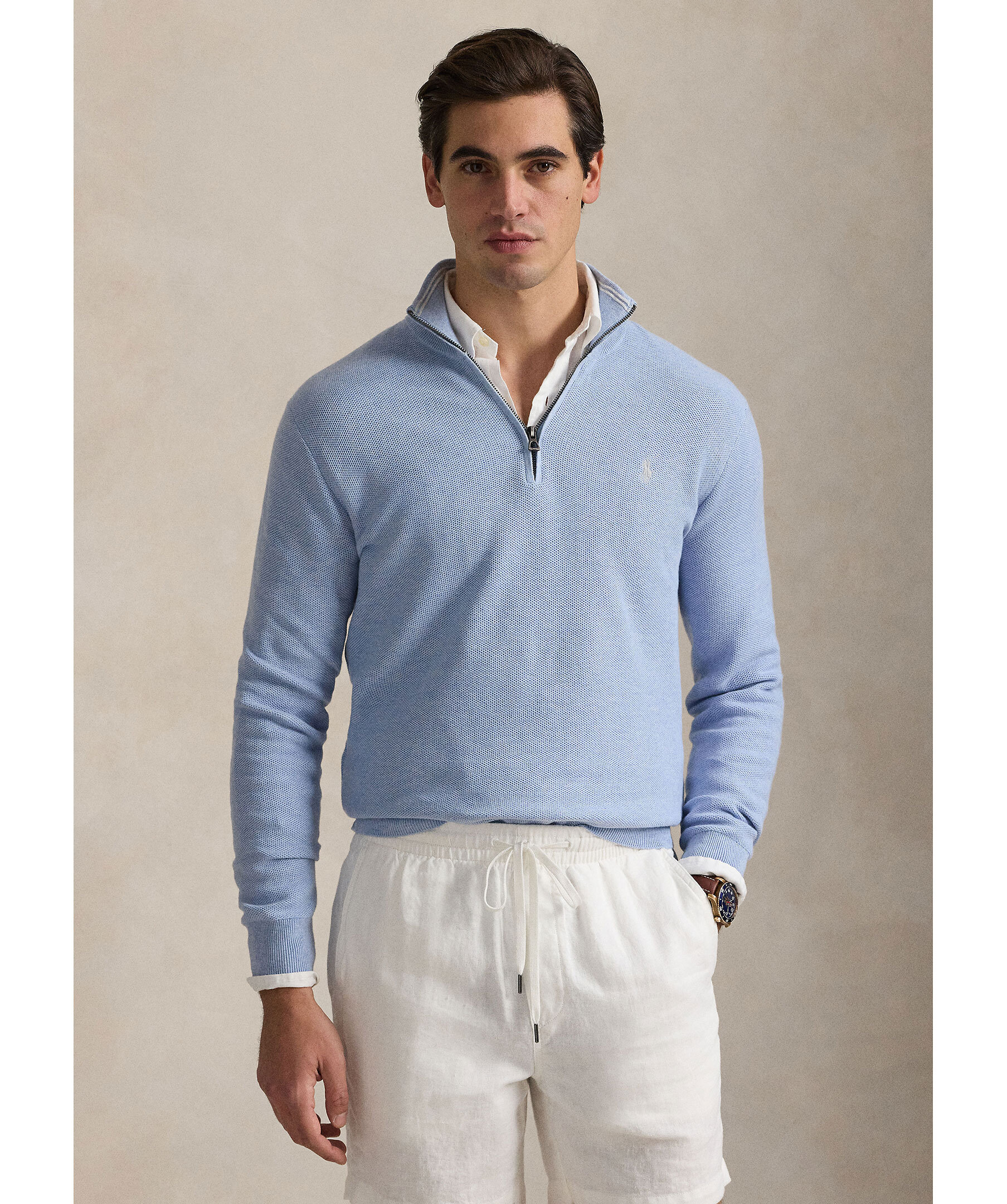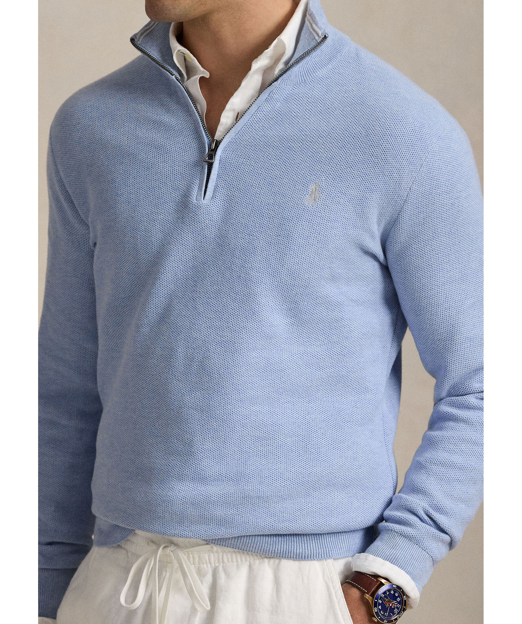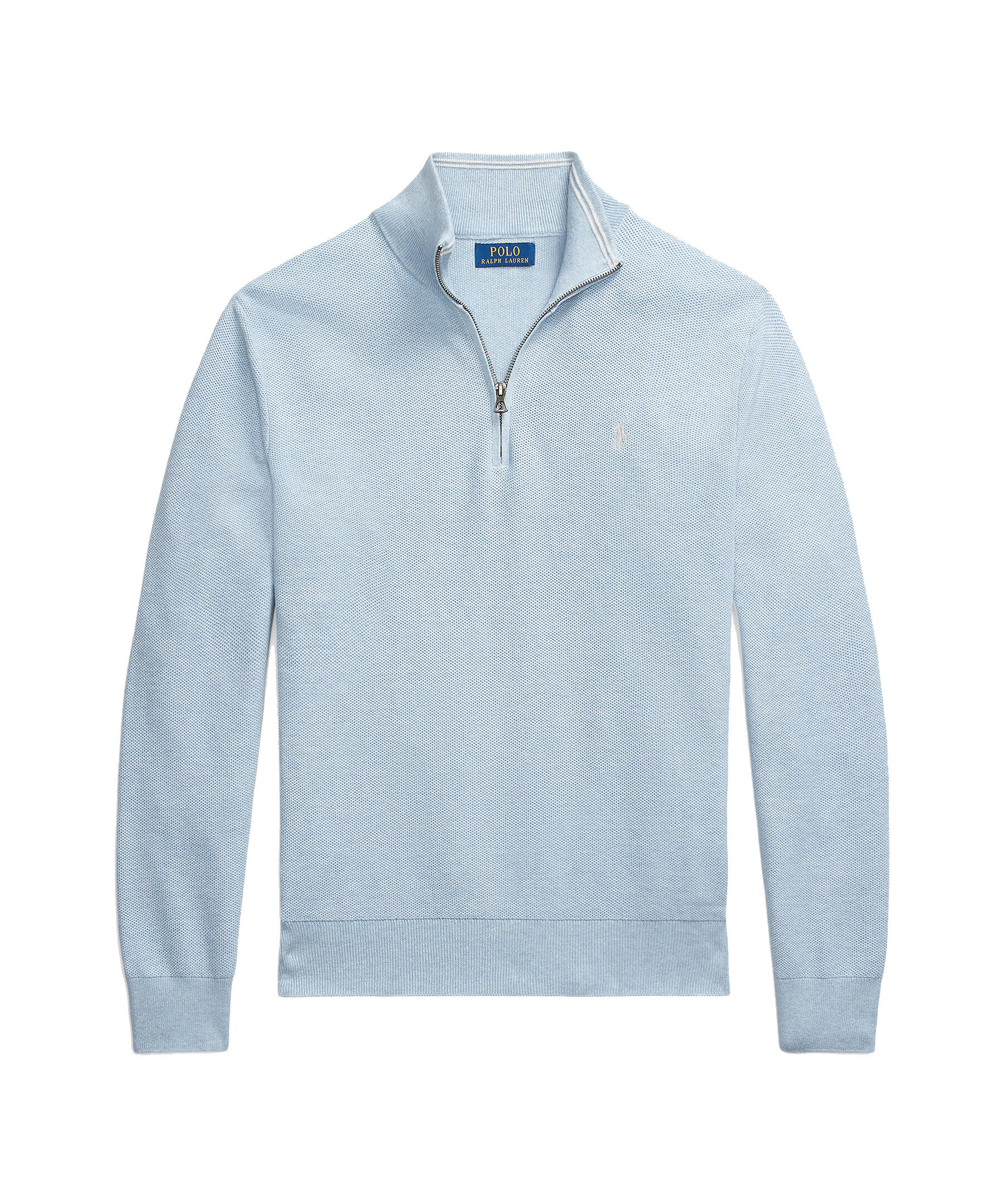 Ljusblå half-zip från Polo Ralph Lauren. Broderad logotyp på vänster bröst. Ribbstickad mudd vid ärm- och plaggslut. Tillverkad i 100% bomull.