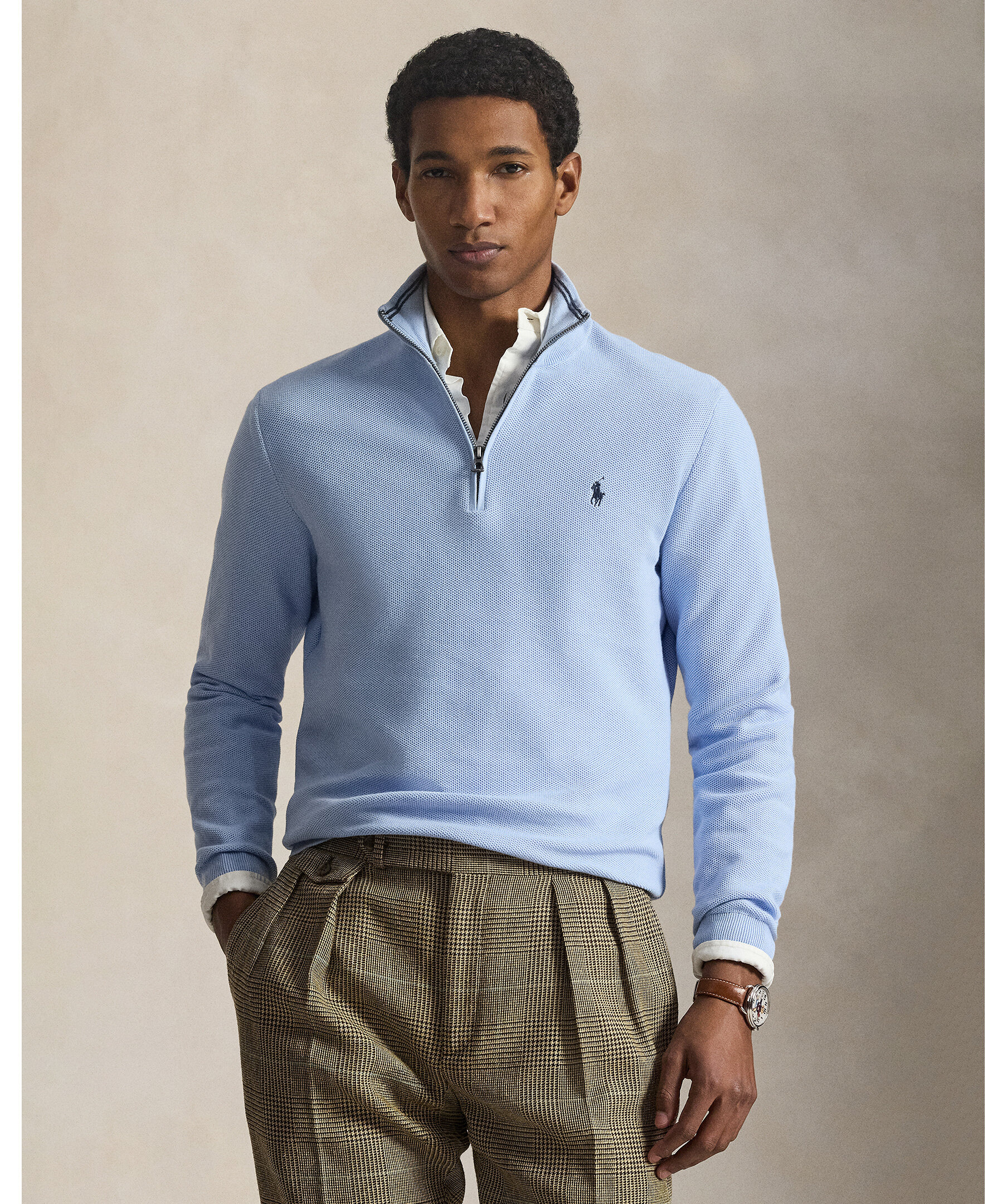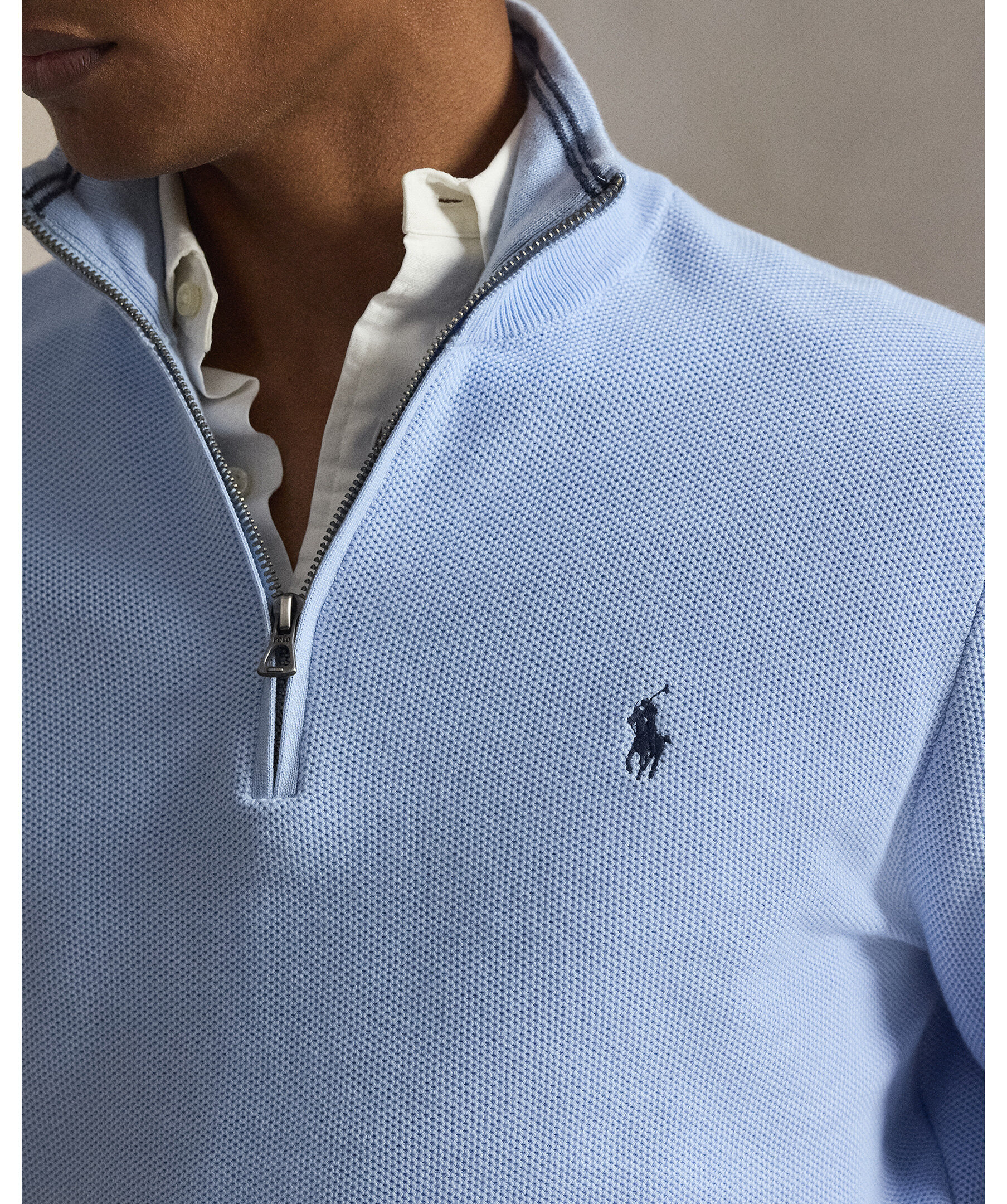 Ljusblå half-zip från Polo Ralph Lauren. Tillverkat med kammat bomullsgarn för att skapa denna lätta tröja.
