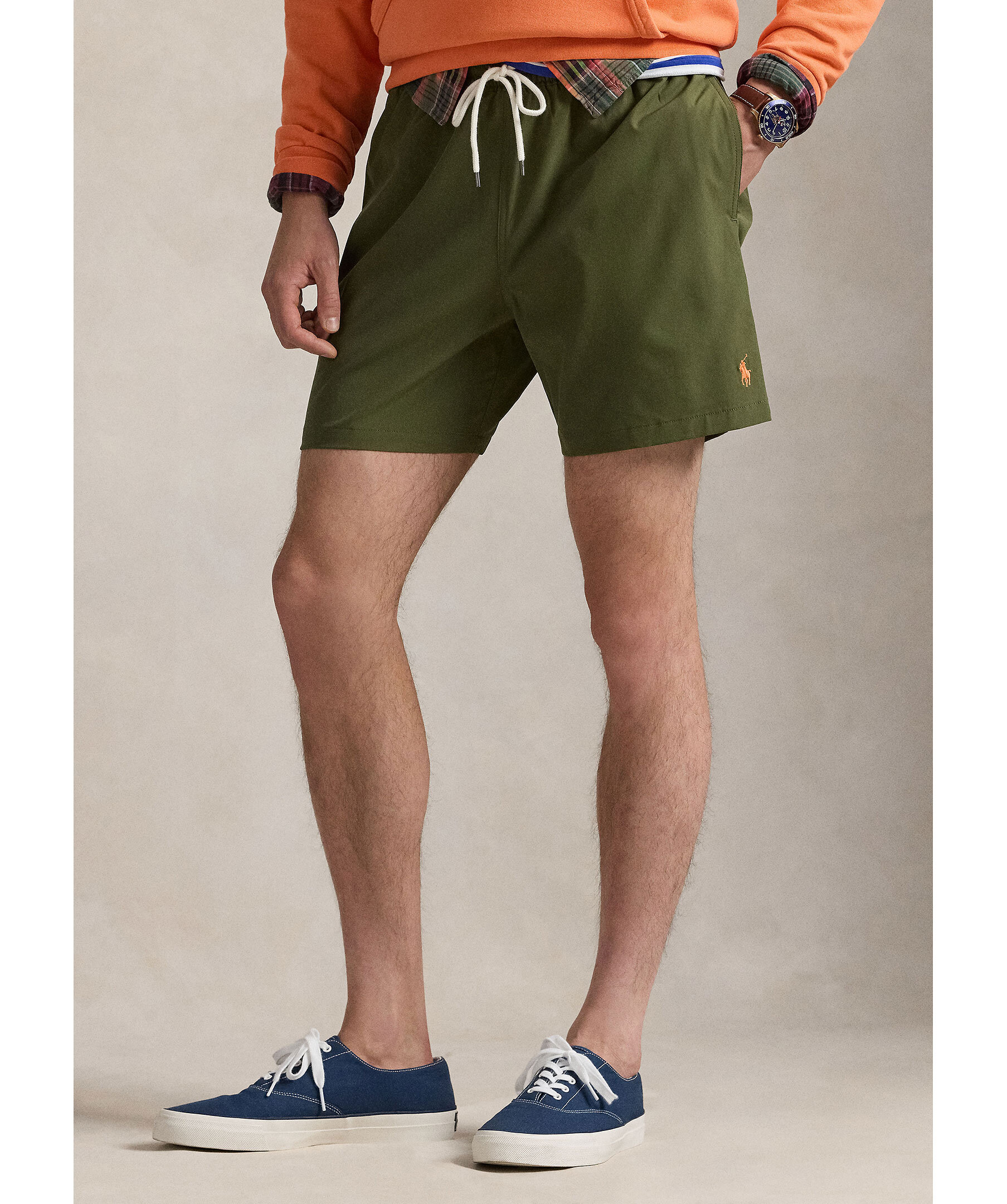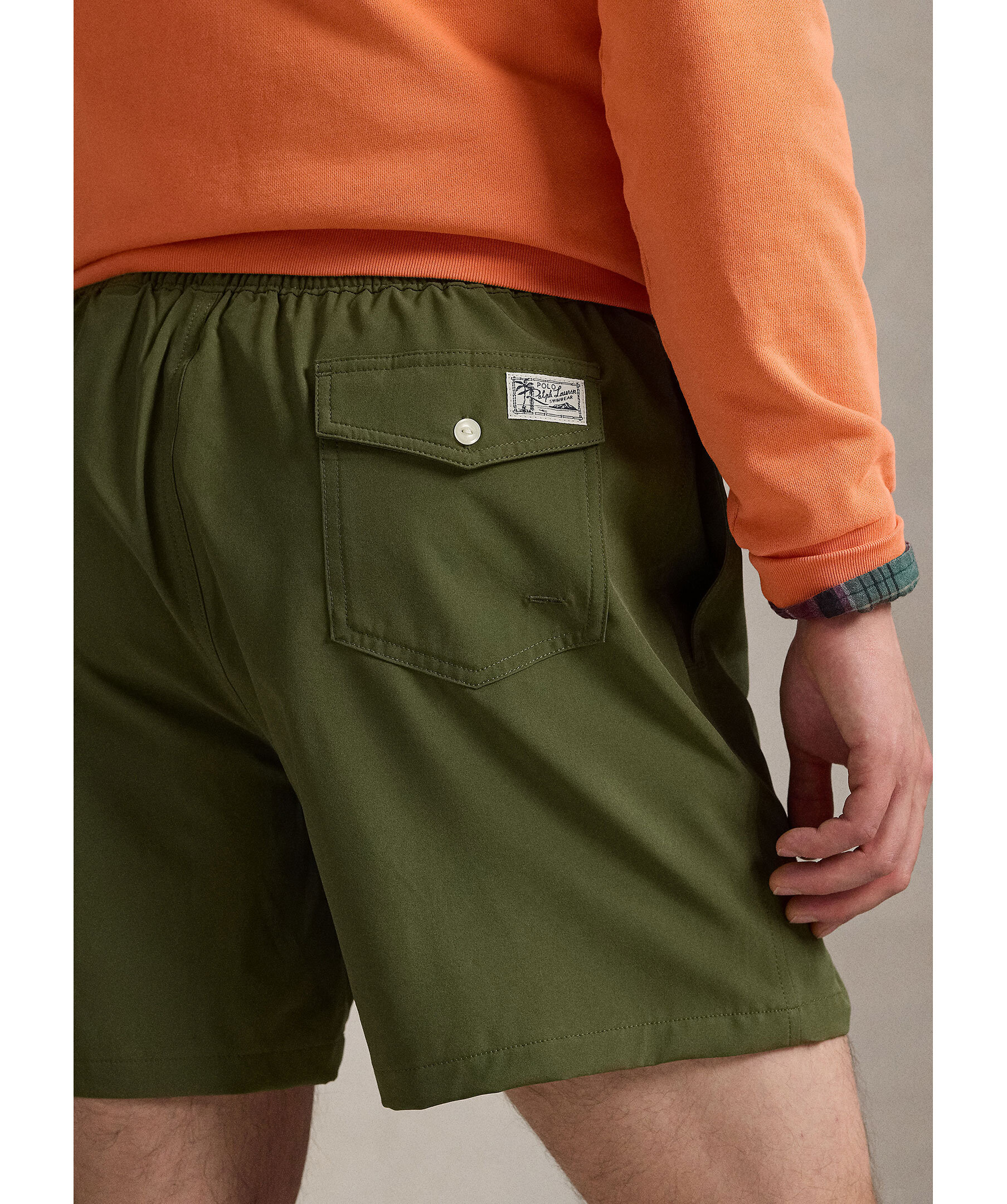 Olivgröna badbyxor från Polo Ralph Lauren. Badbyxorna har elastiskt midjeband med dragsko, sidofickor och en bakficka med knapp. Liten broderad logotyp framtill. Tillverkade av en polyesterblandning.